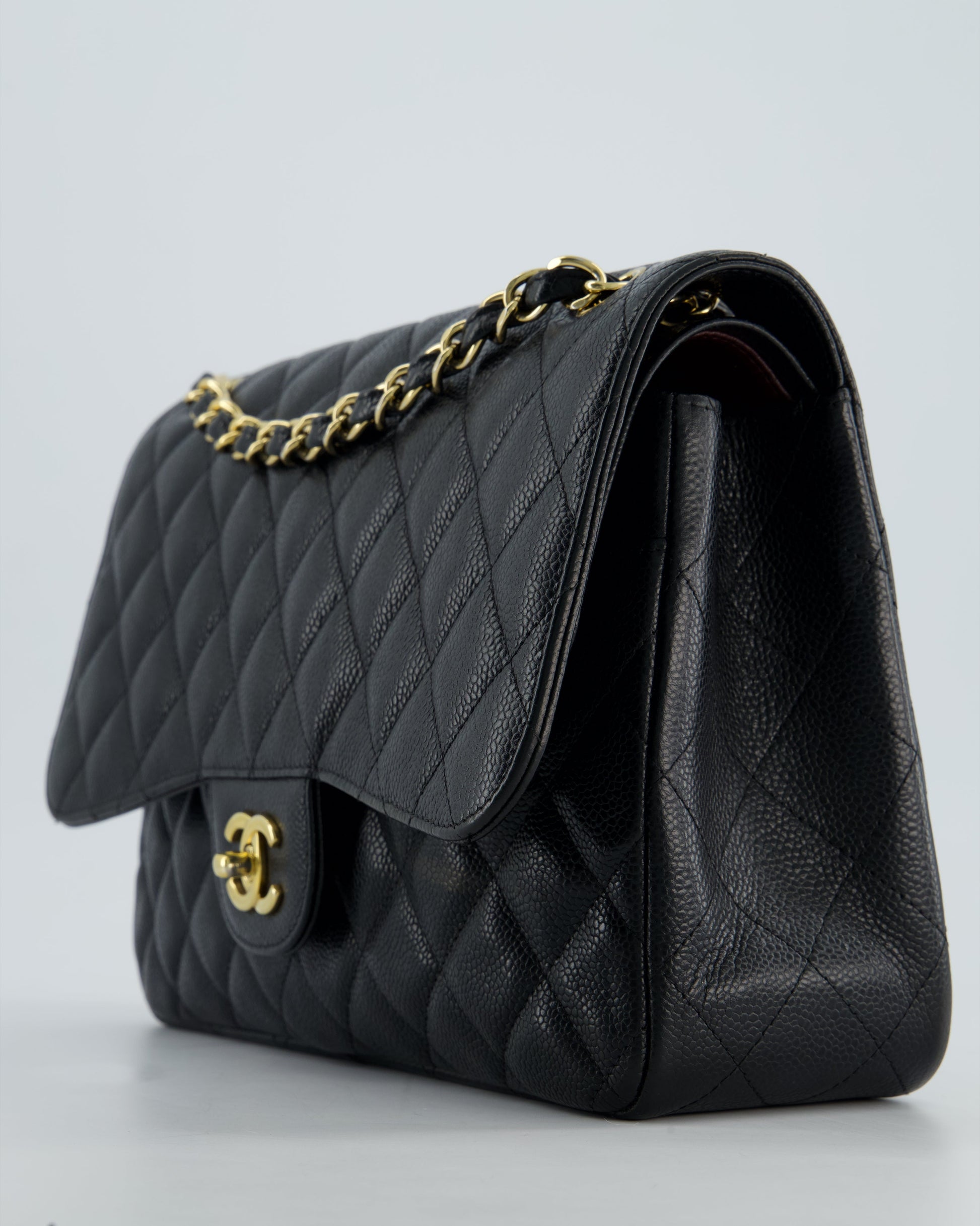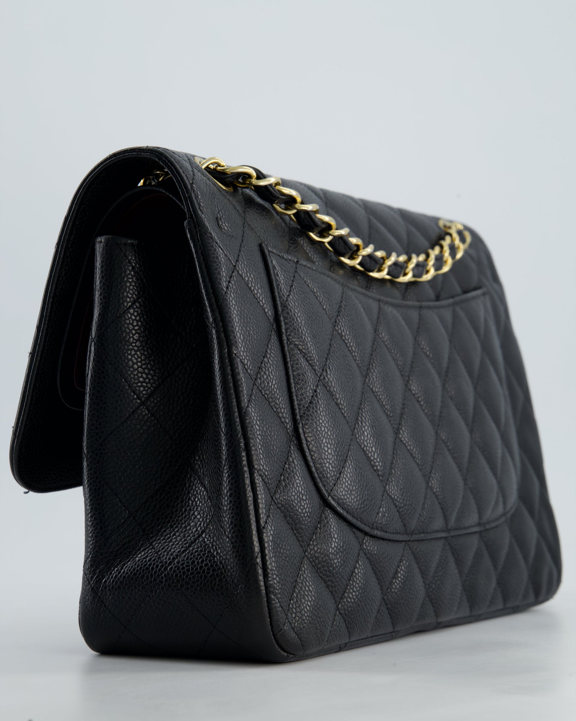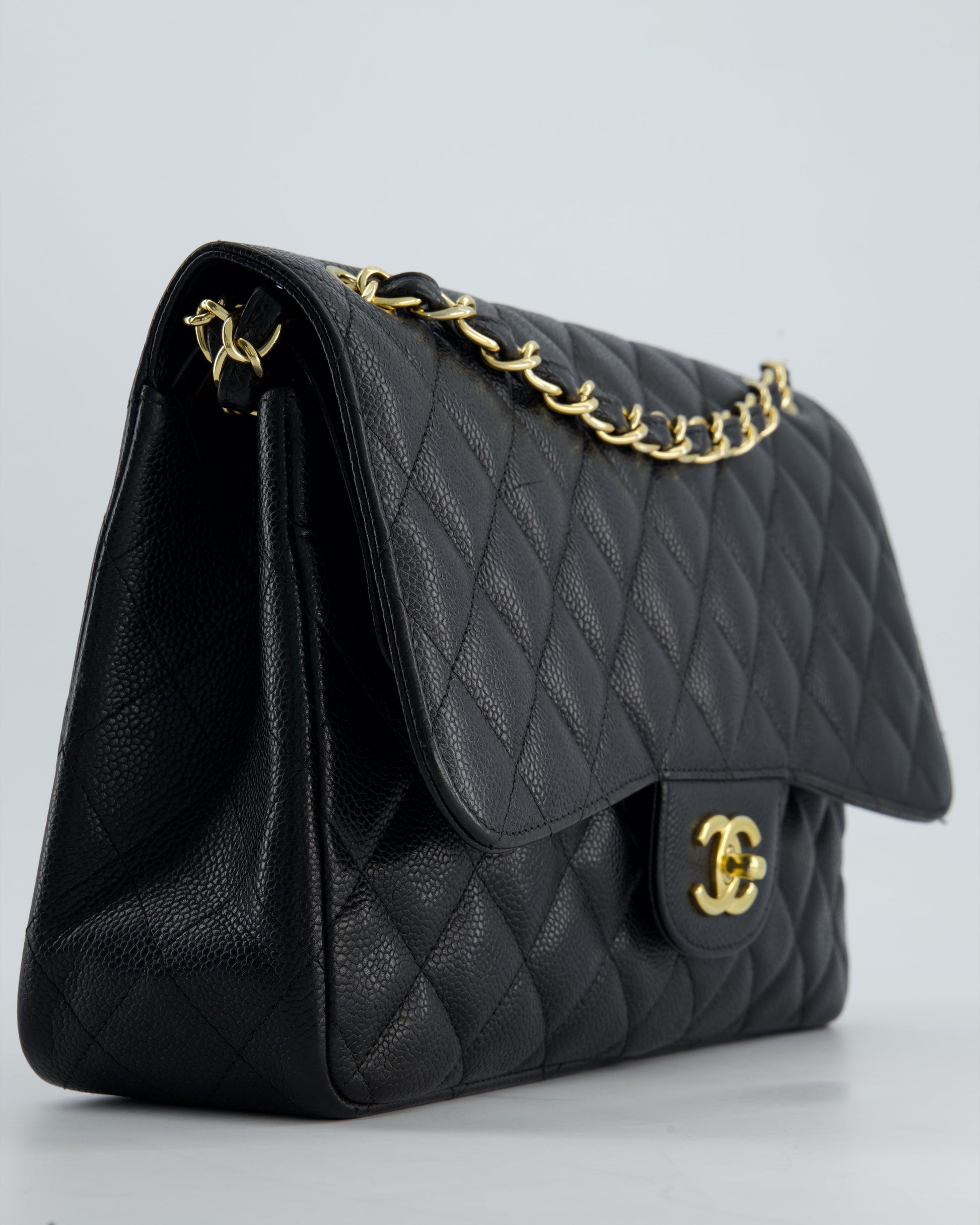 Chanel Black Jumbo Caviar Classic Double Flap Bag with Gold Hardware