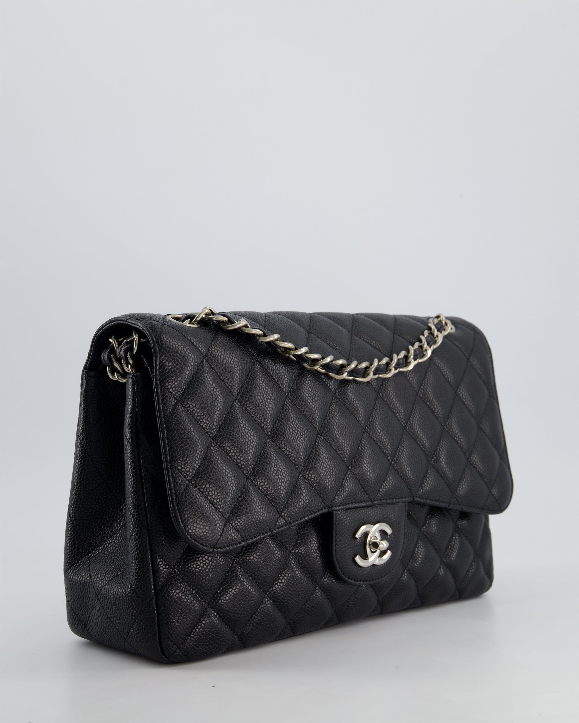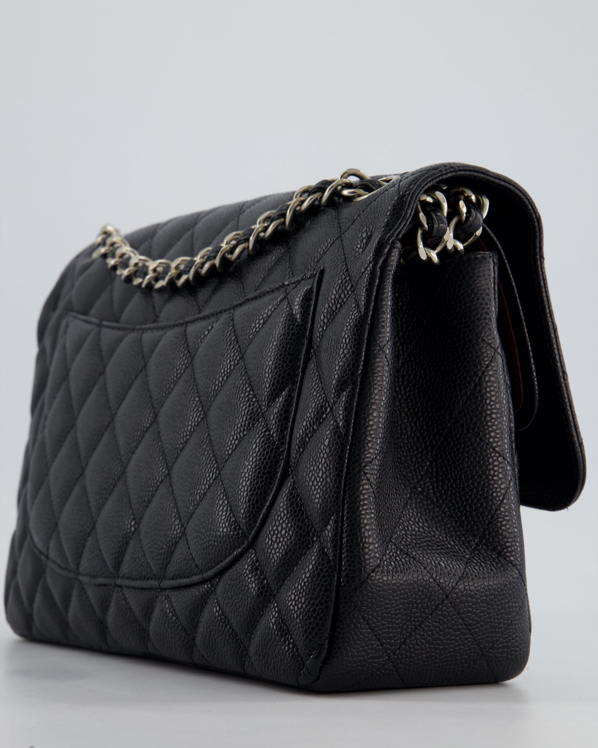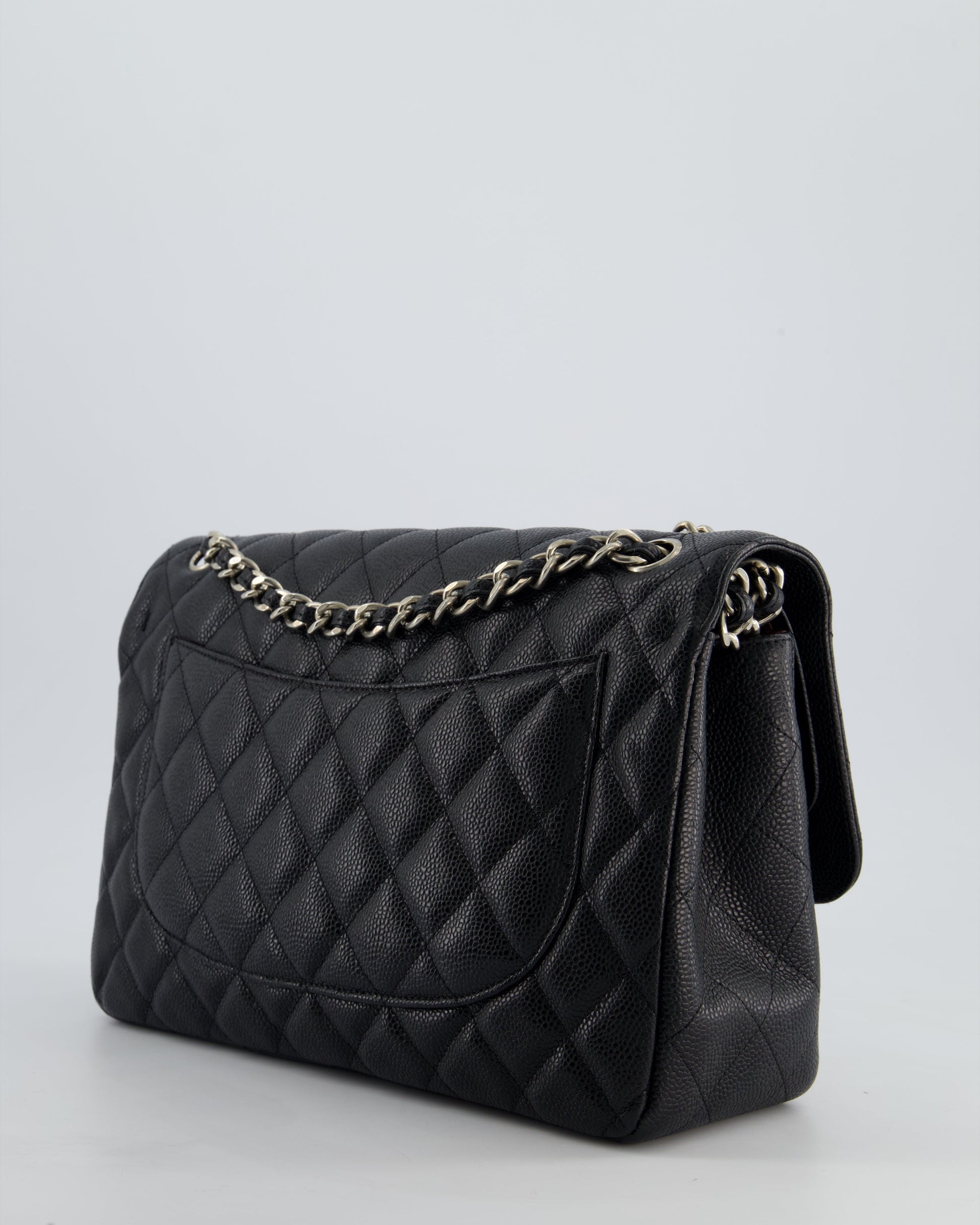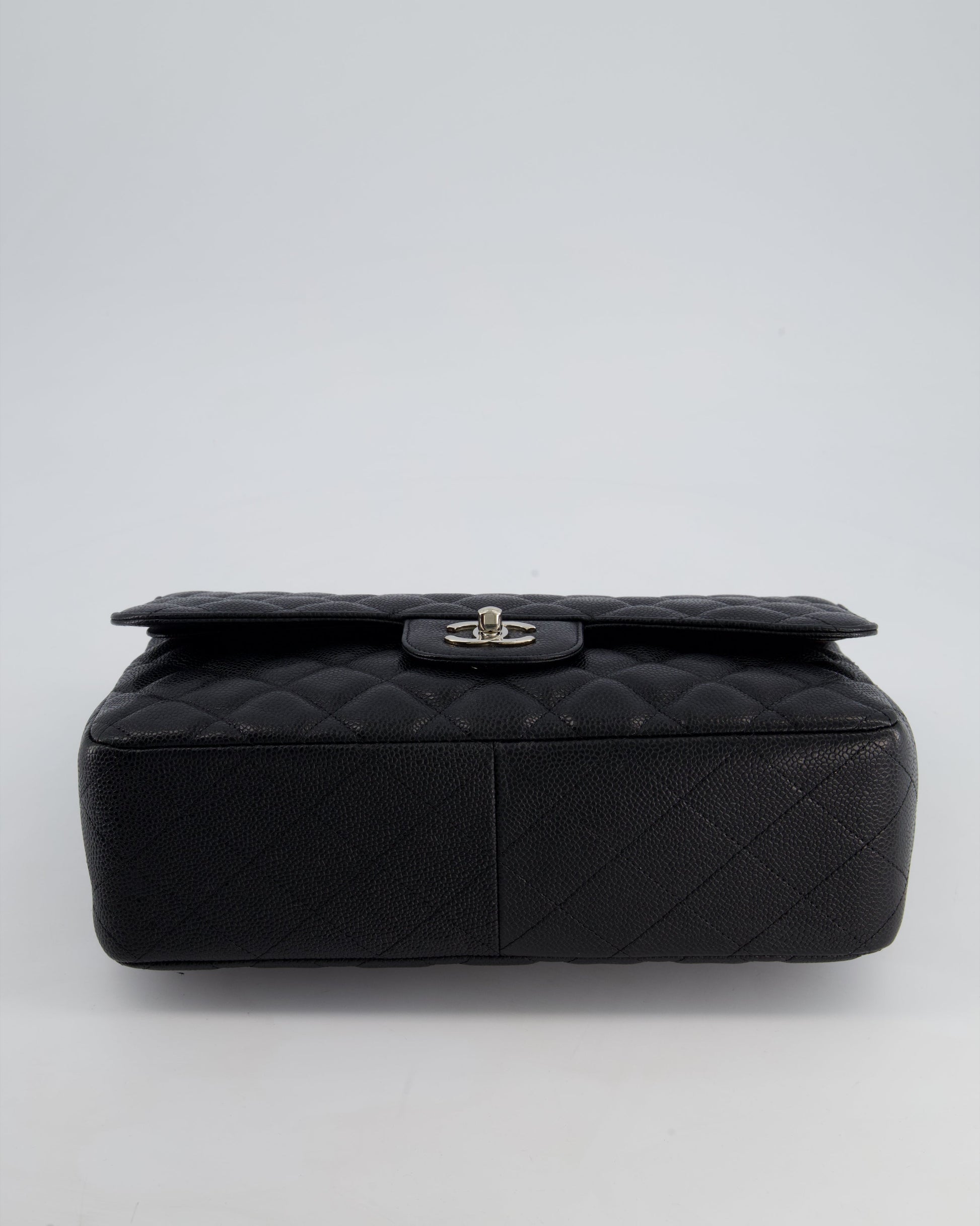 Chanel Black Jumbo Classic Double Flap Bag in Caviar Leather with Silver Hardware