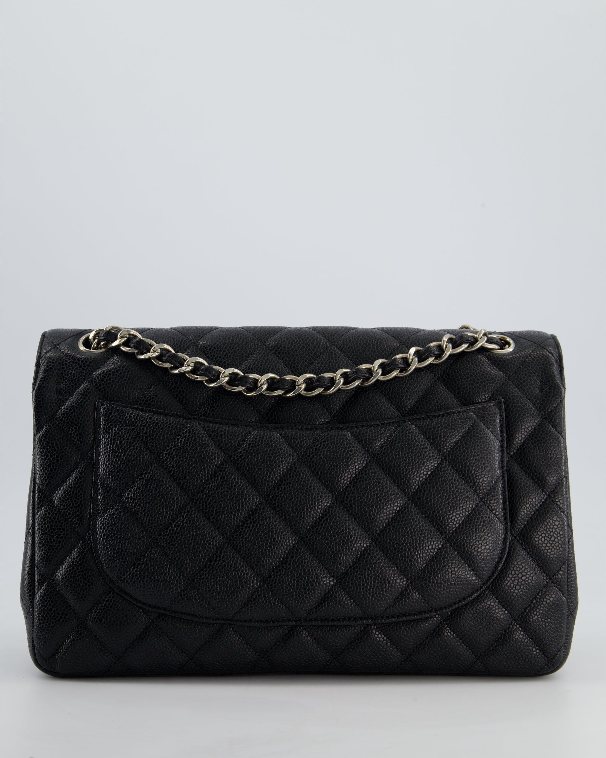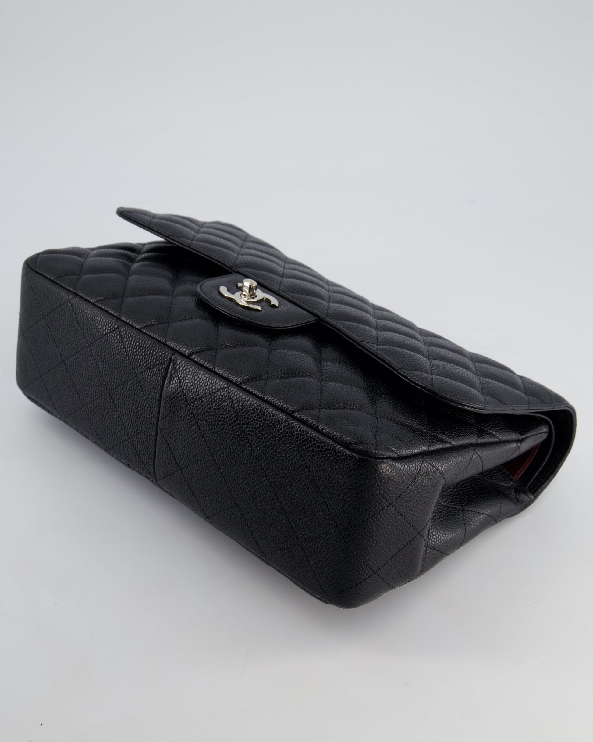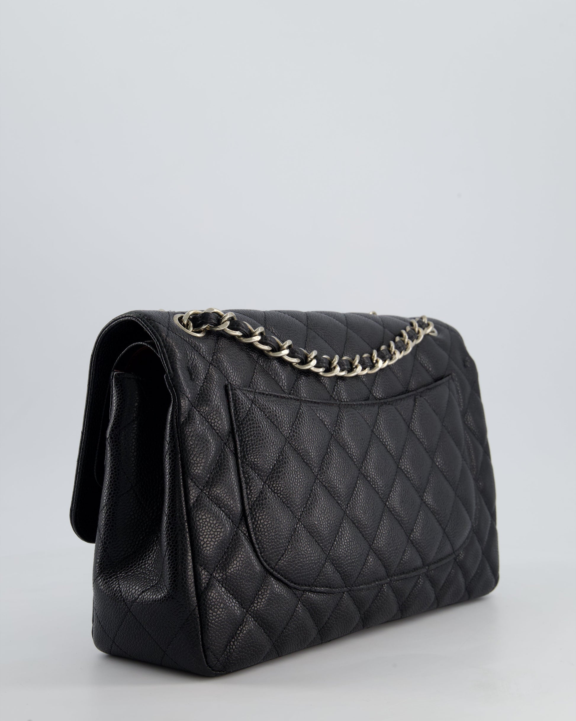 Chanel Black Jumbo Classic Double Flap Bag in Caviar Leather with Silver Hardware