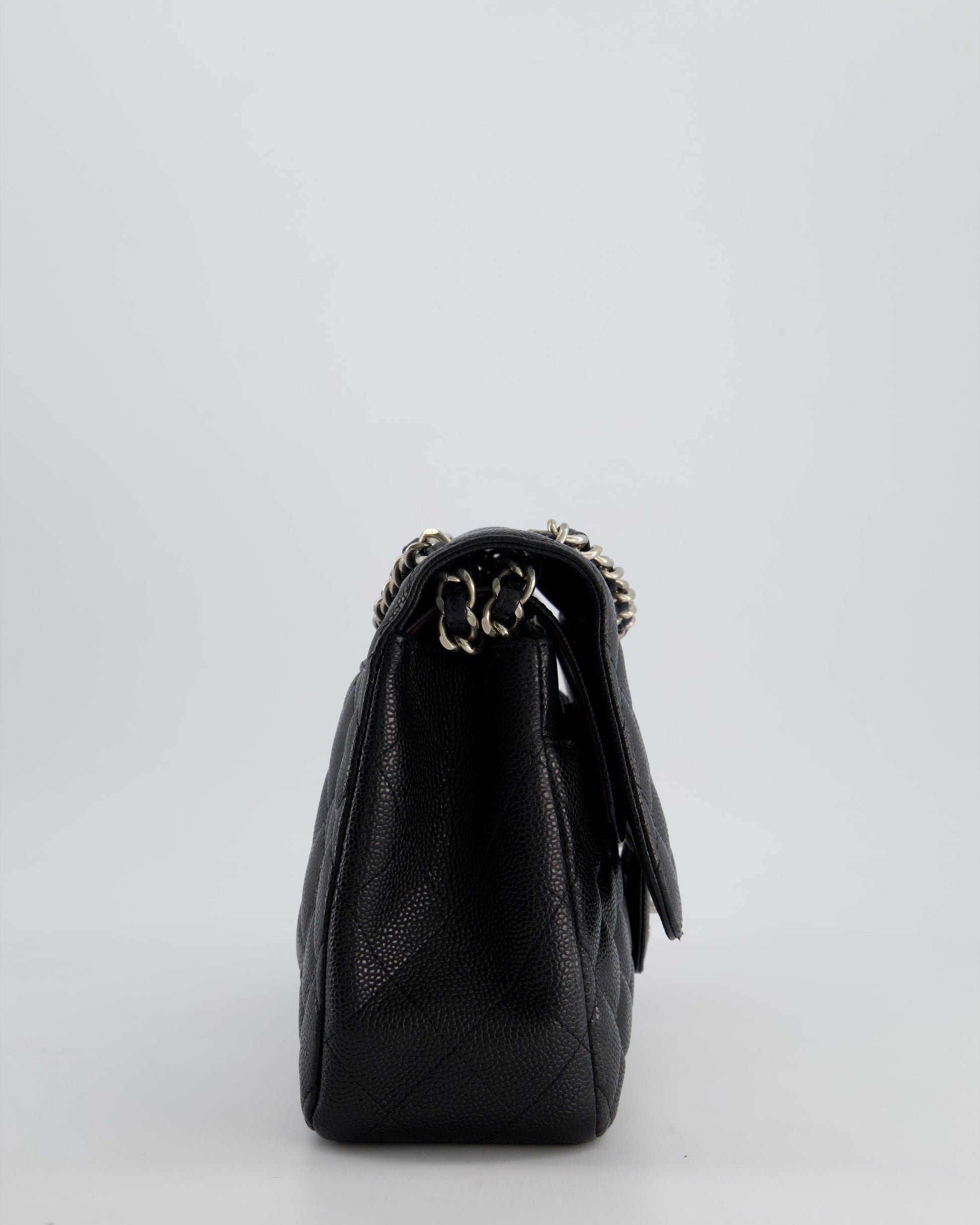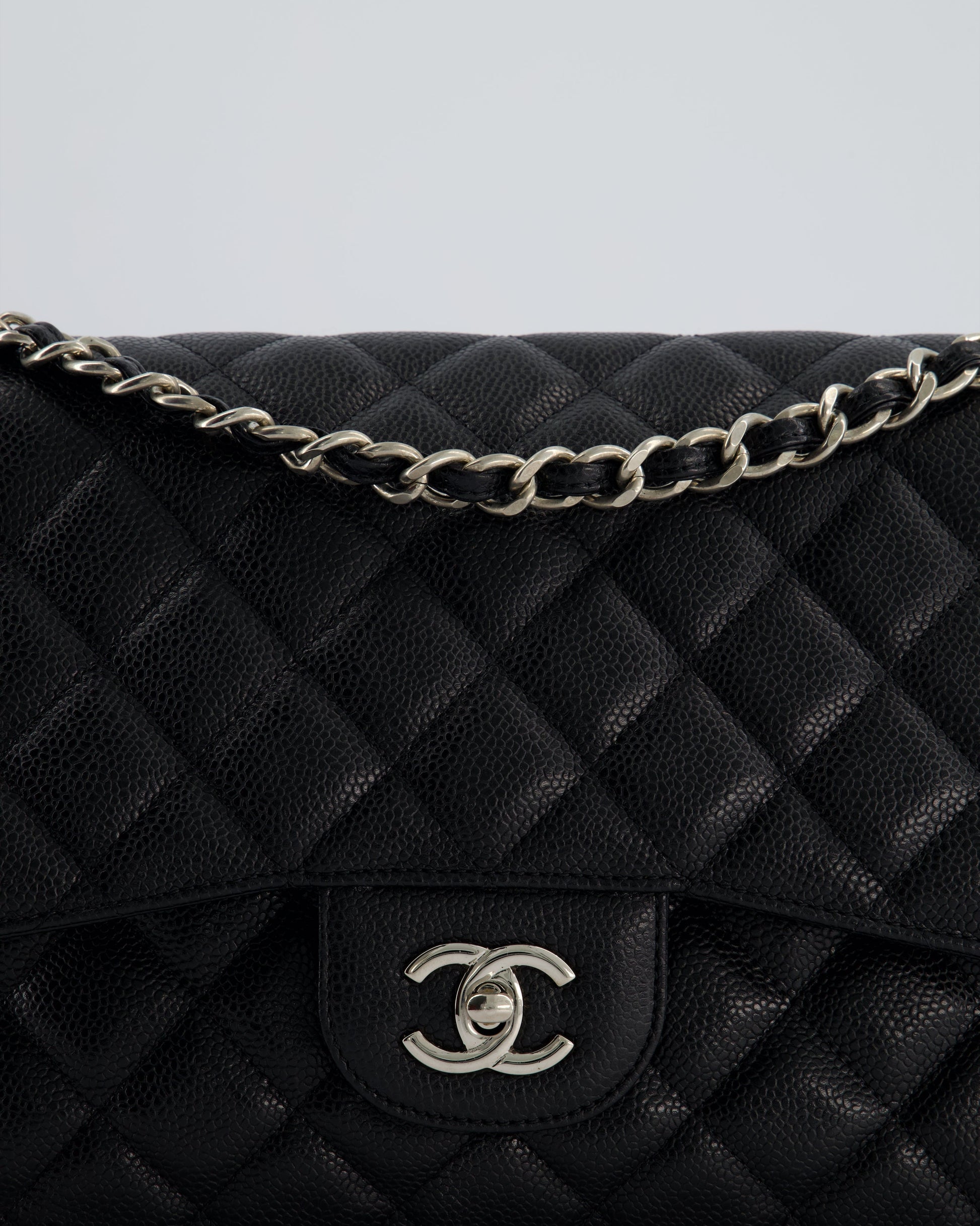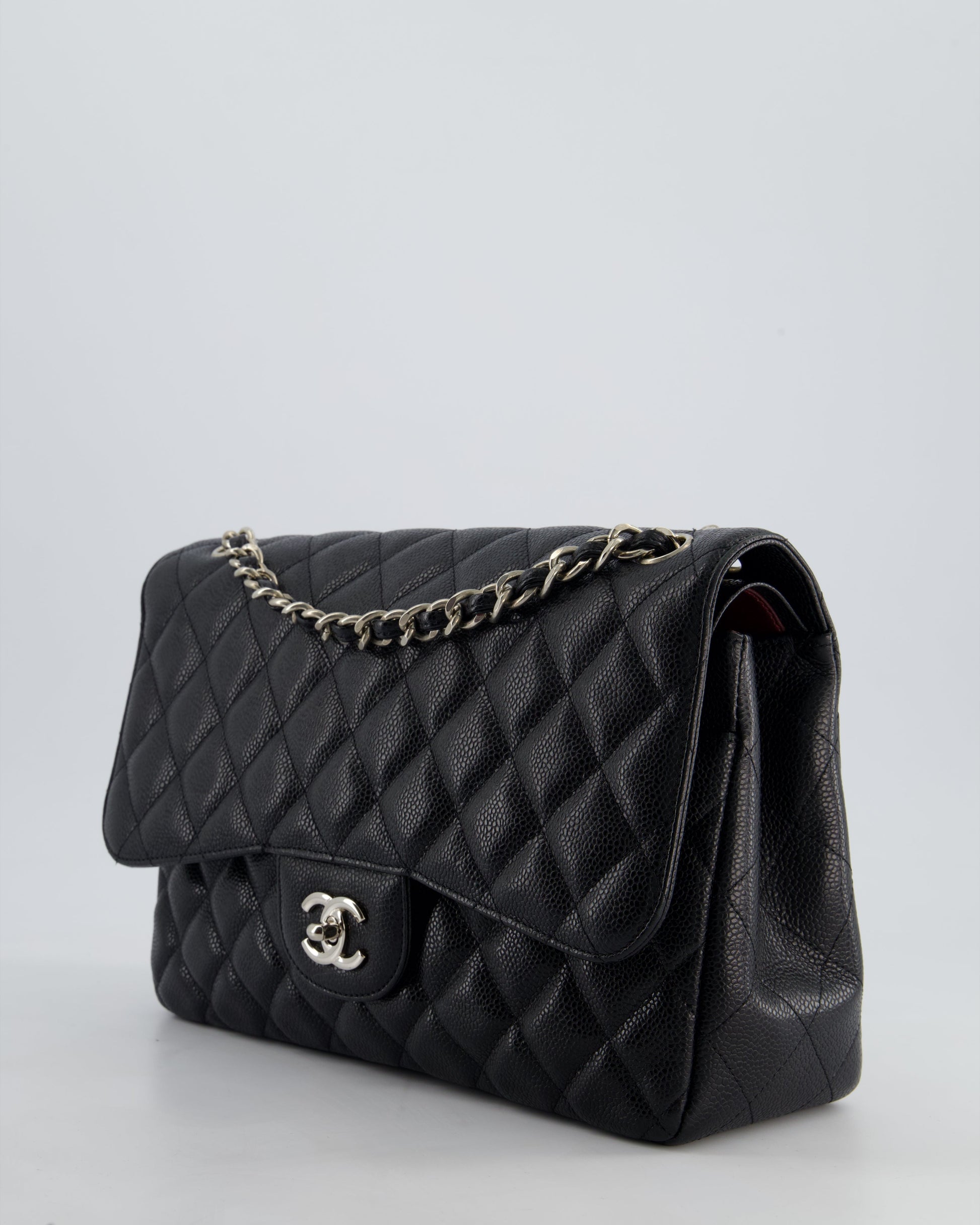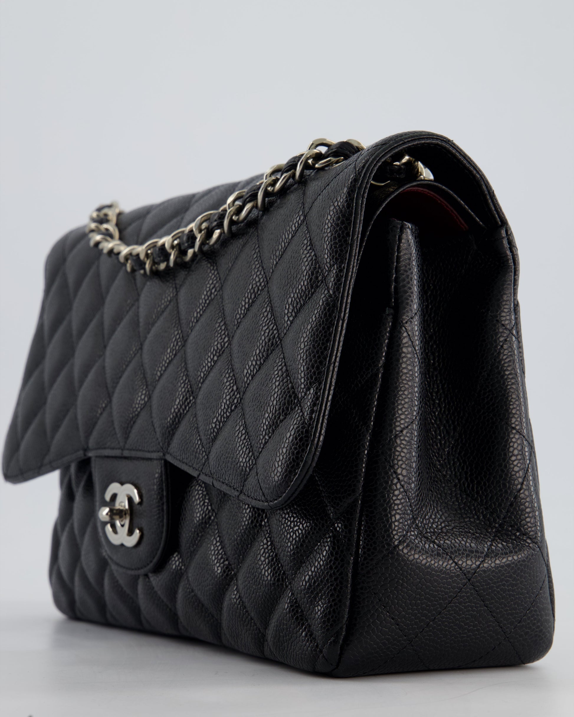 Chanel Black Jumbo Classic Double Flap Bag in Caviar Leather with Silver Hardware