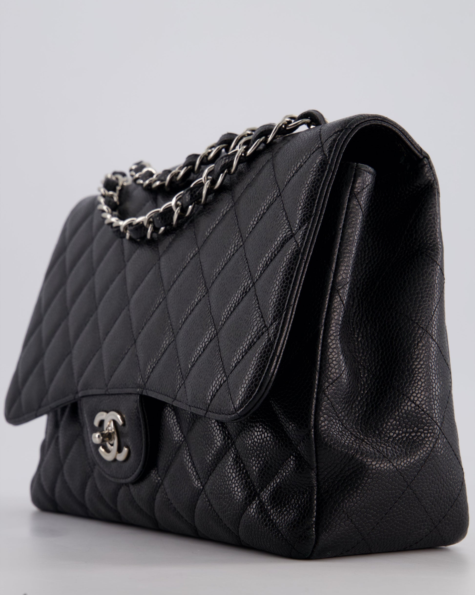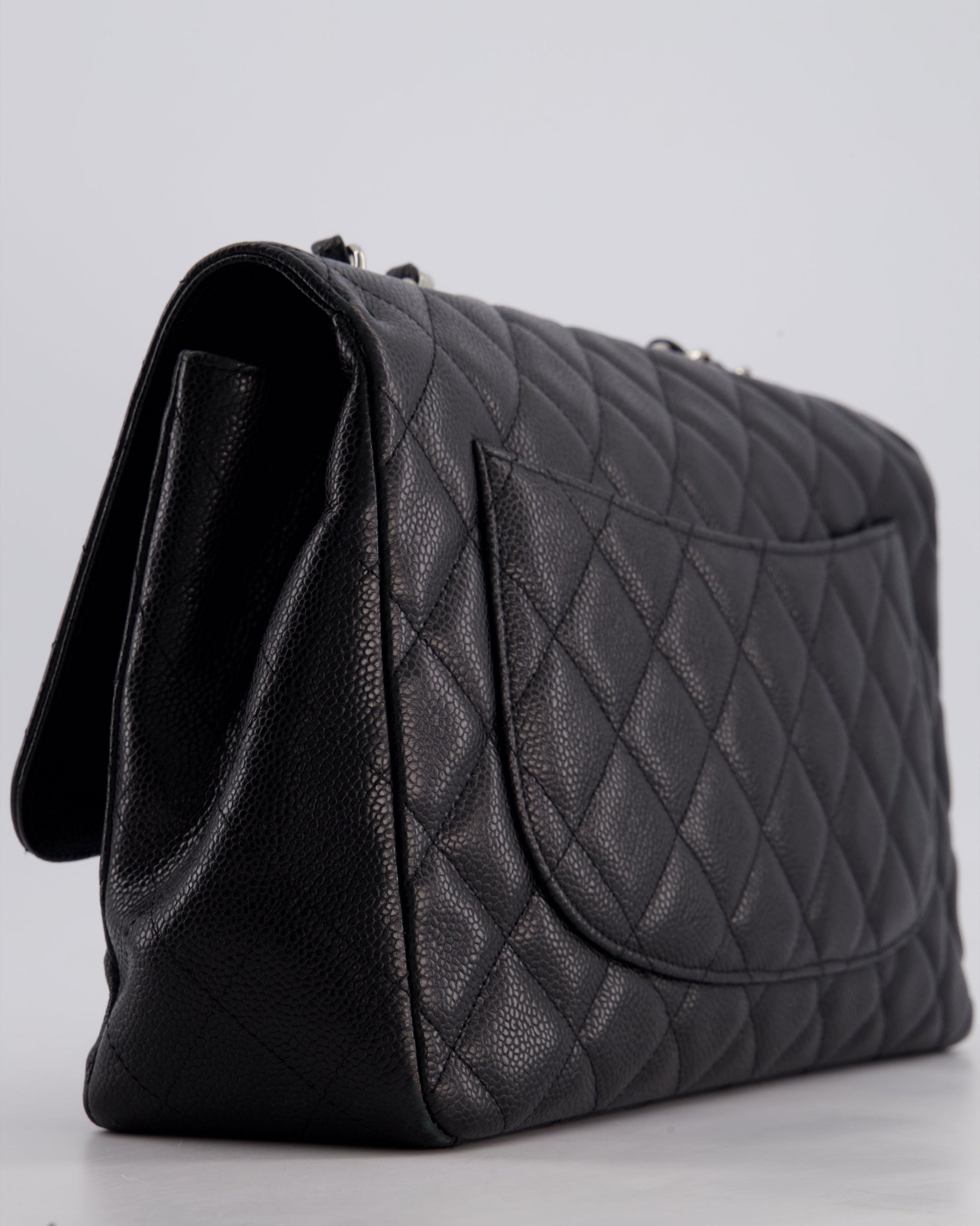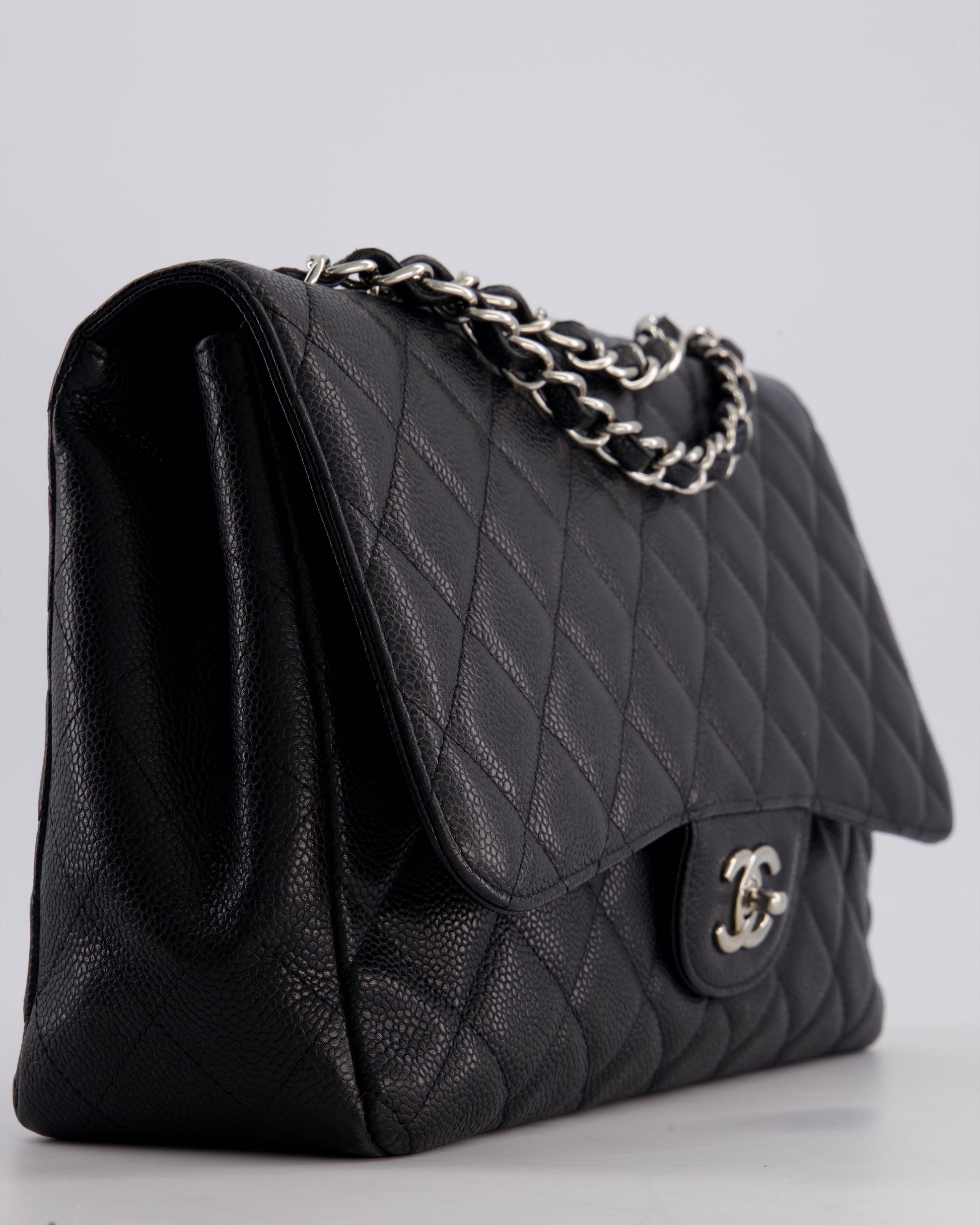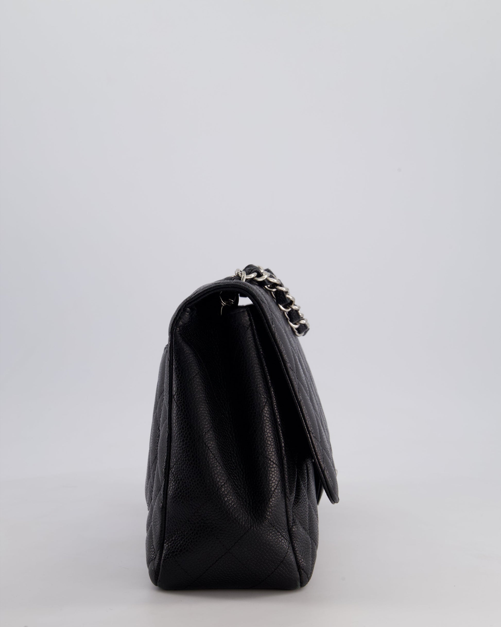 Chanel Black Jumbo Classic Single Flap Bag in Caviar Leather with Silver Hardware