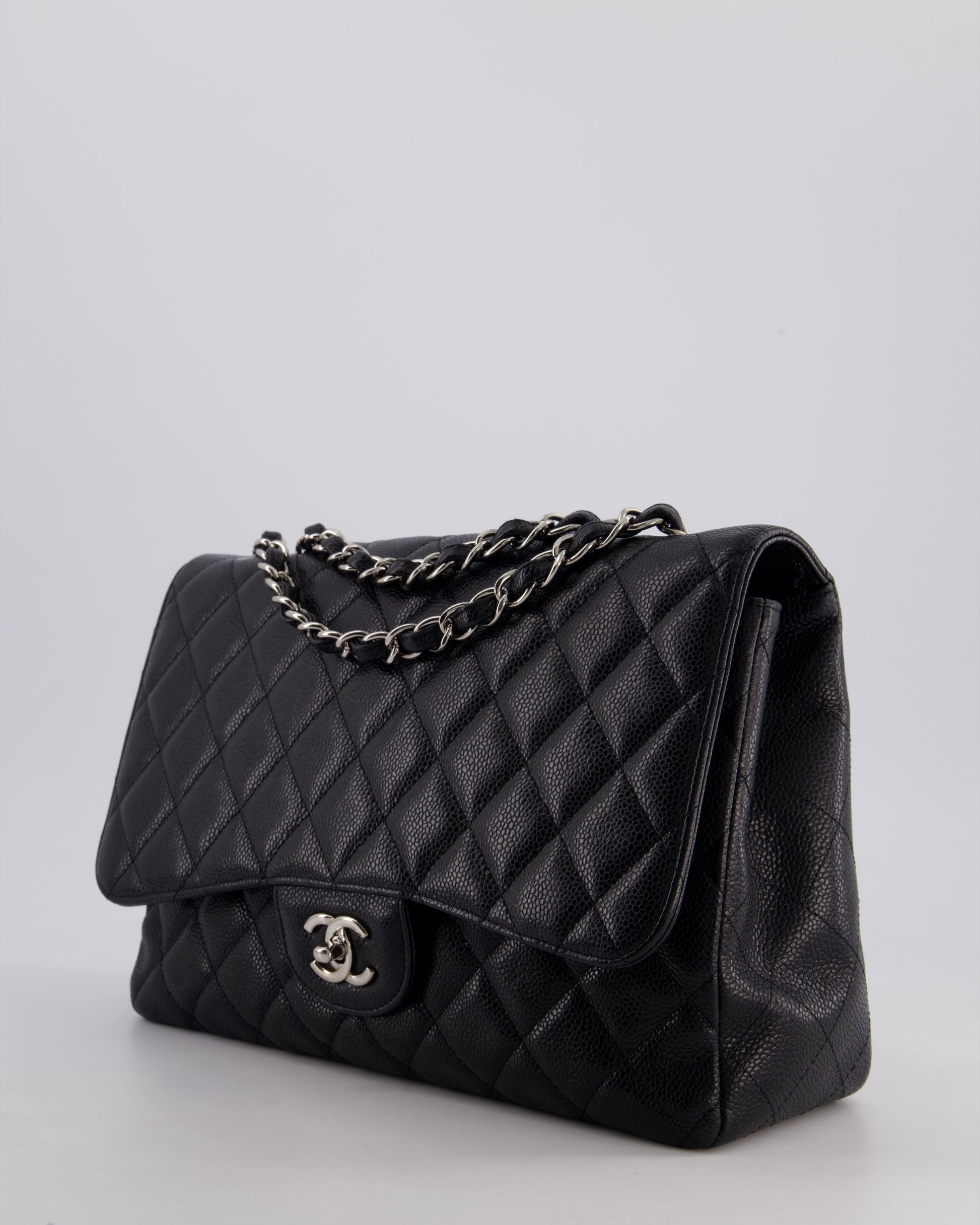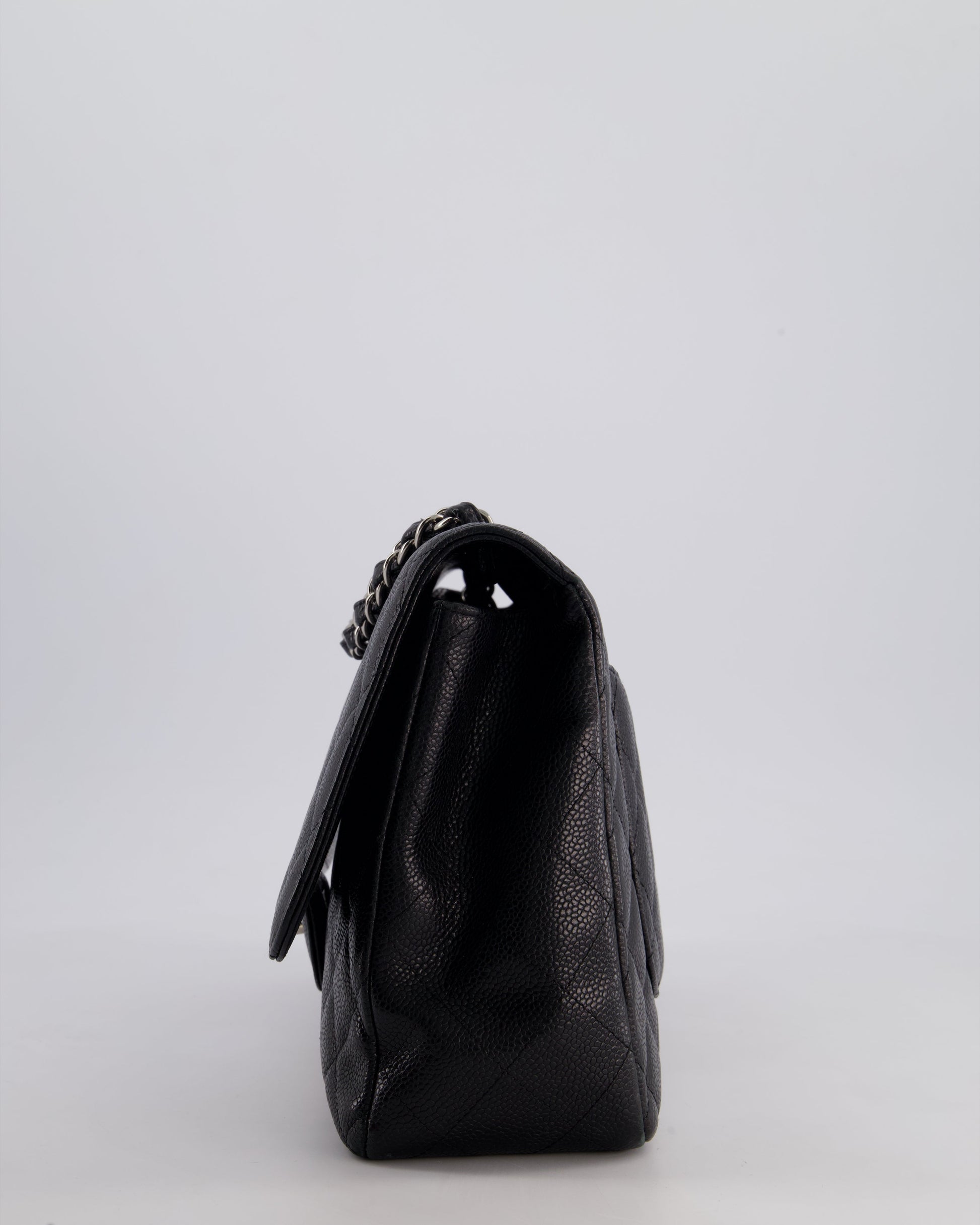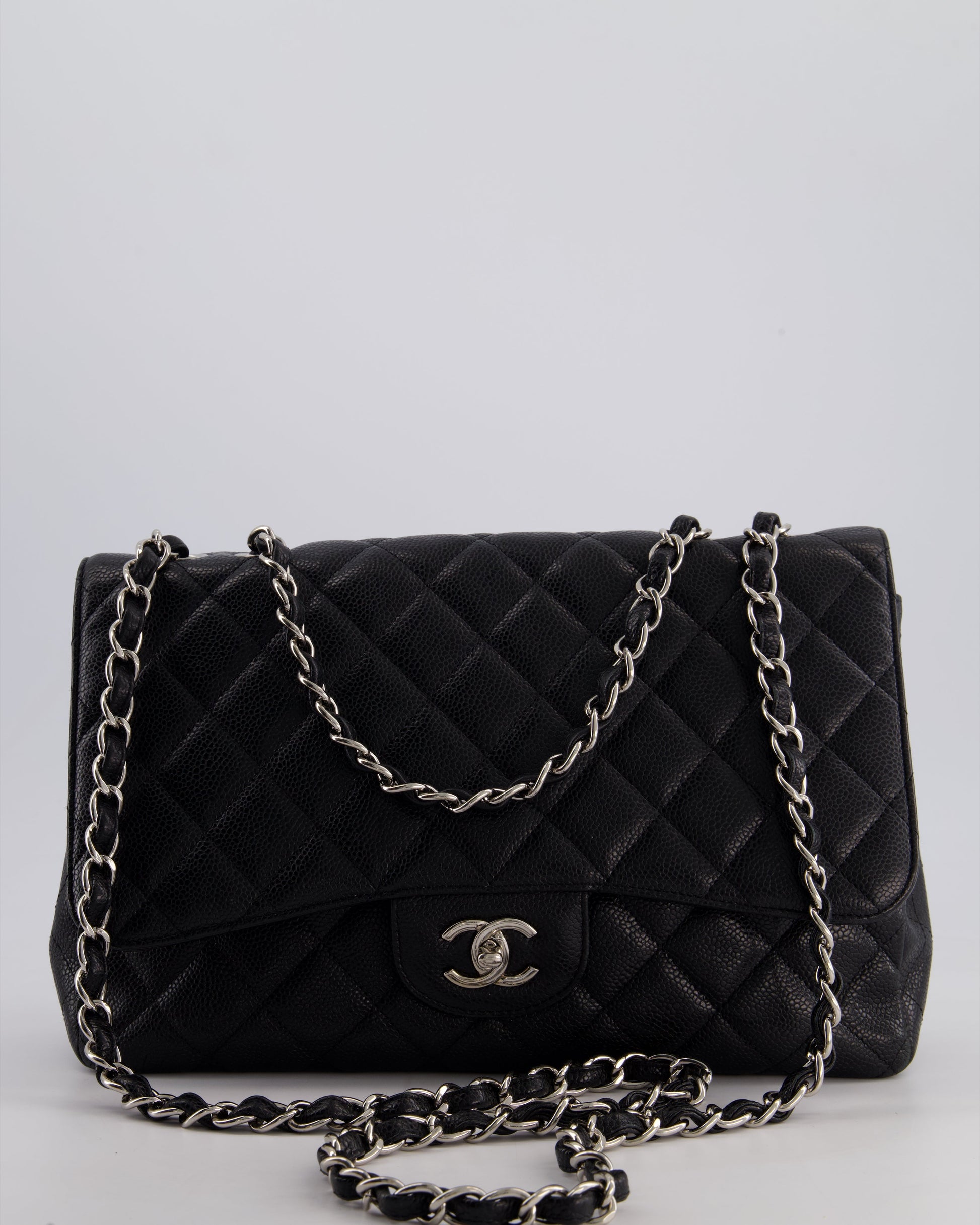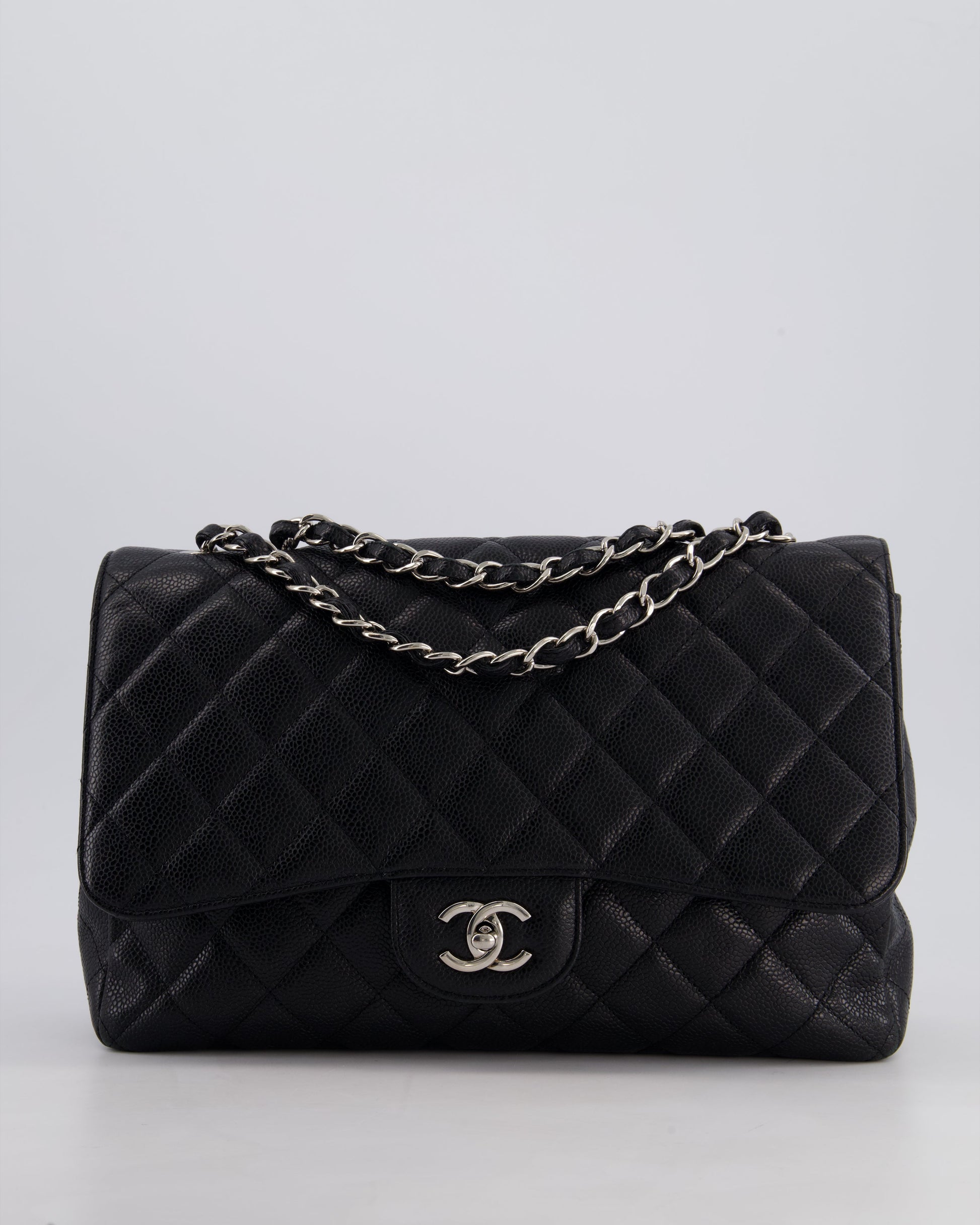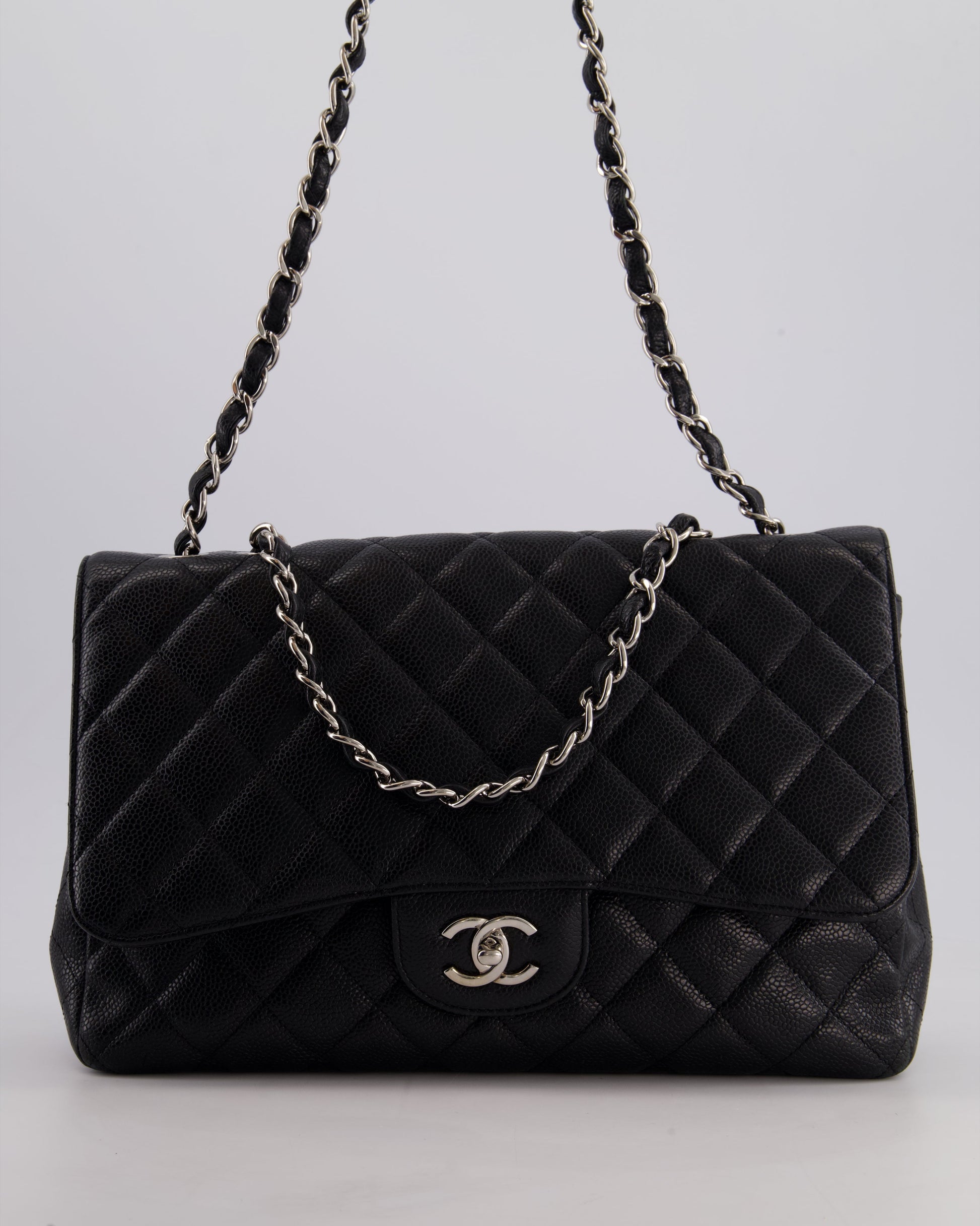 Chanel Black Jumbo Classic Single Flap Bag in Caviar Leather with Silver Hardware