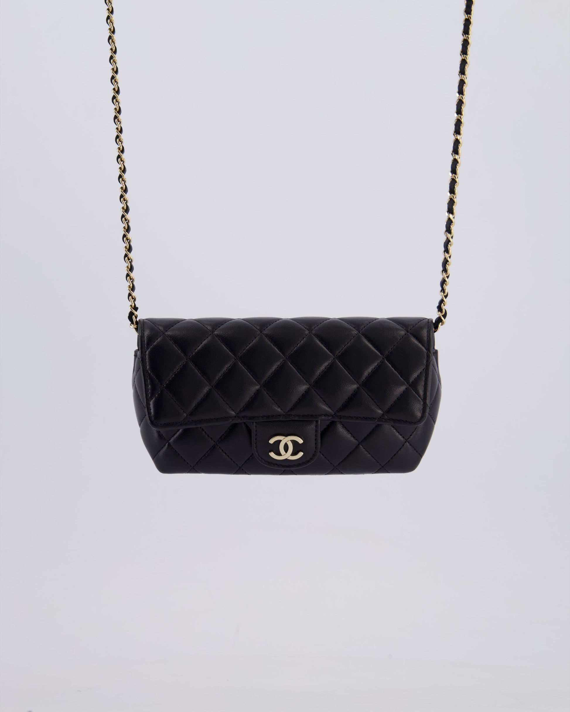 Chanel Black Lambskin Sunglasses Case on Chain Bag with Champagne Gold Hardware