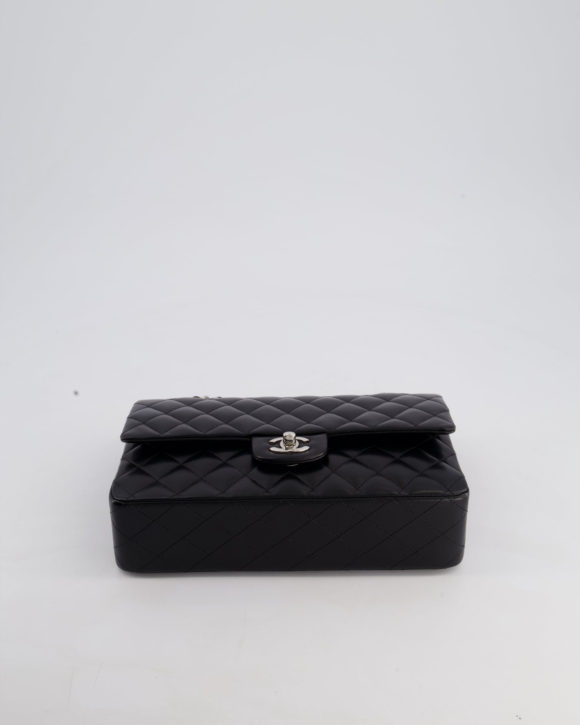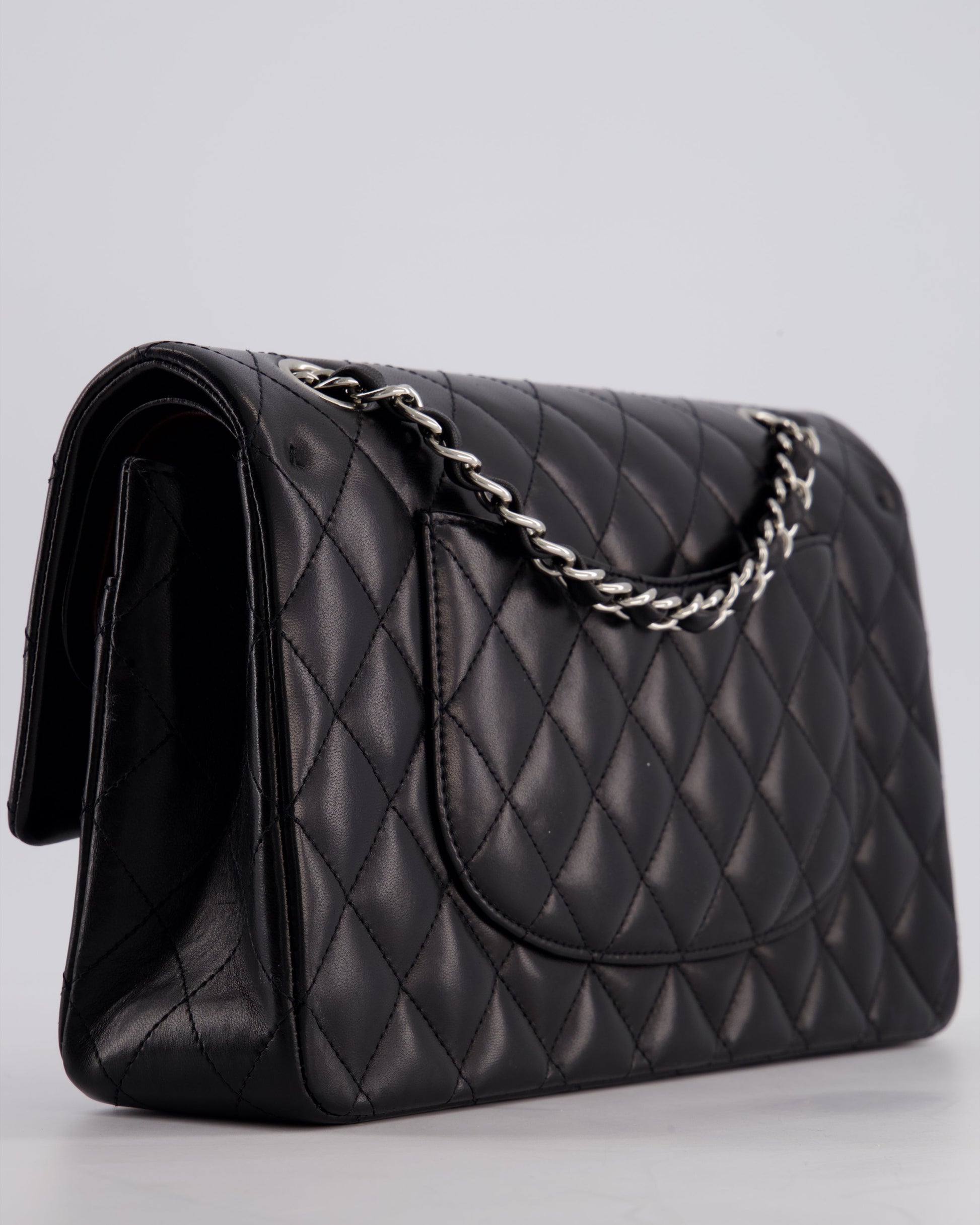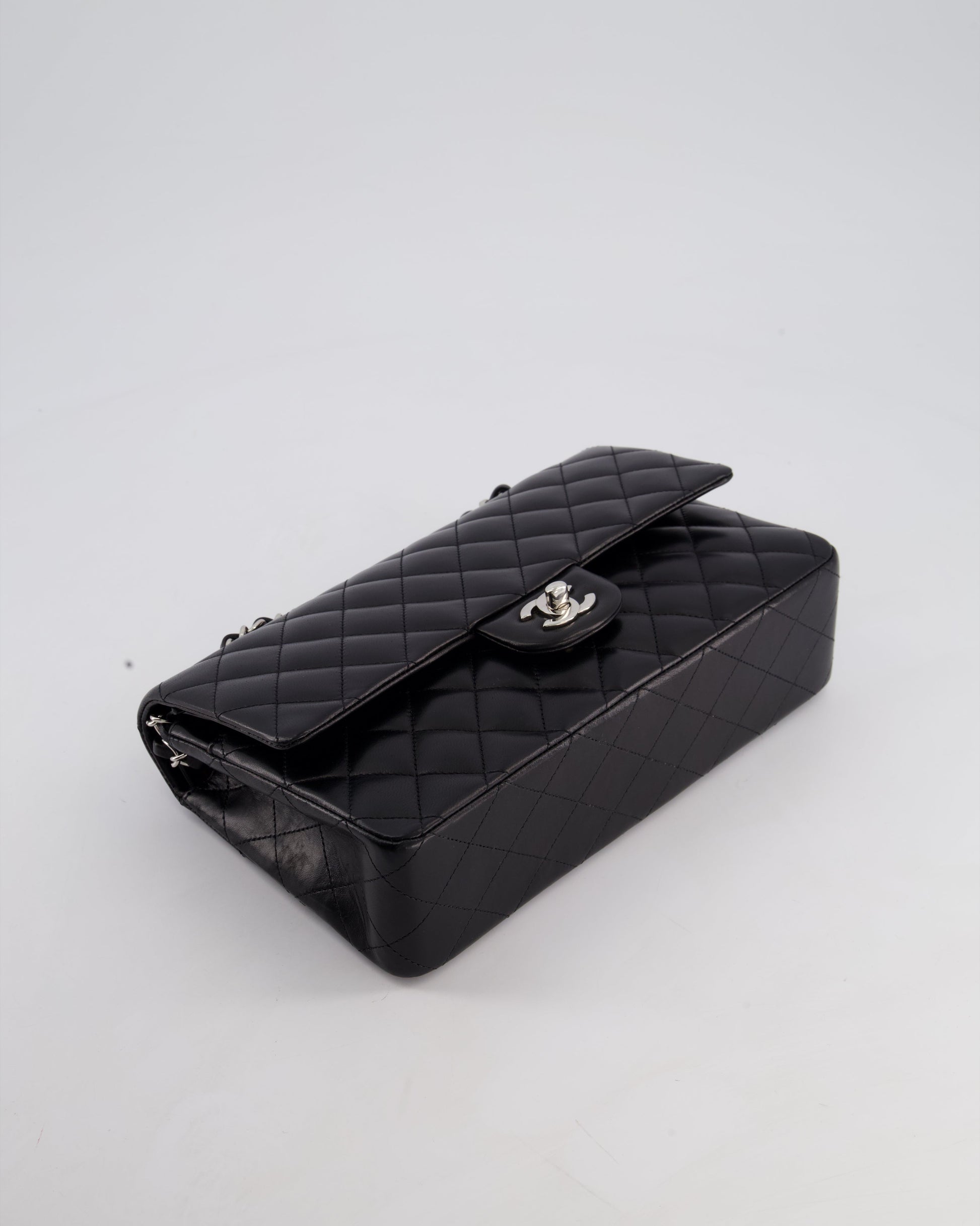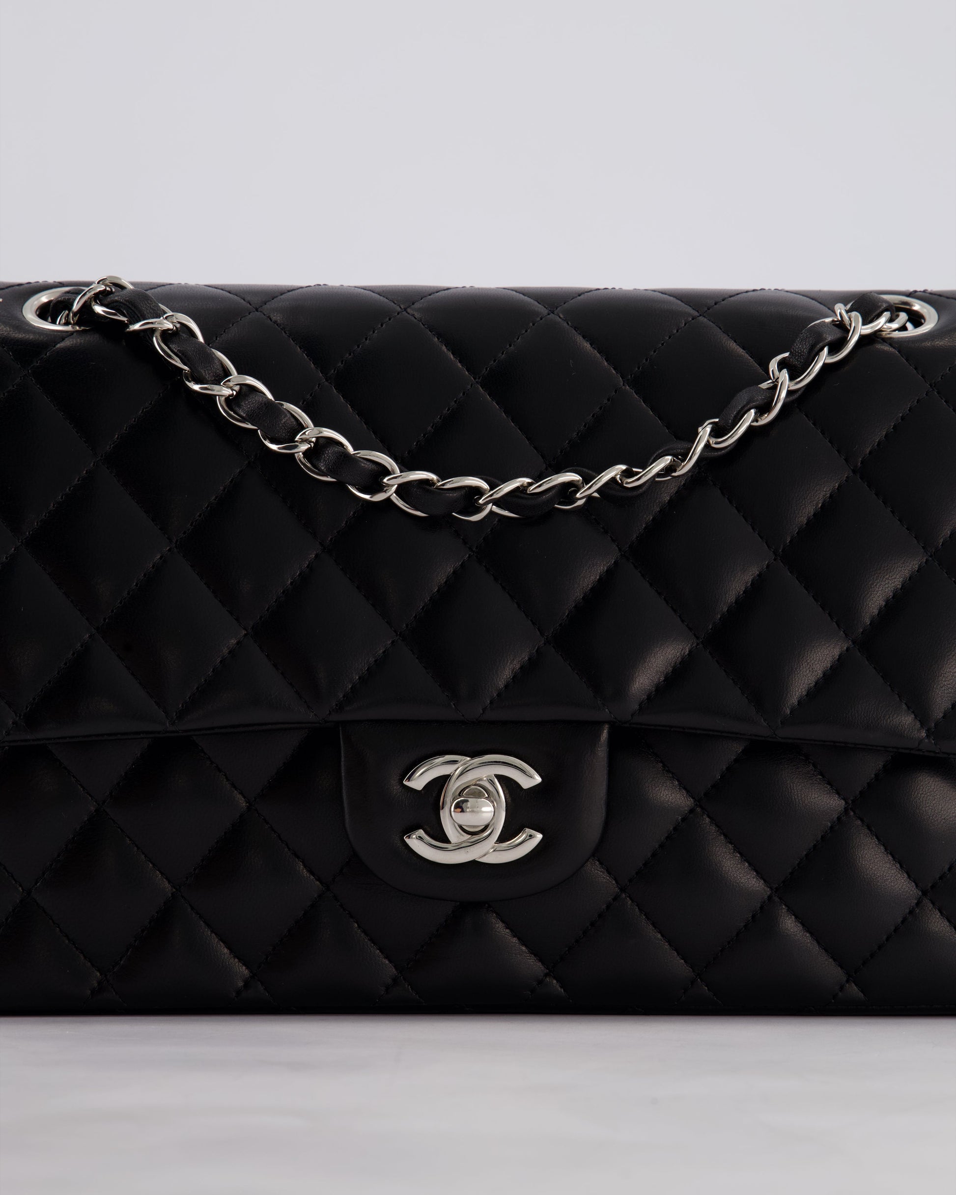 Chanel Black Medium Classic Double Flap Bag in Lambskin Leather with Silver Hardware