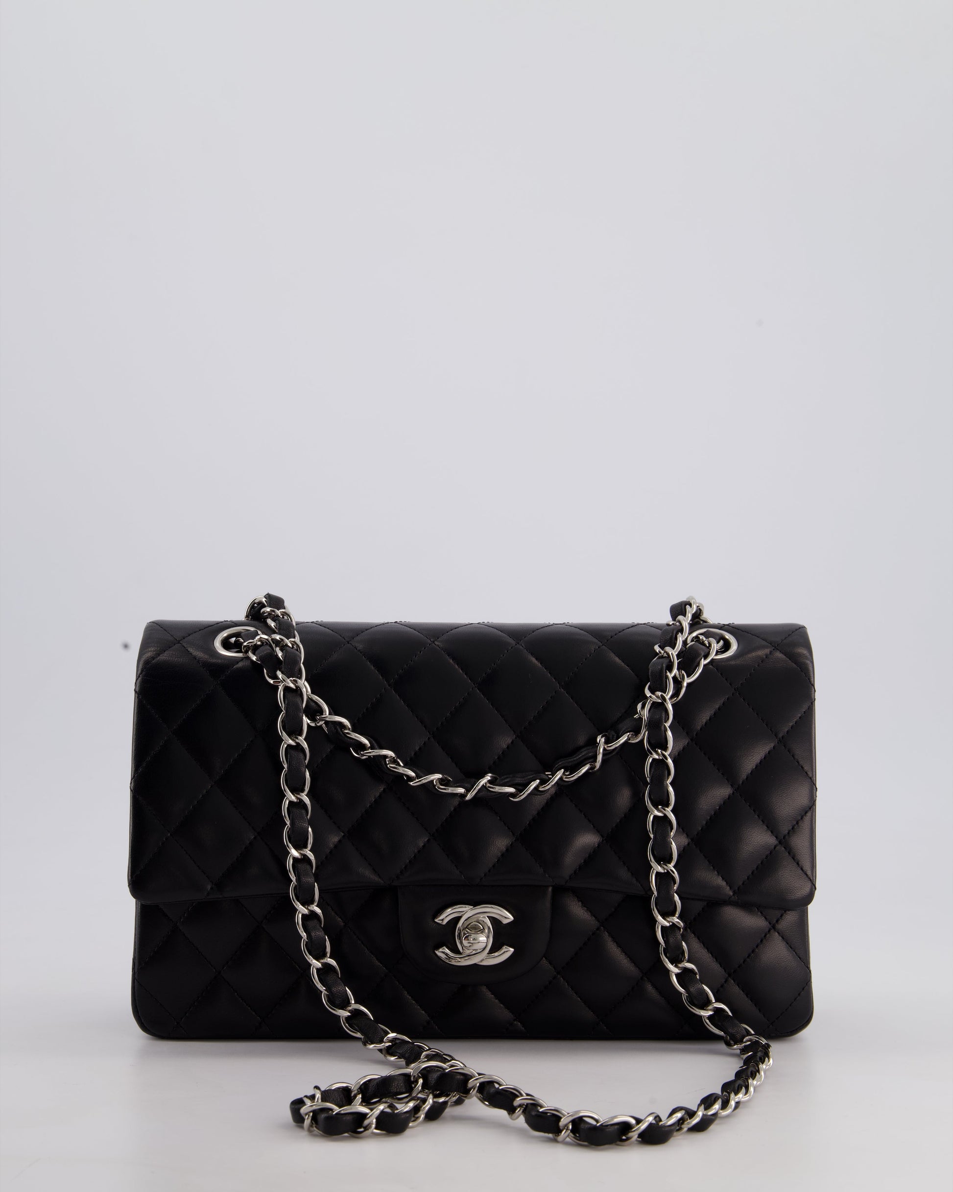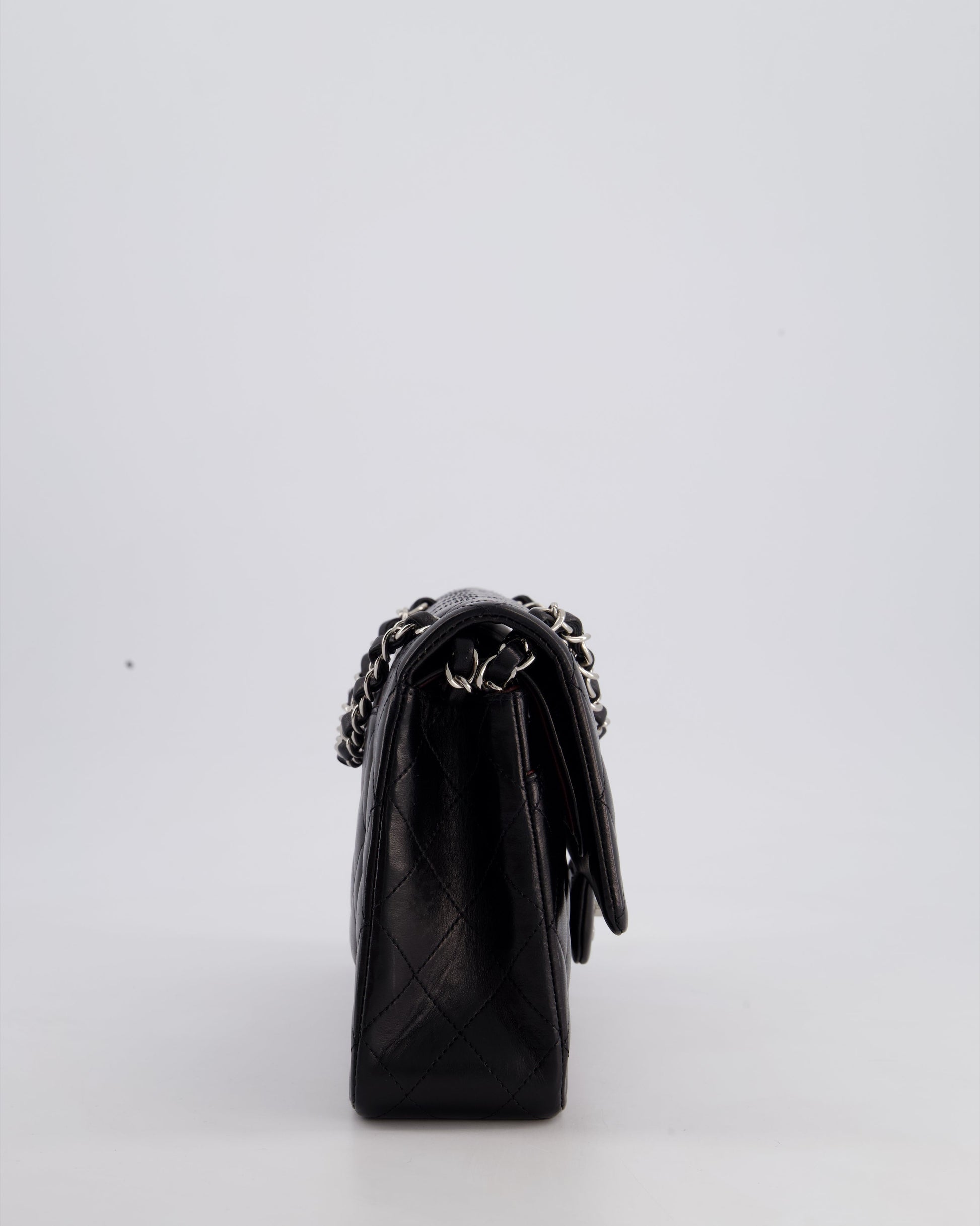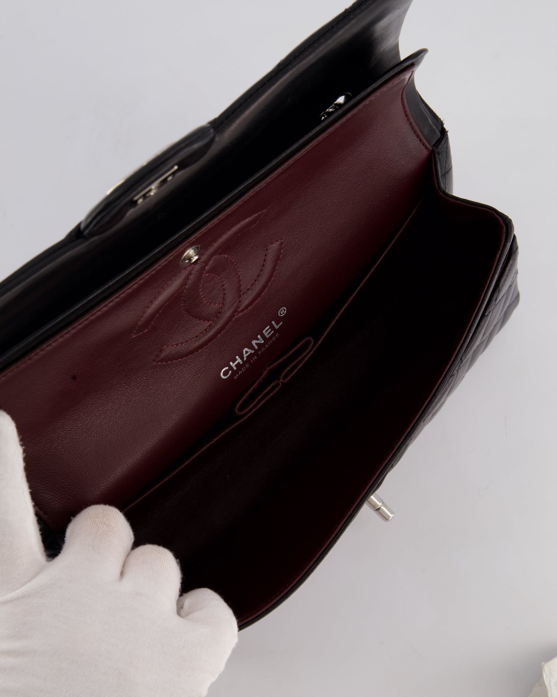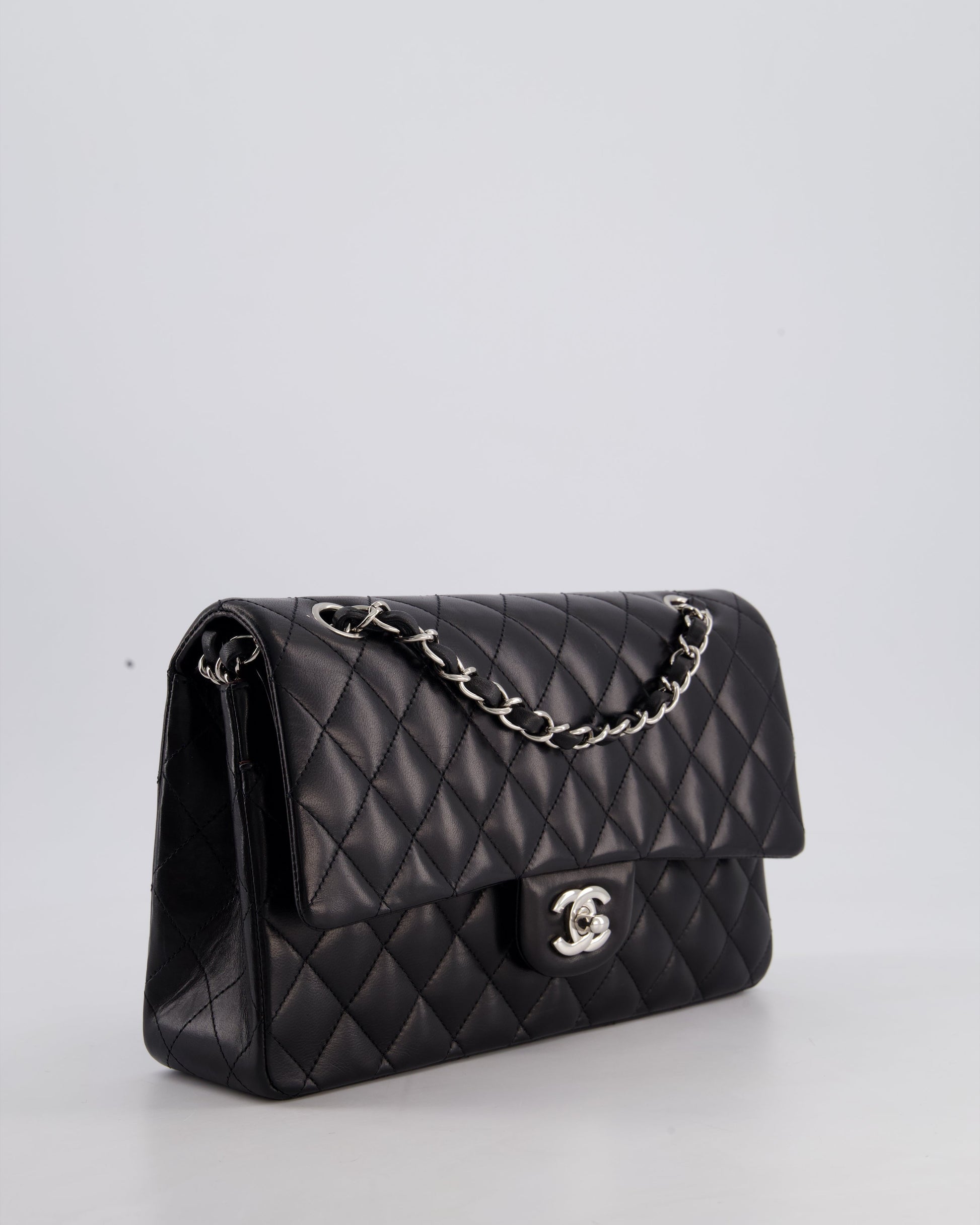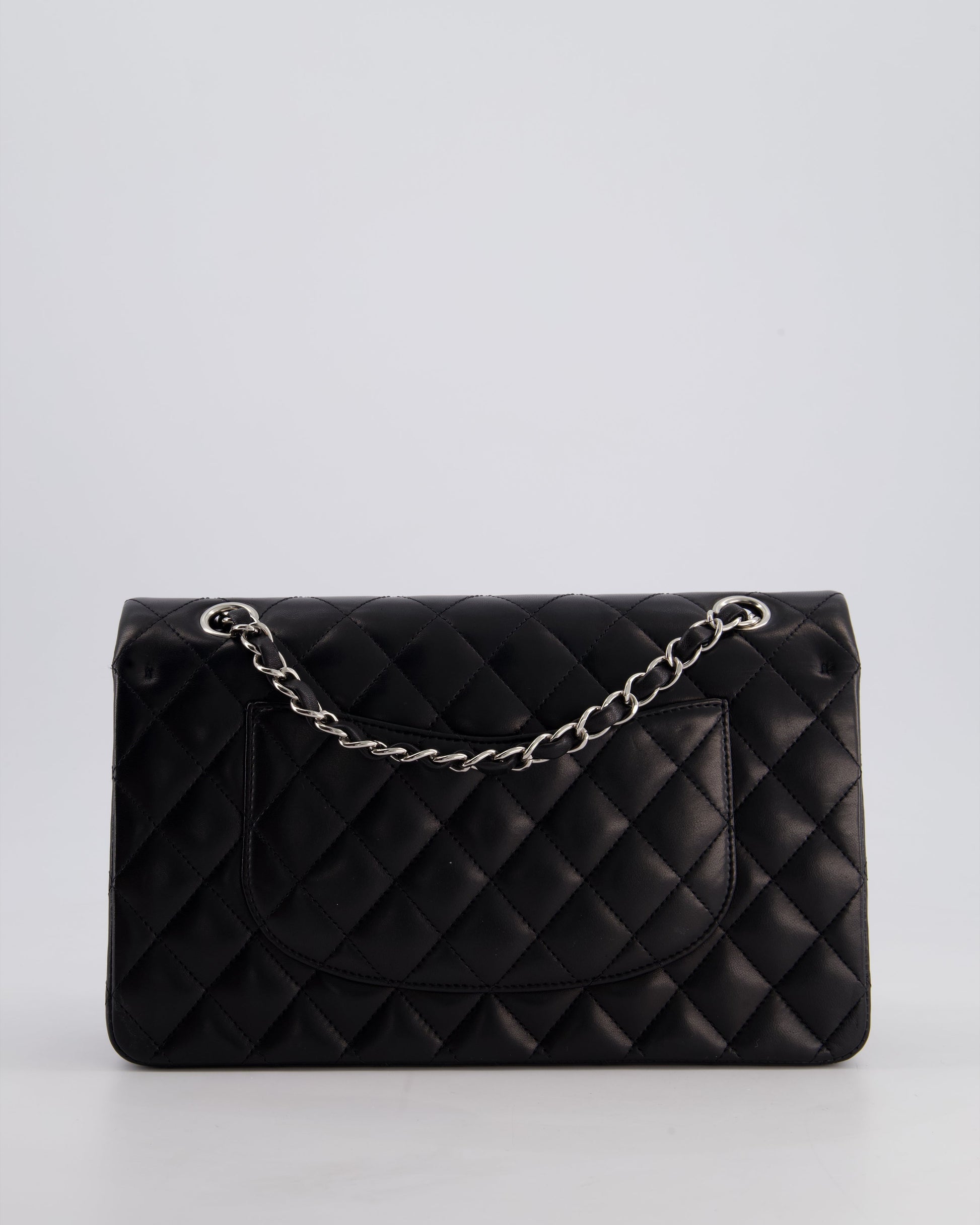 Chanel Black Medium Classic Double Flap Bag in Lambskin Leather with Silver Hardware