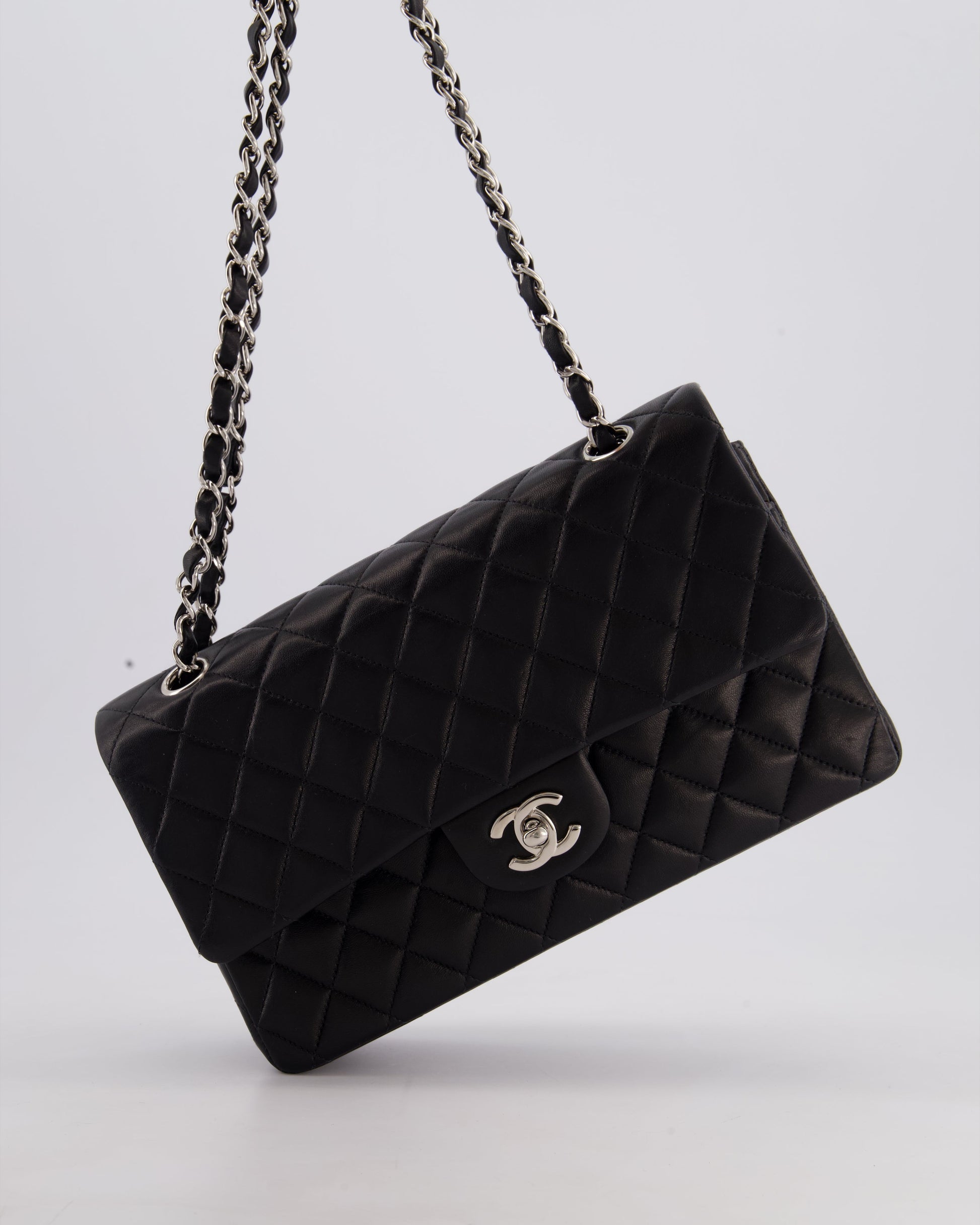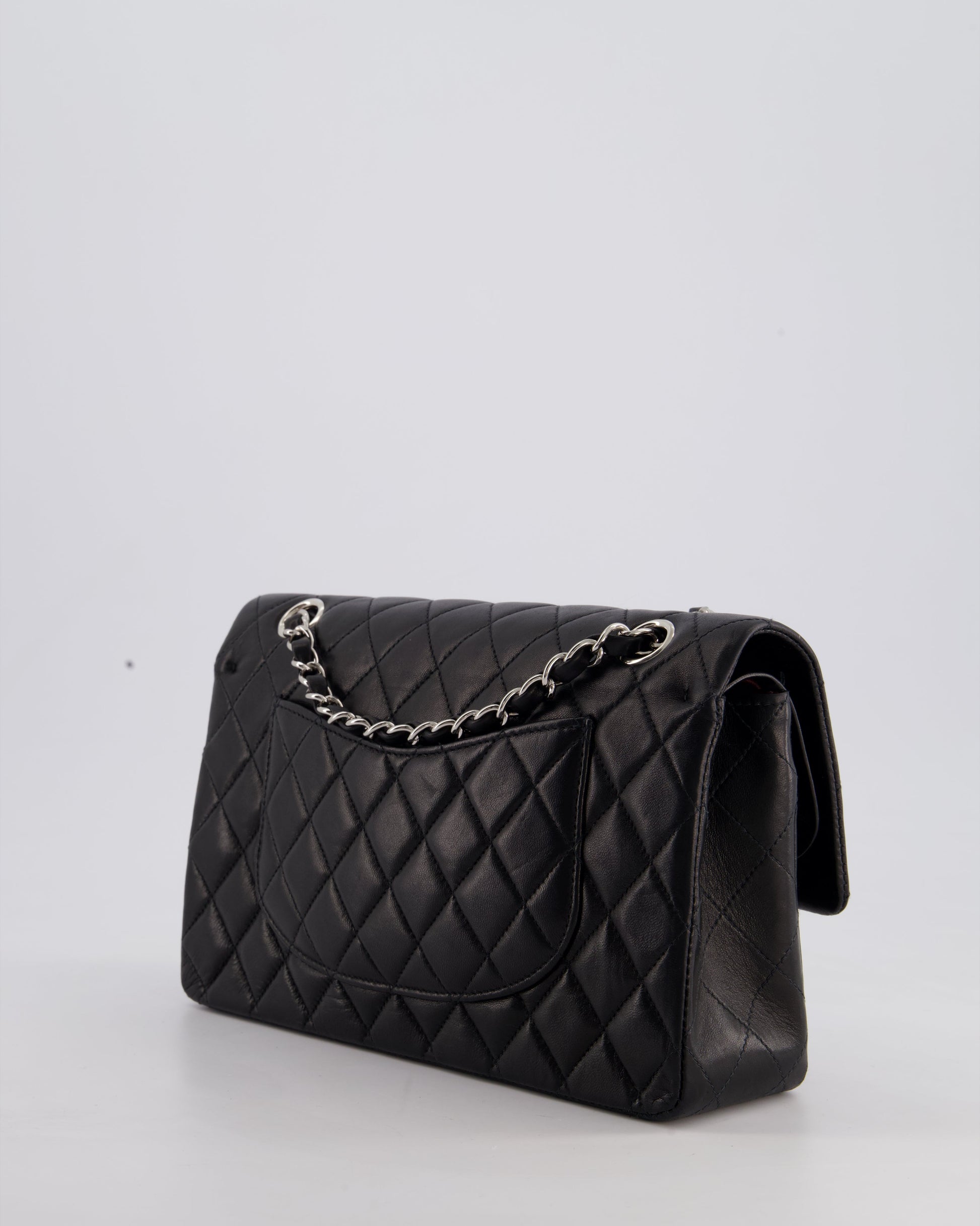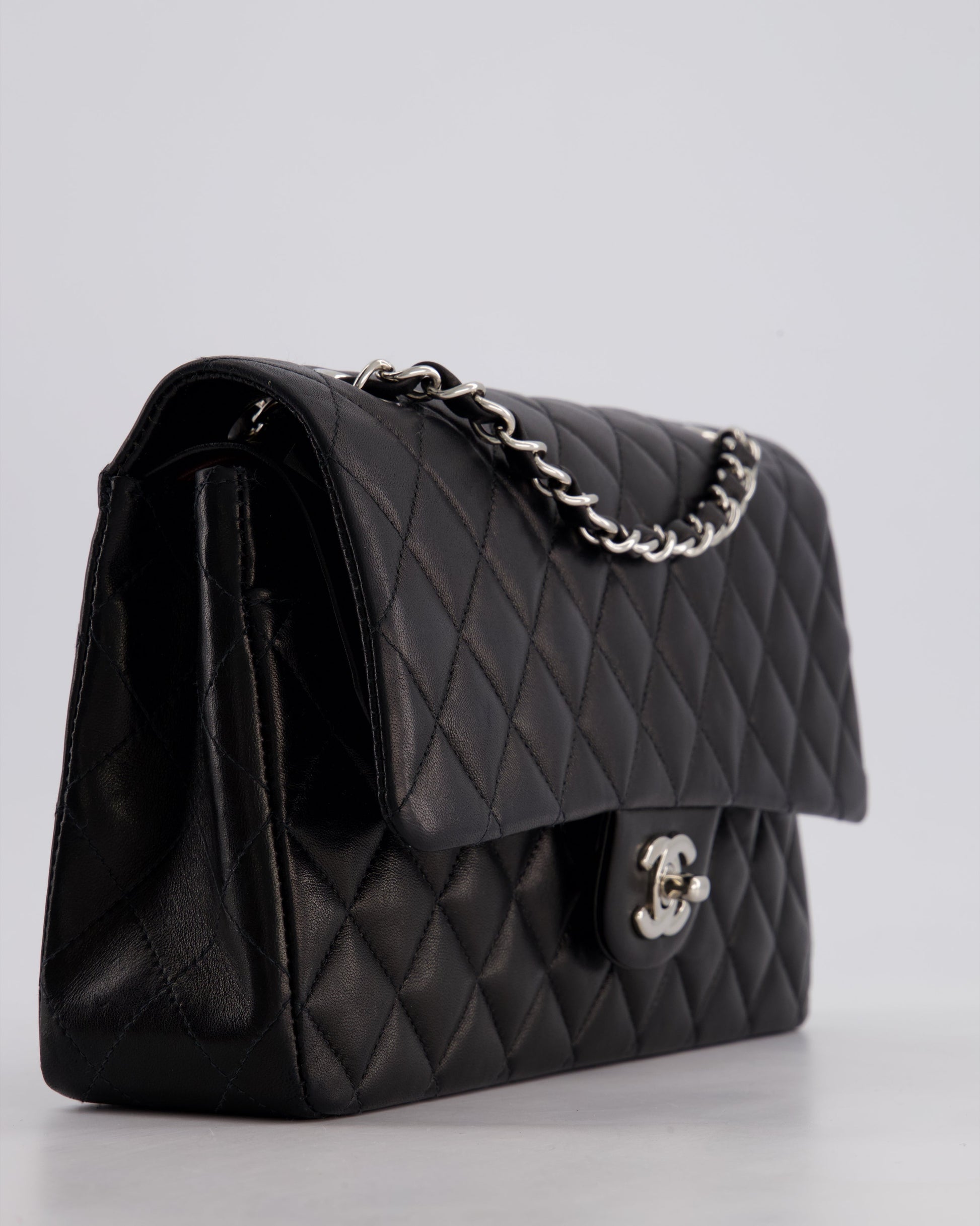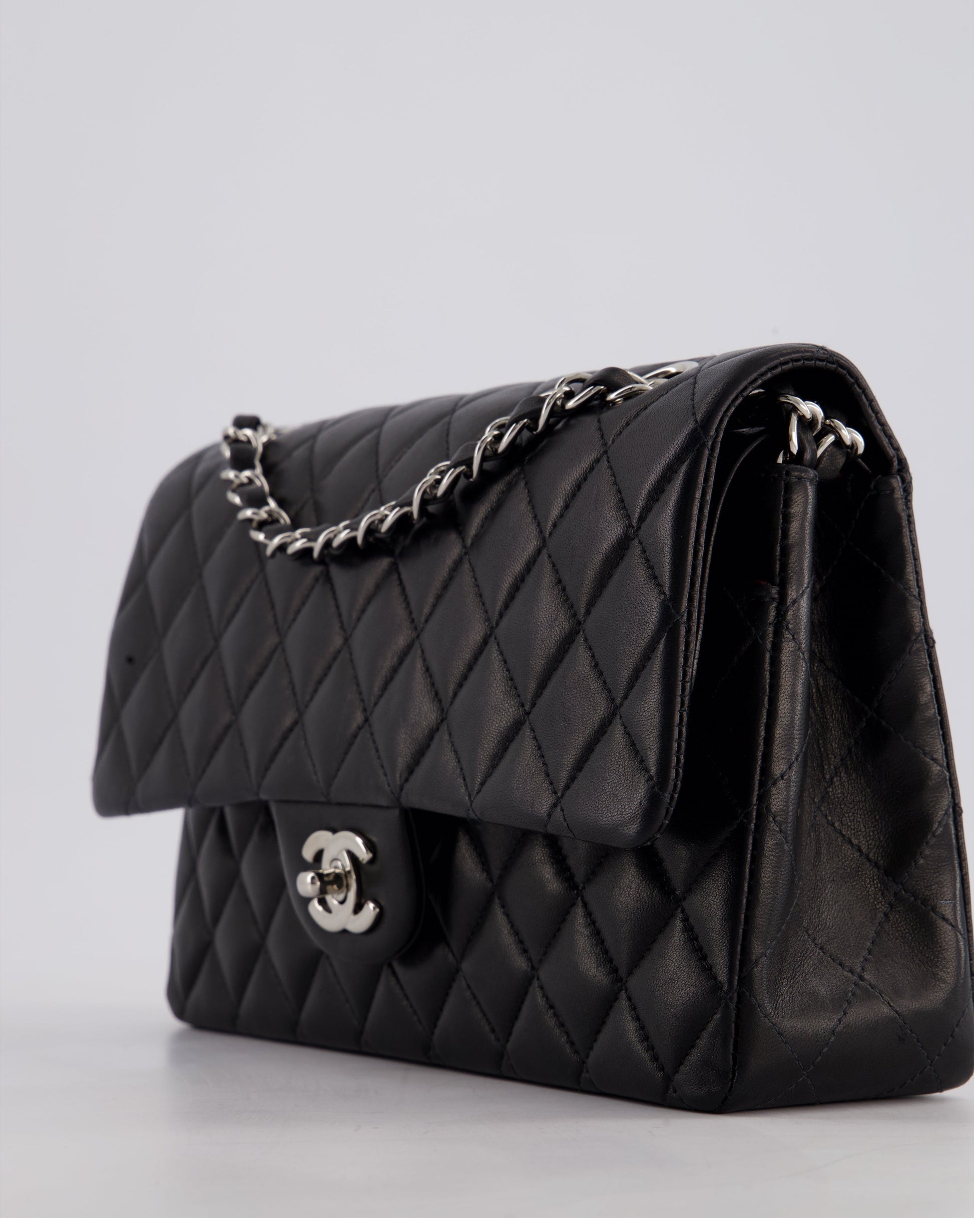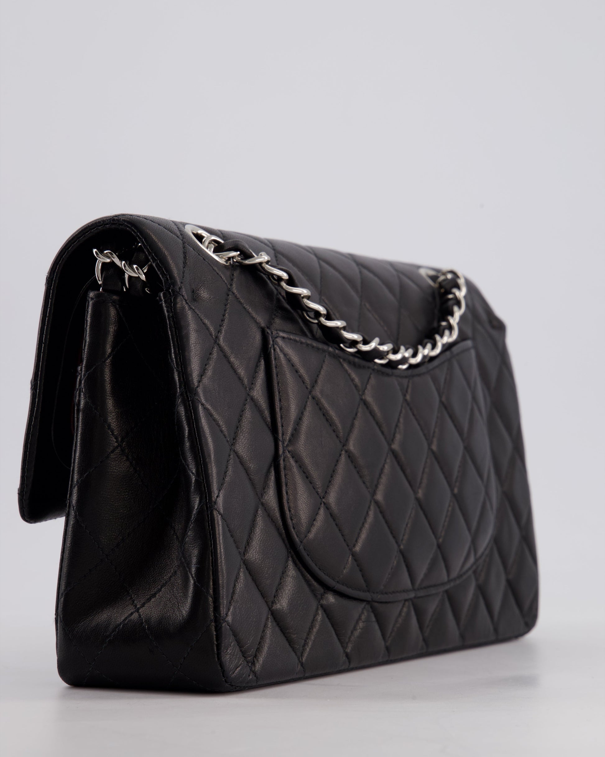 Chanel Black Medium Classic Double Flap Bag in Lambskin Leather with Silver Hardware