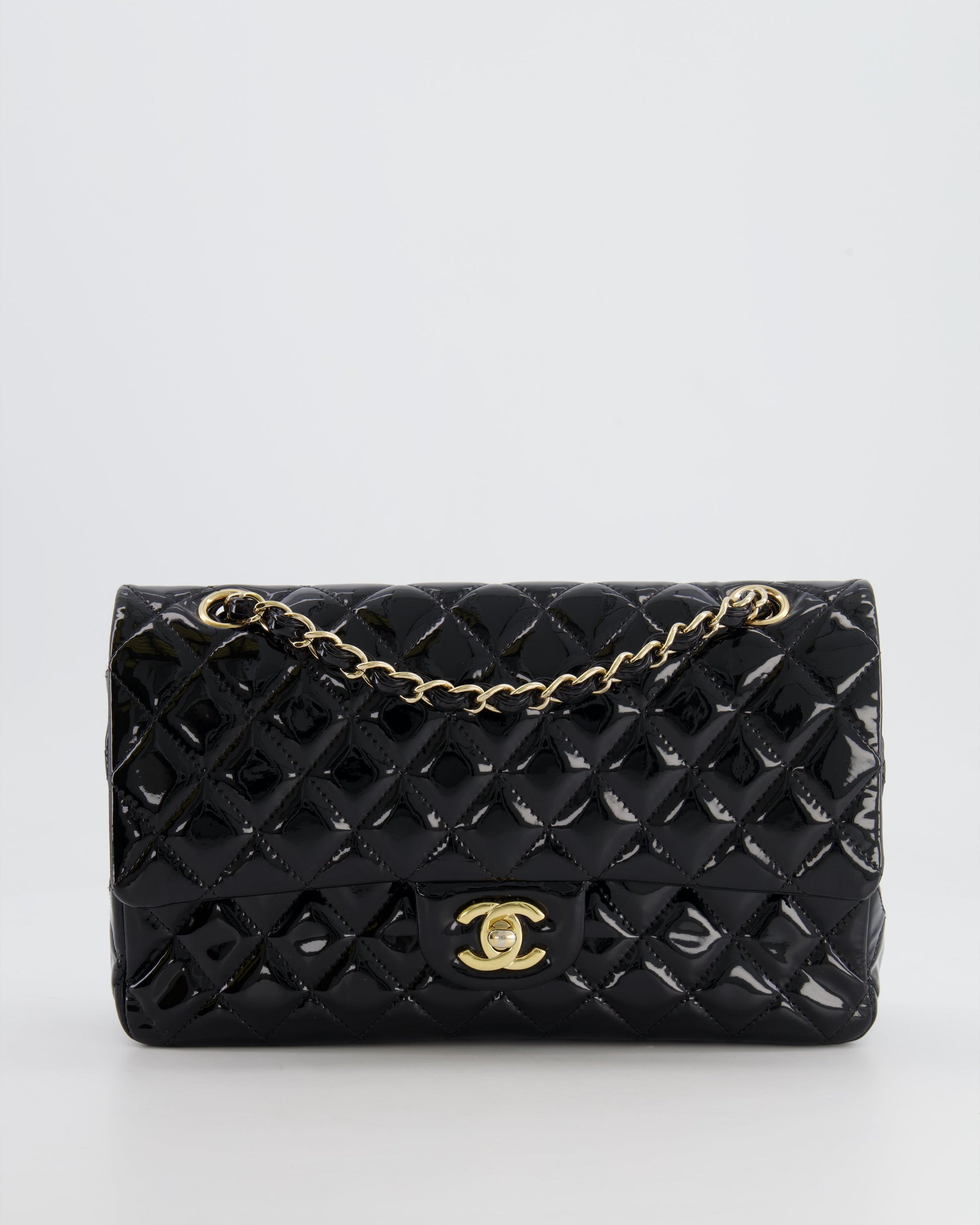 Chanel Black Medium Classic Double Flap Bag in Patent Leather with Gold Hardware