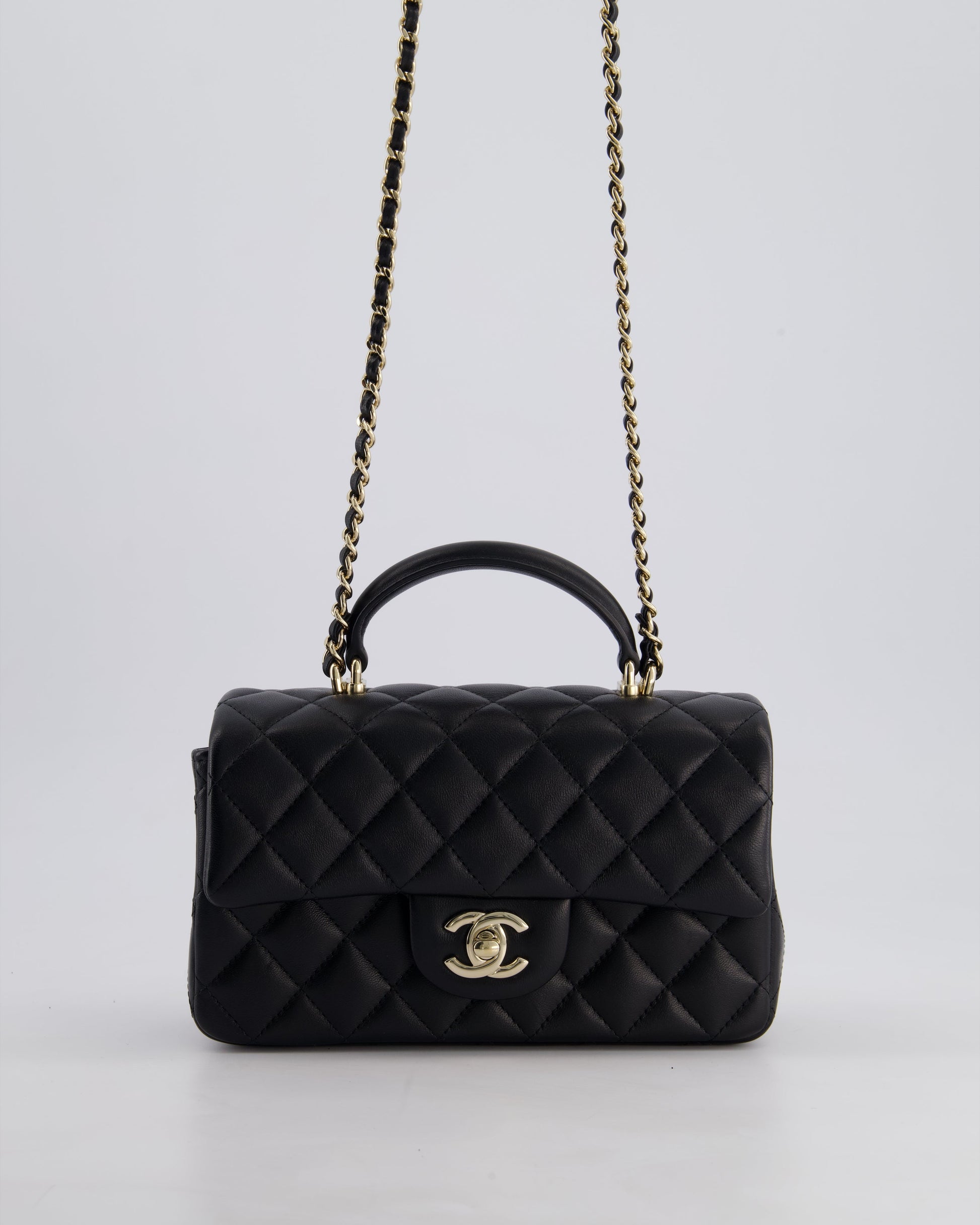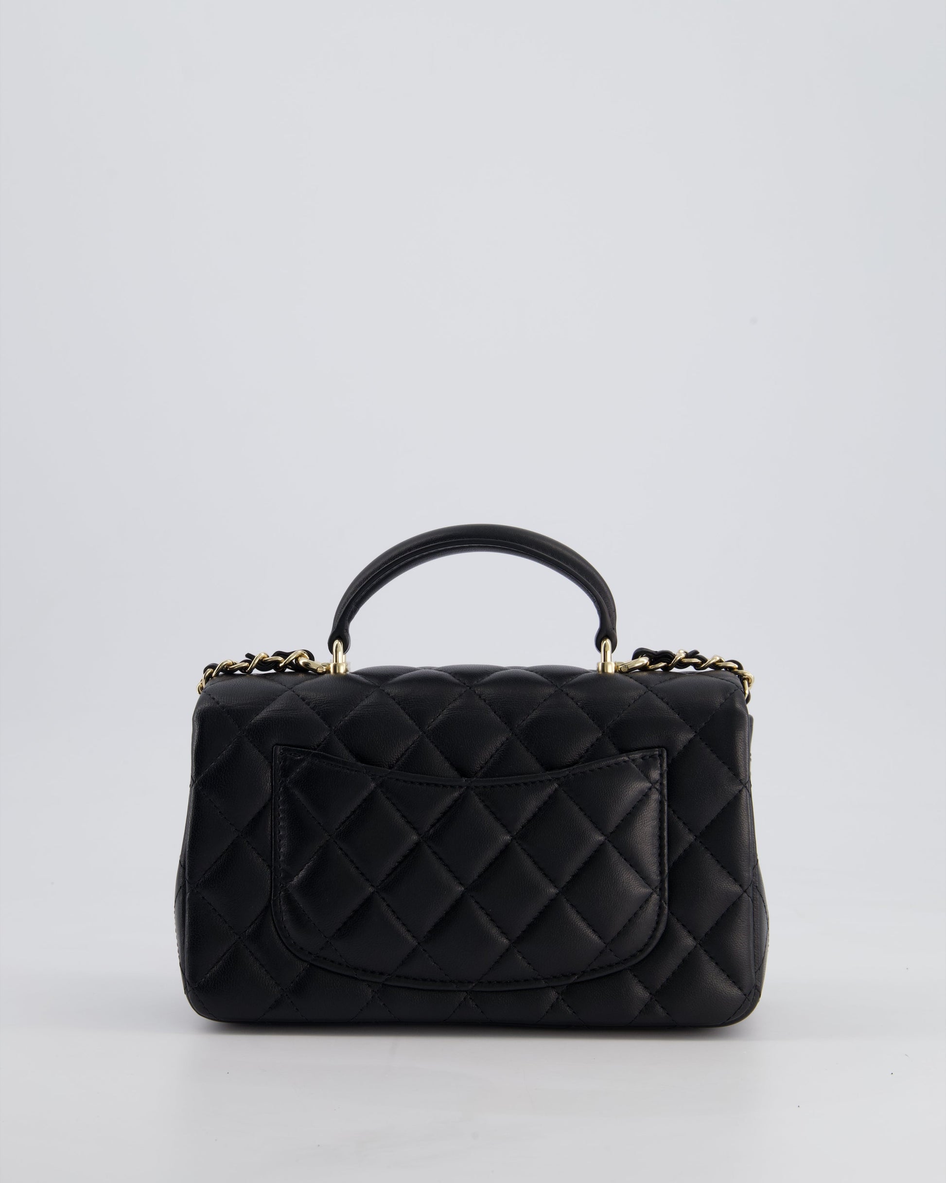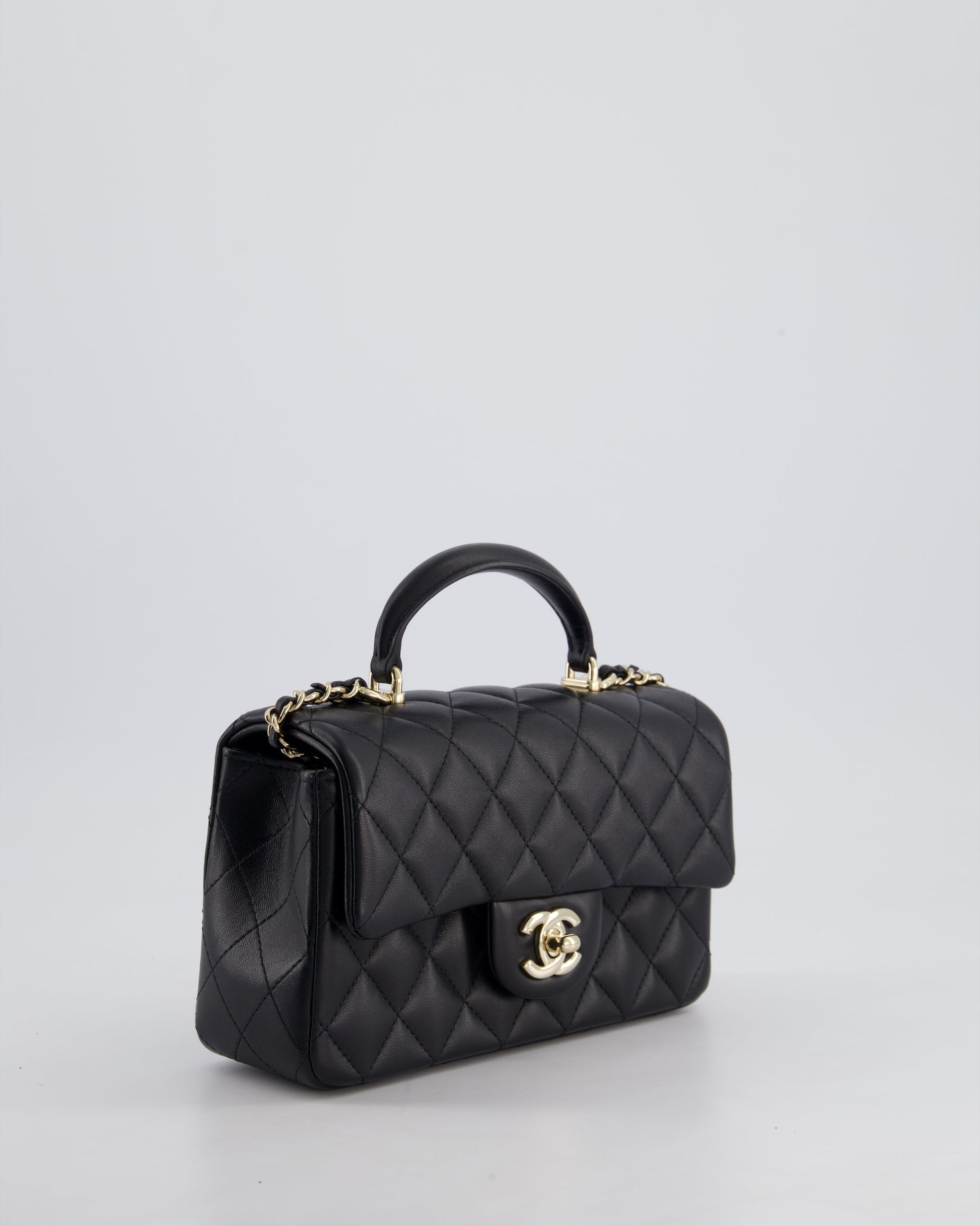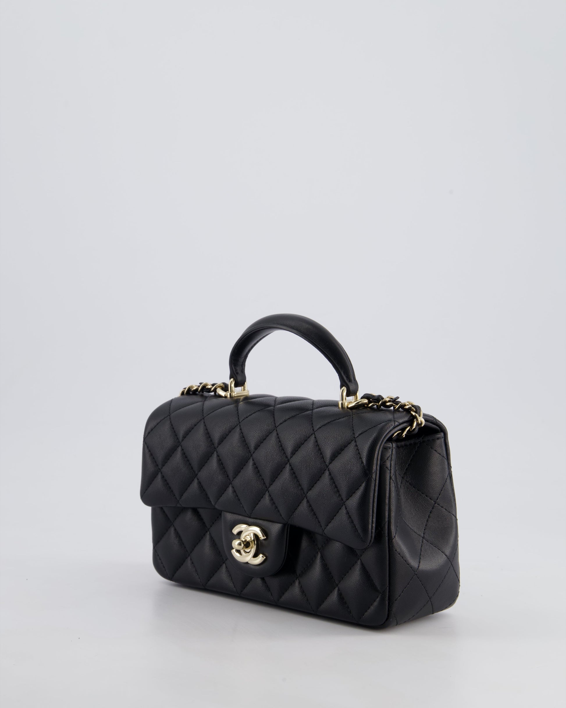 Chanel Black Mini Rectangular Top Handle Bag in Lambskin Leather with Champagne Gold Hardware