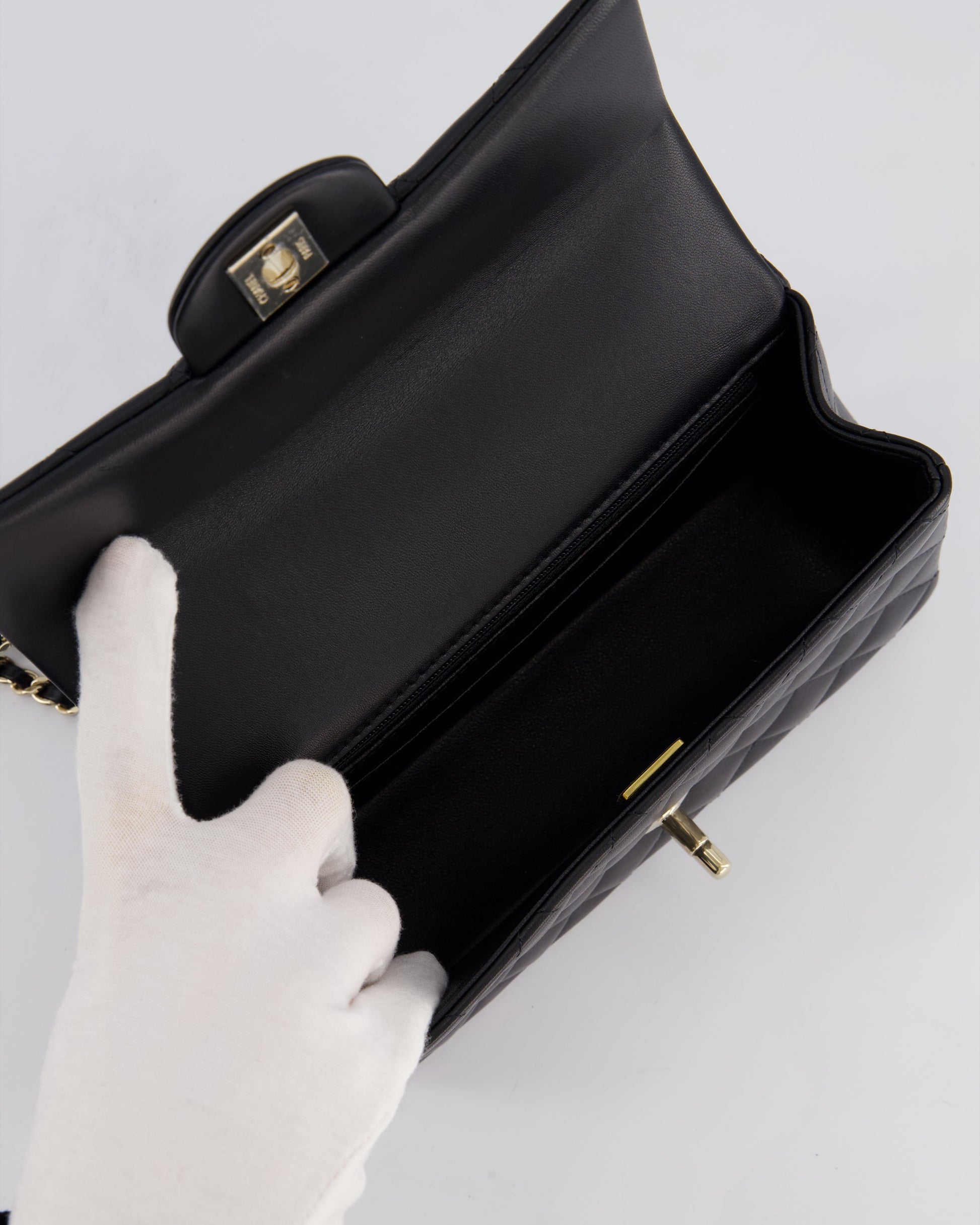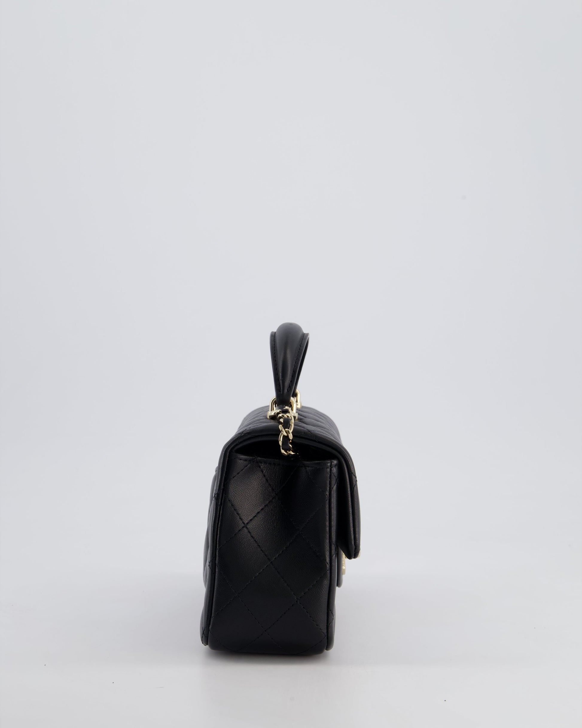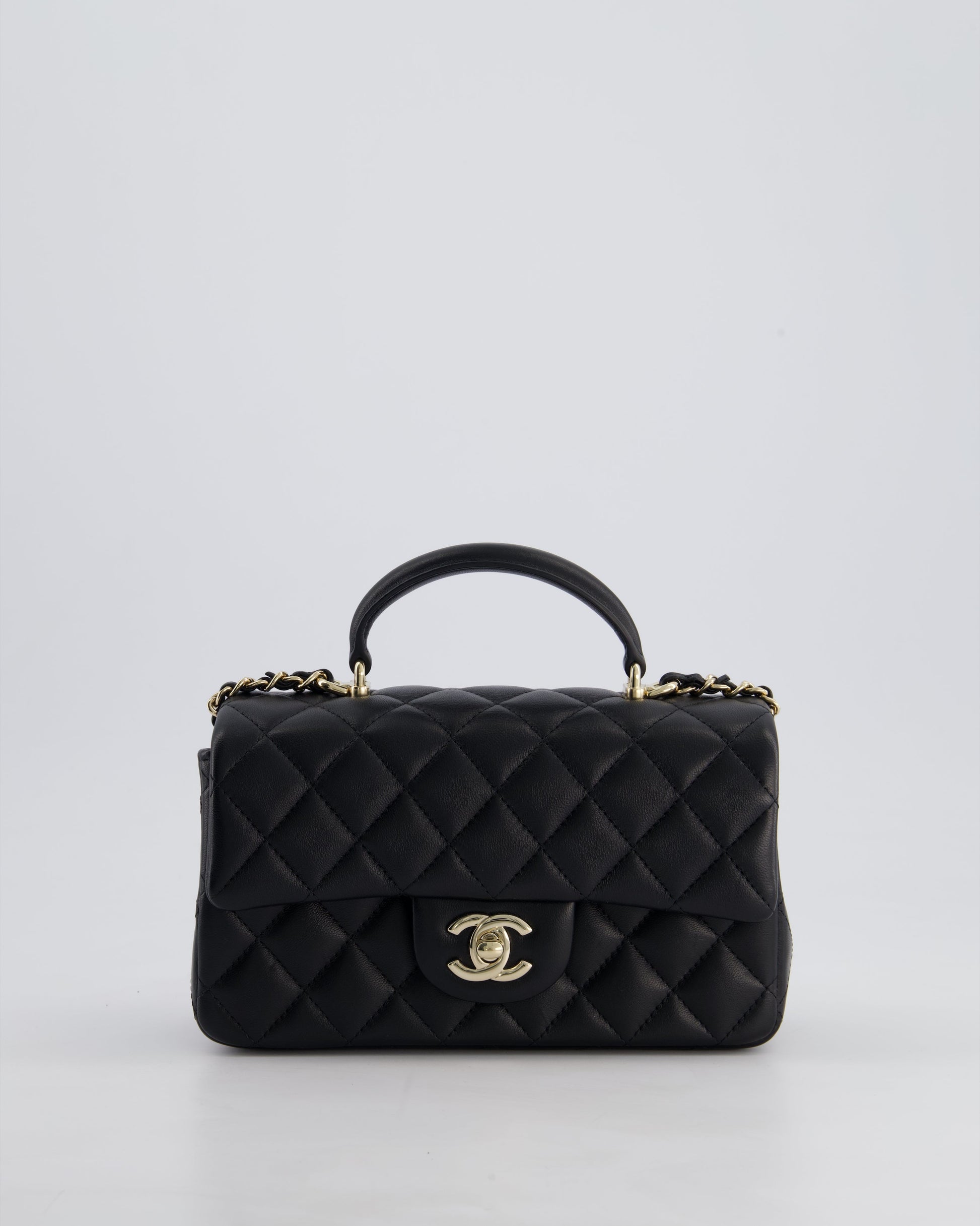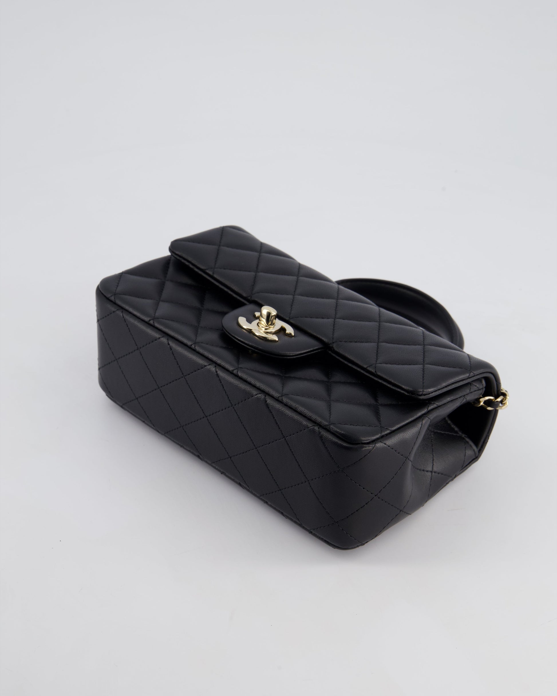 Chanel Black Mini Rectangular Top Handle Bag in Lambskin Leather with Champagne Gold Hardware