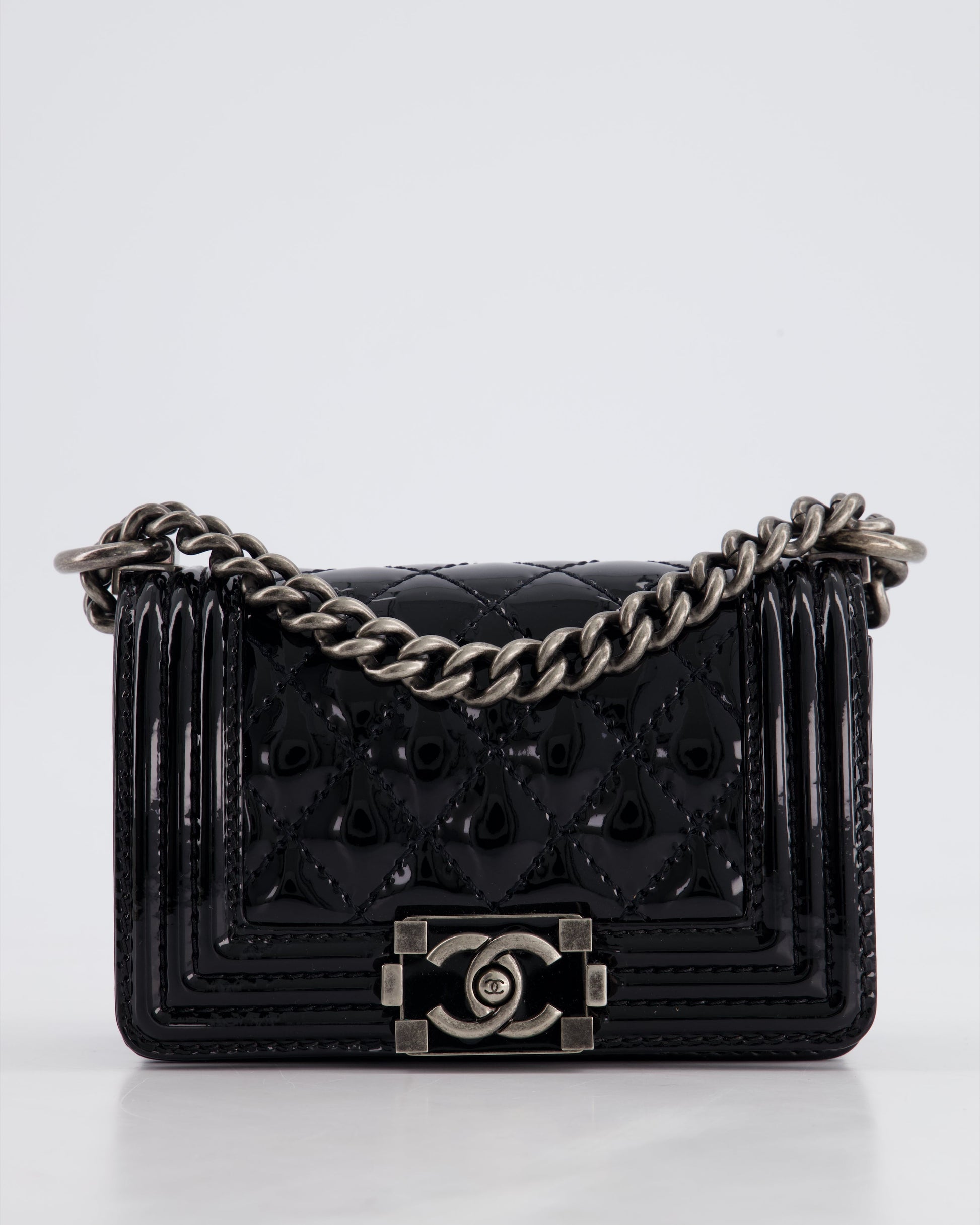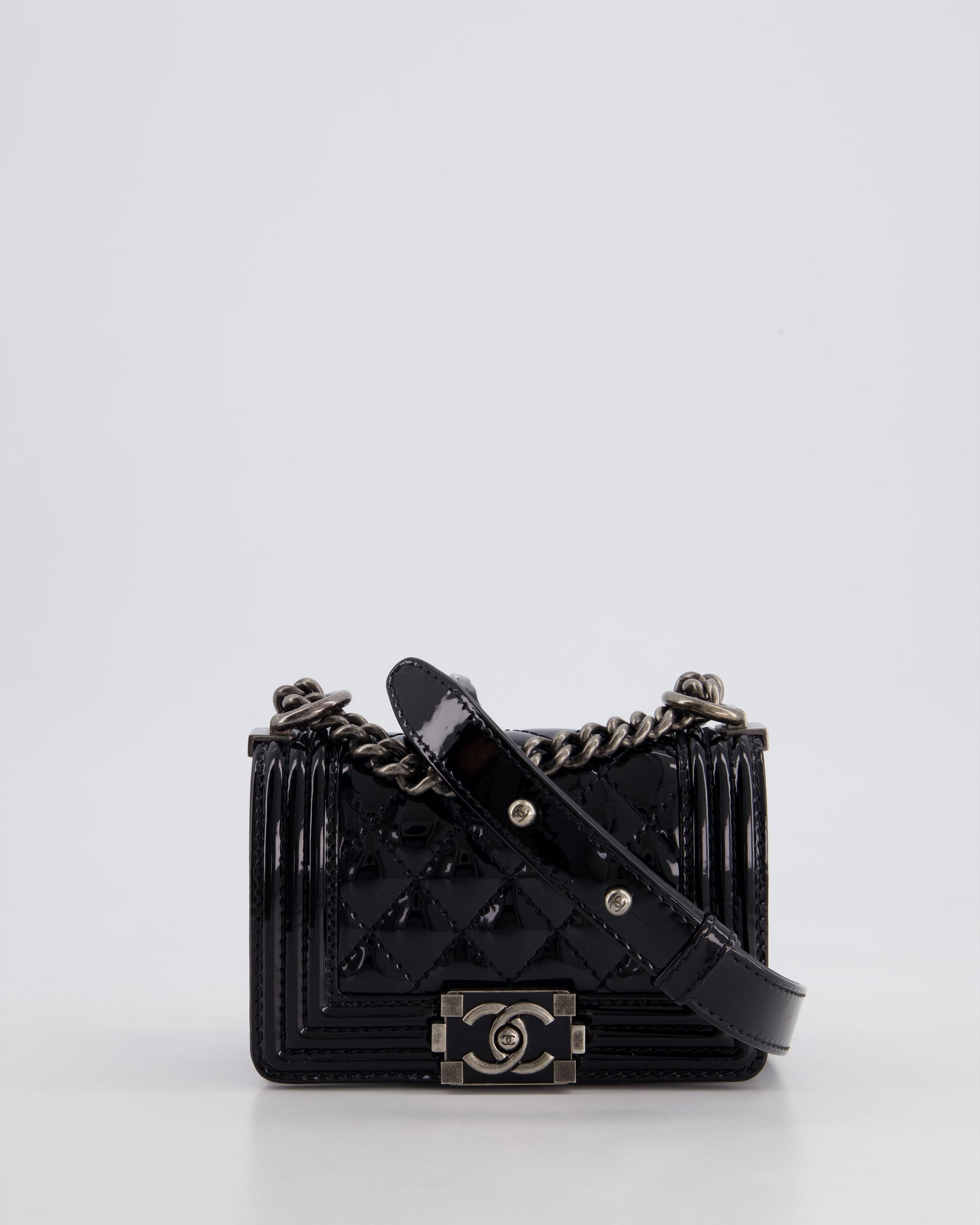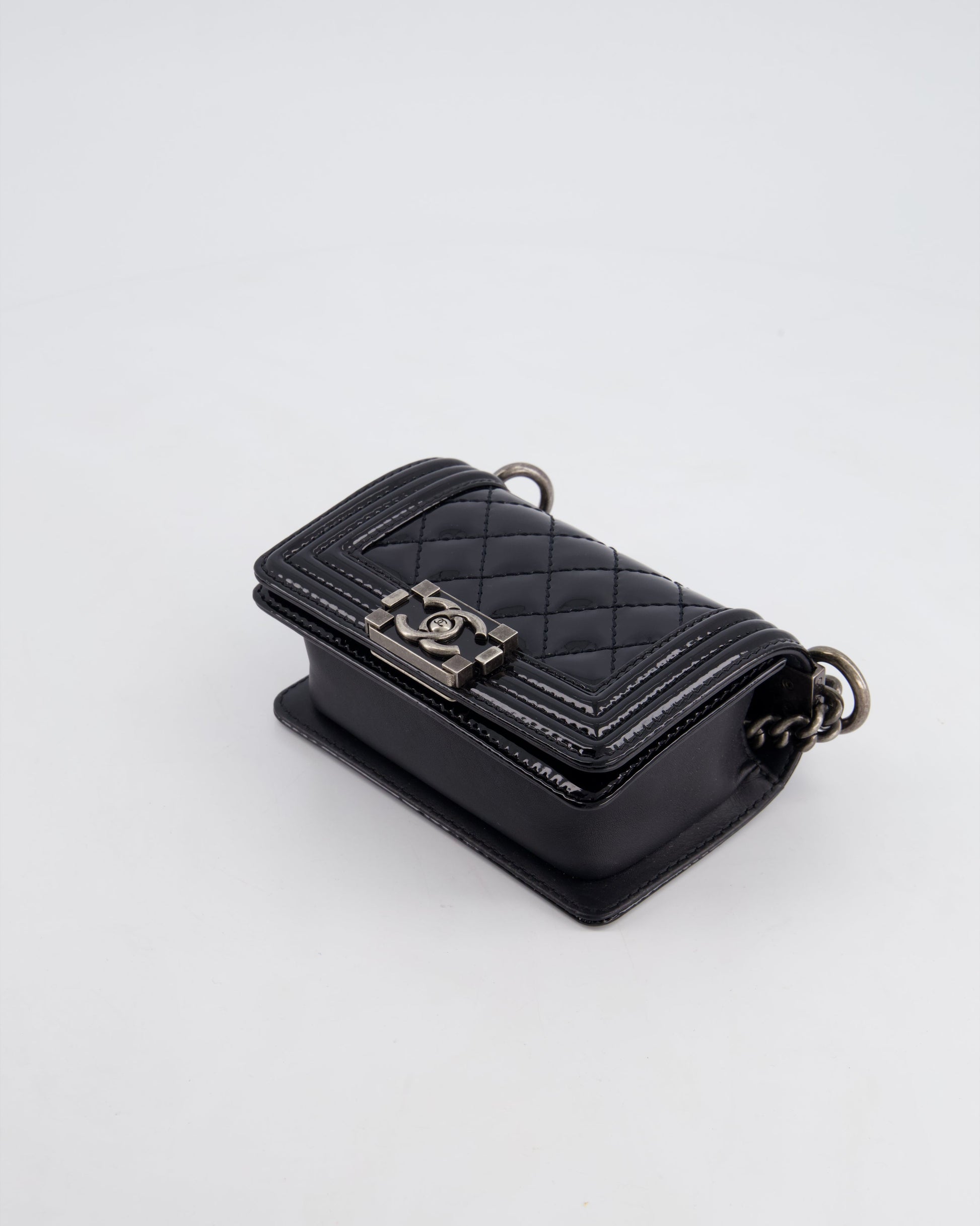 Chanel Black Patent Mini Boy Bag with Ruthenium Hardware