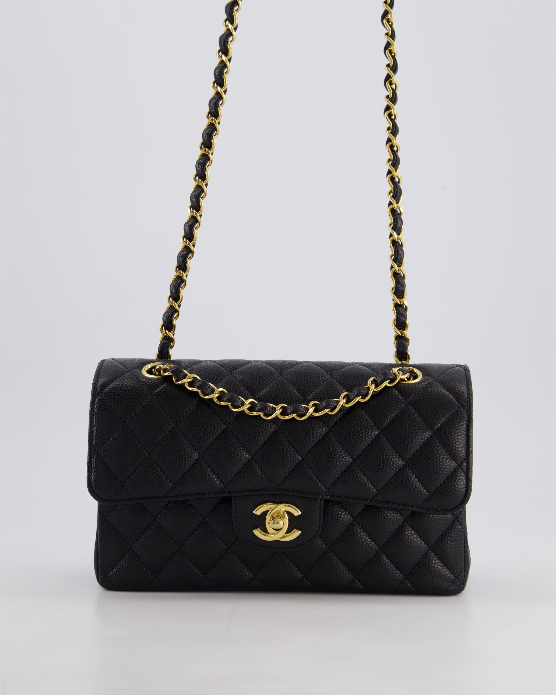 Chanel Black Small Classic Double Flap Bag in Caviar Leather with Gold Hardware