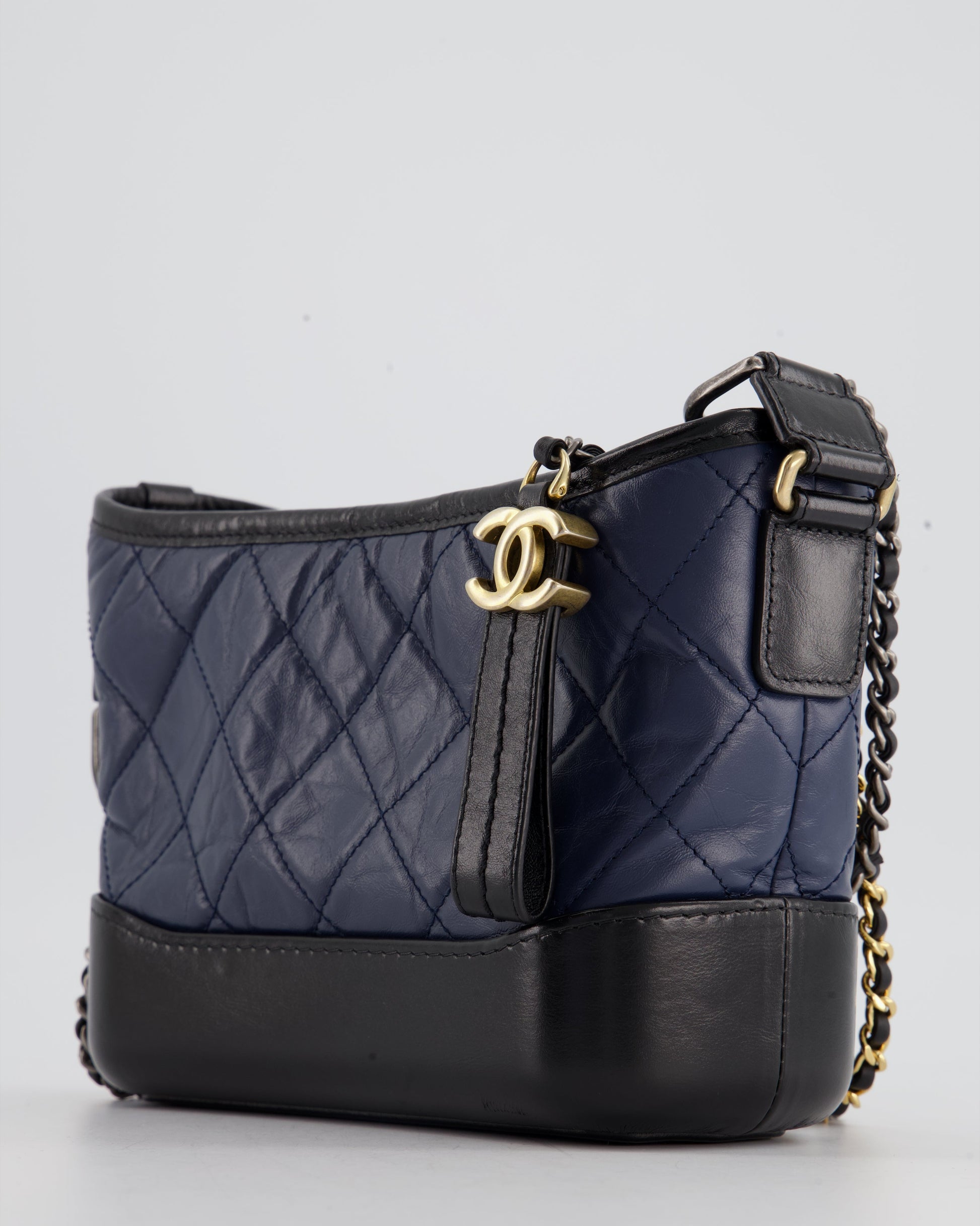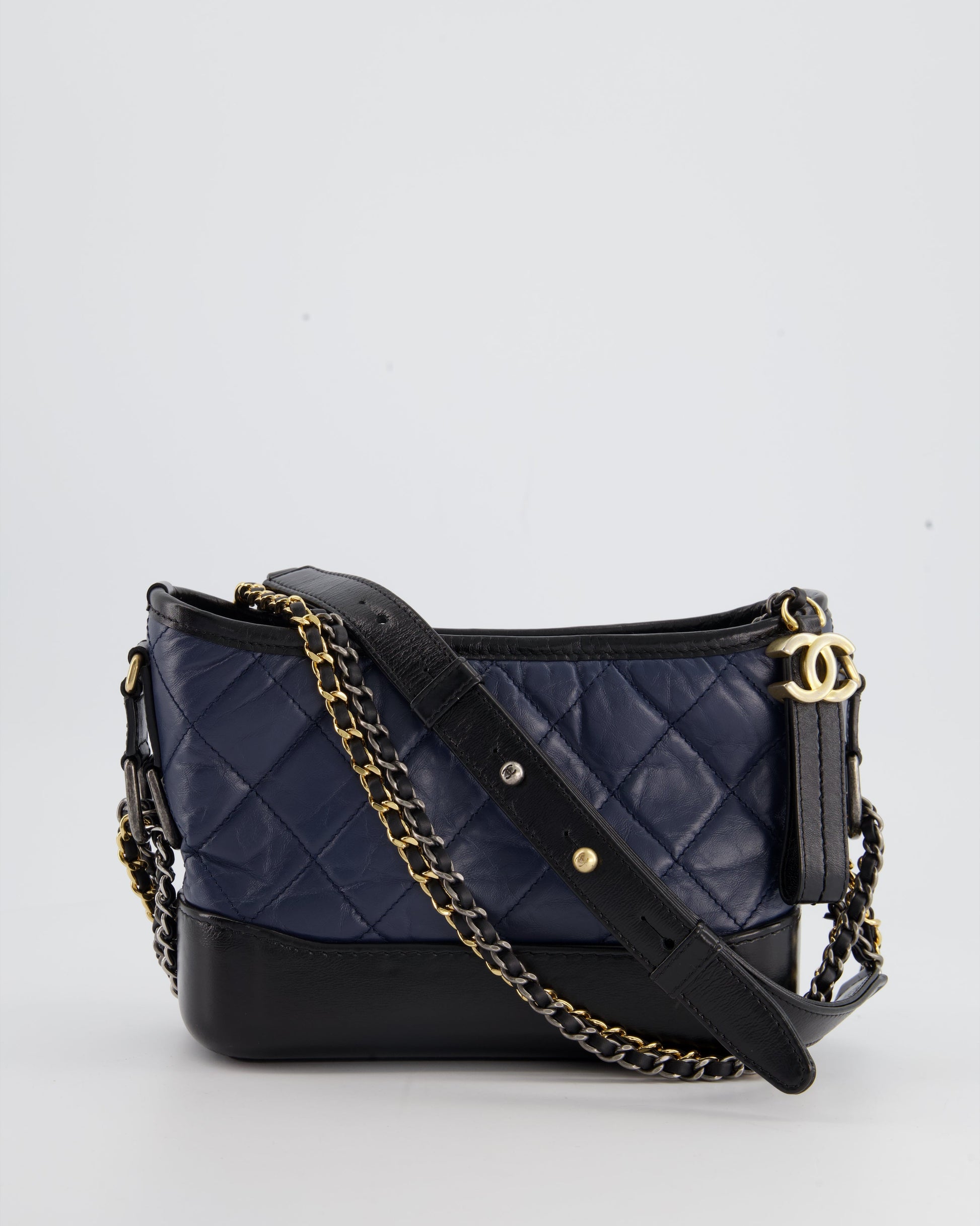Chanel Blue & Black Small Gabrielle Bag in Lambskin Leather with Mixed Hardware