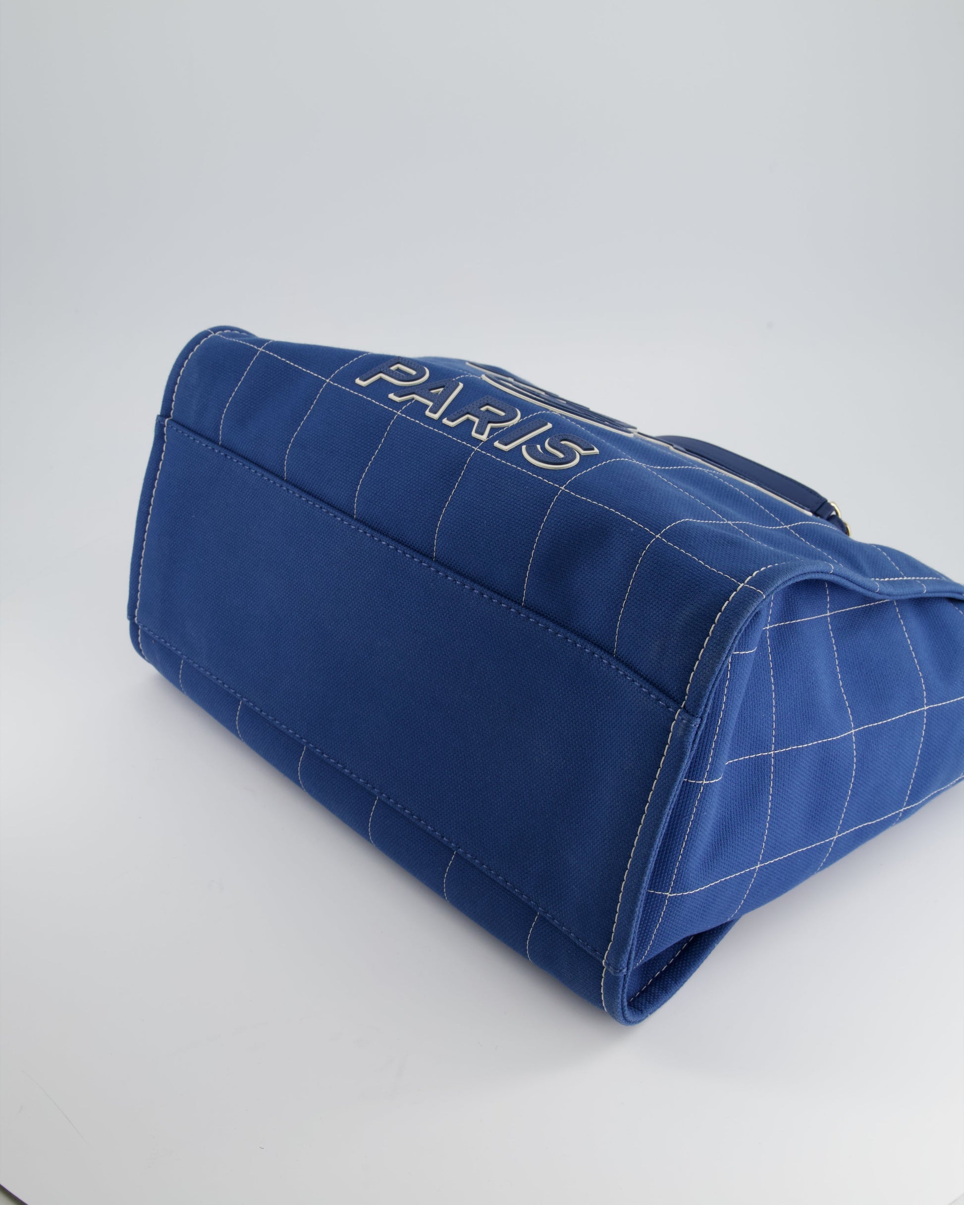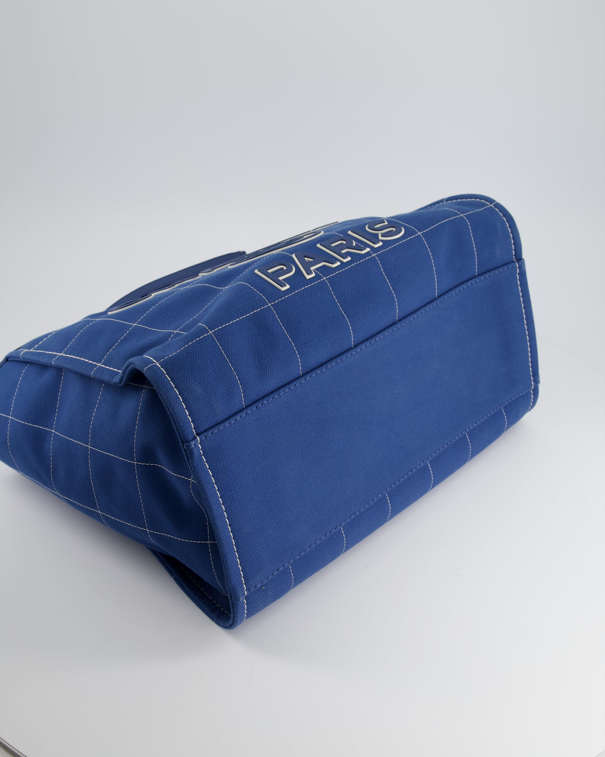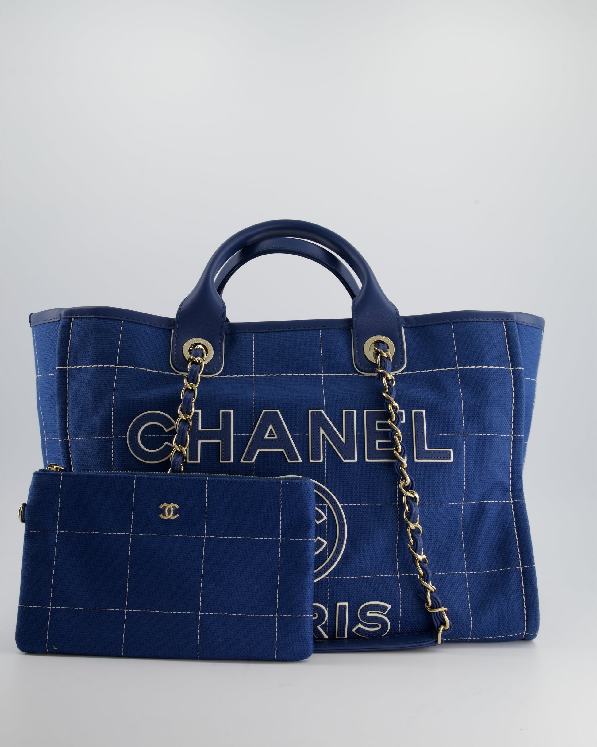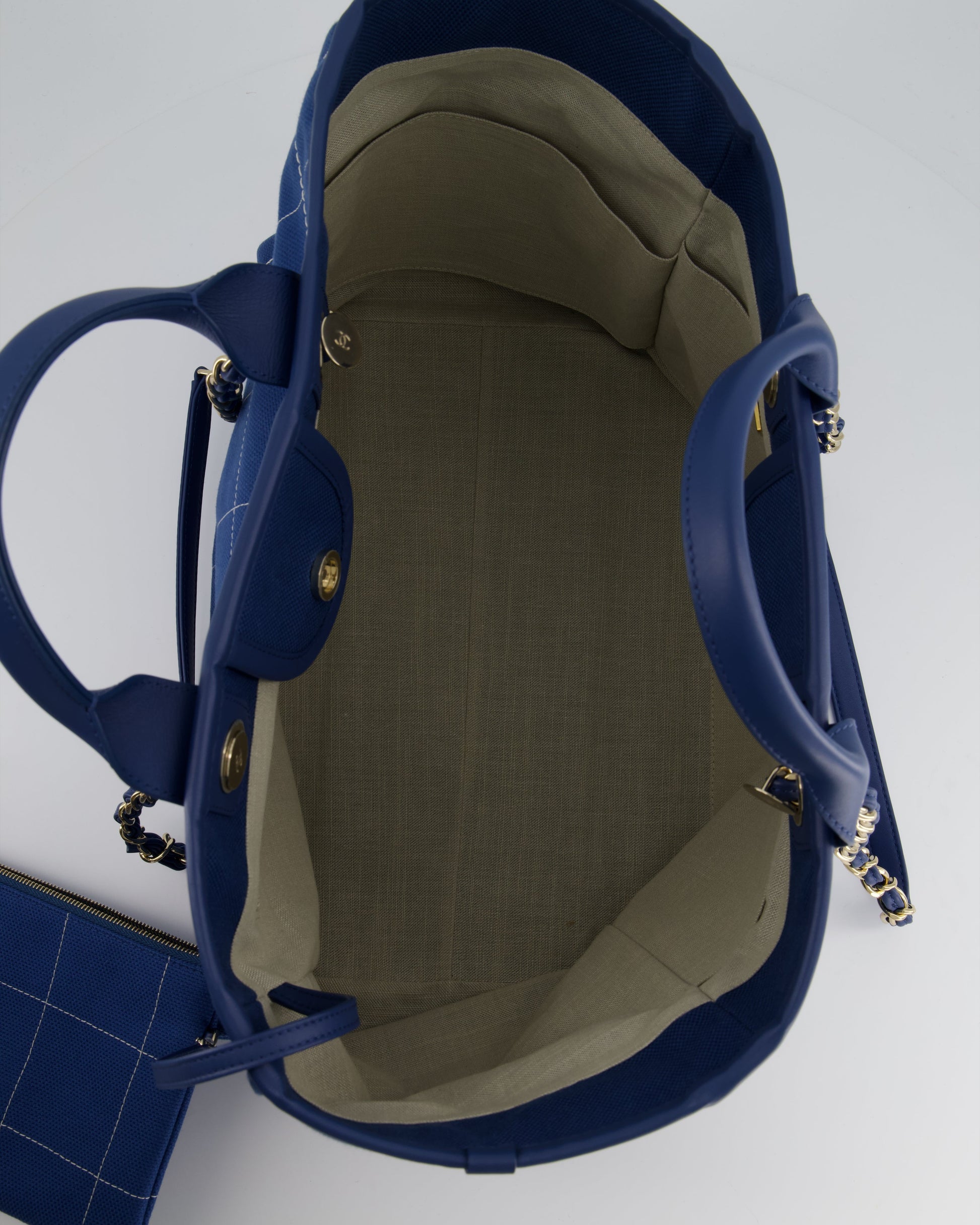 Chanel Blue Canvas Medium Deauville Tote Bag with Champagne Gold Hardware