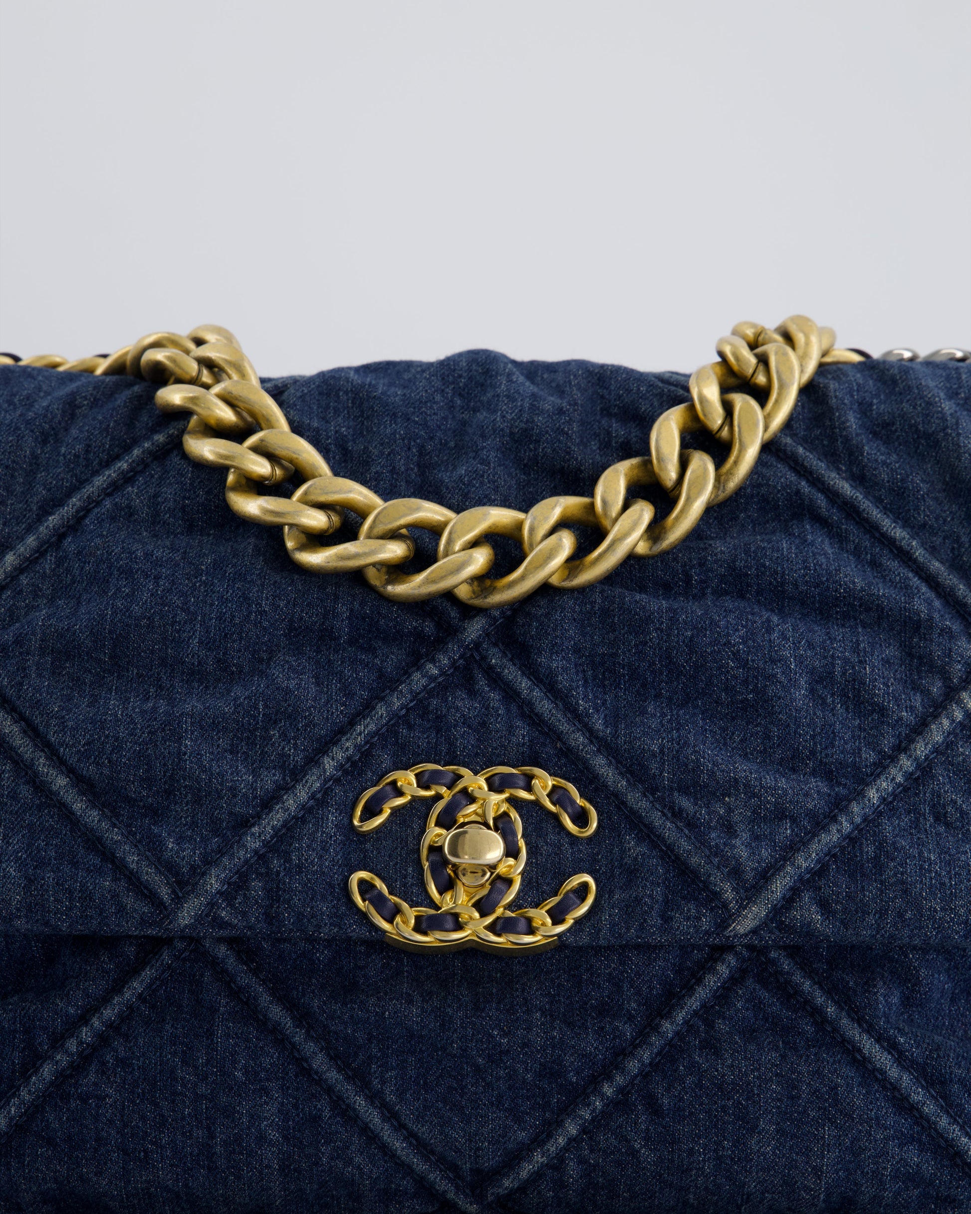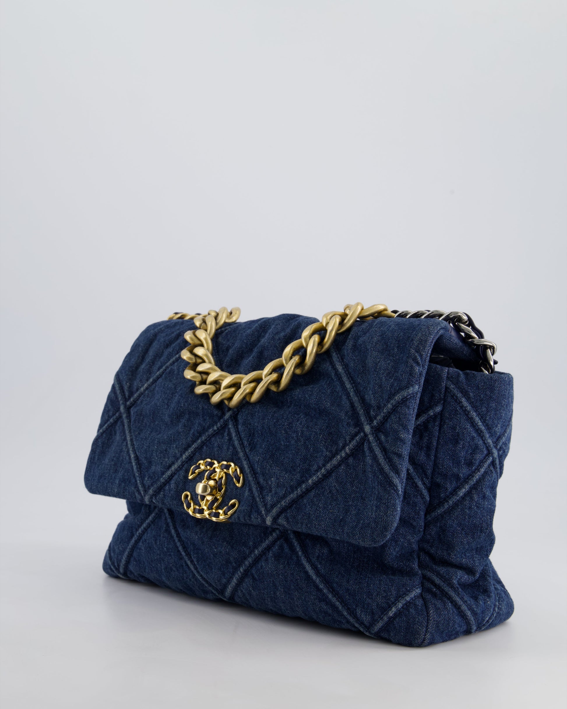 Chanel Blue Large 19 Bag in Quilted Denim with Mixed Hardware