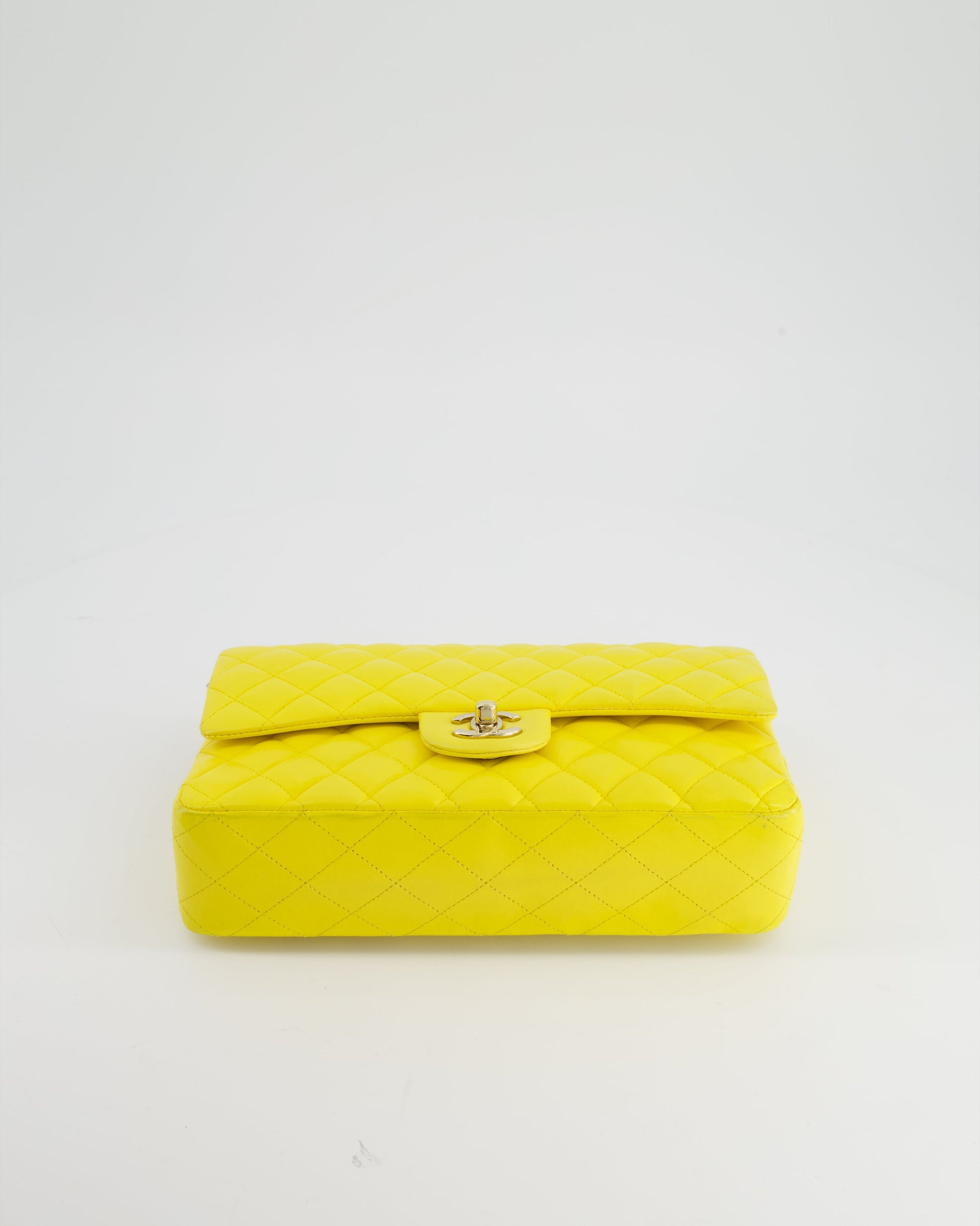 Chanel Canary Yellow Medium Classic Double Flap Bag in Lambskin Leather with Gold Hardware