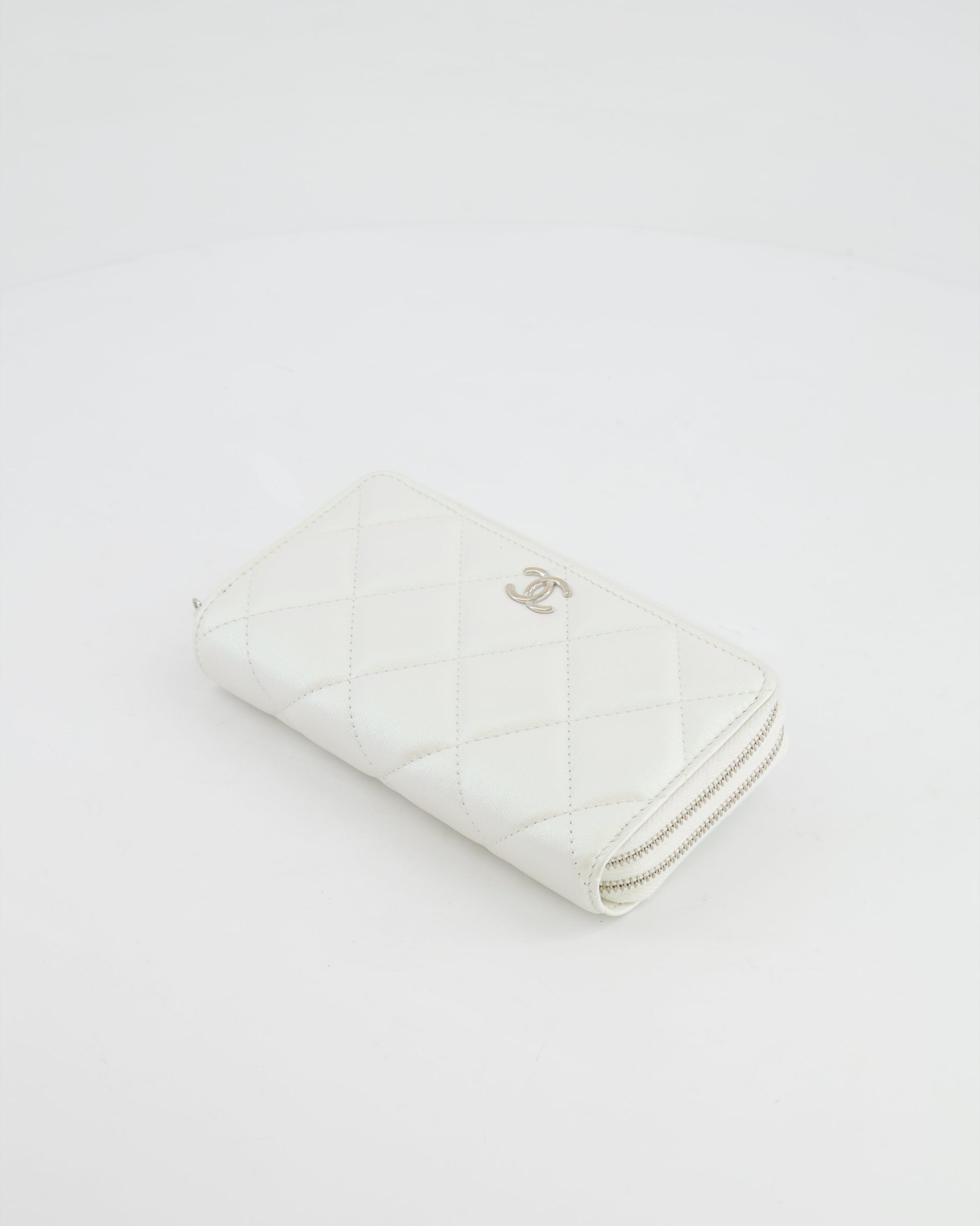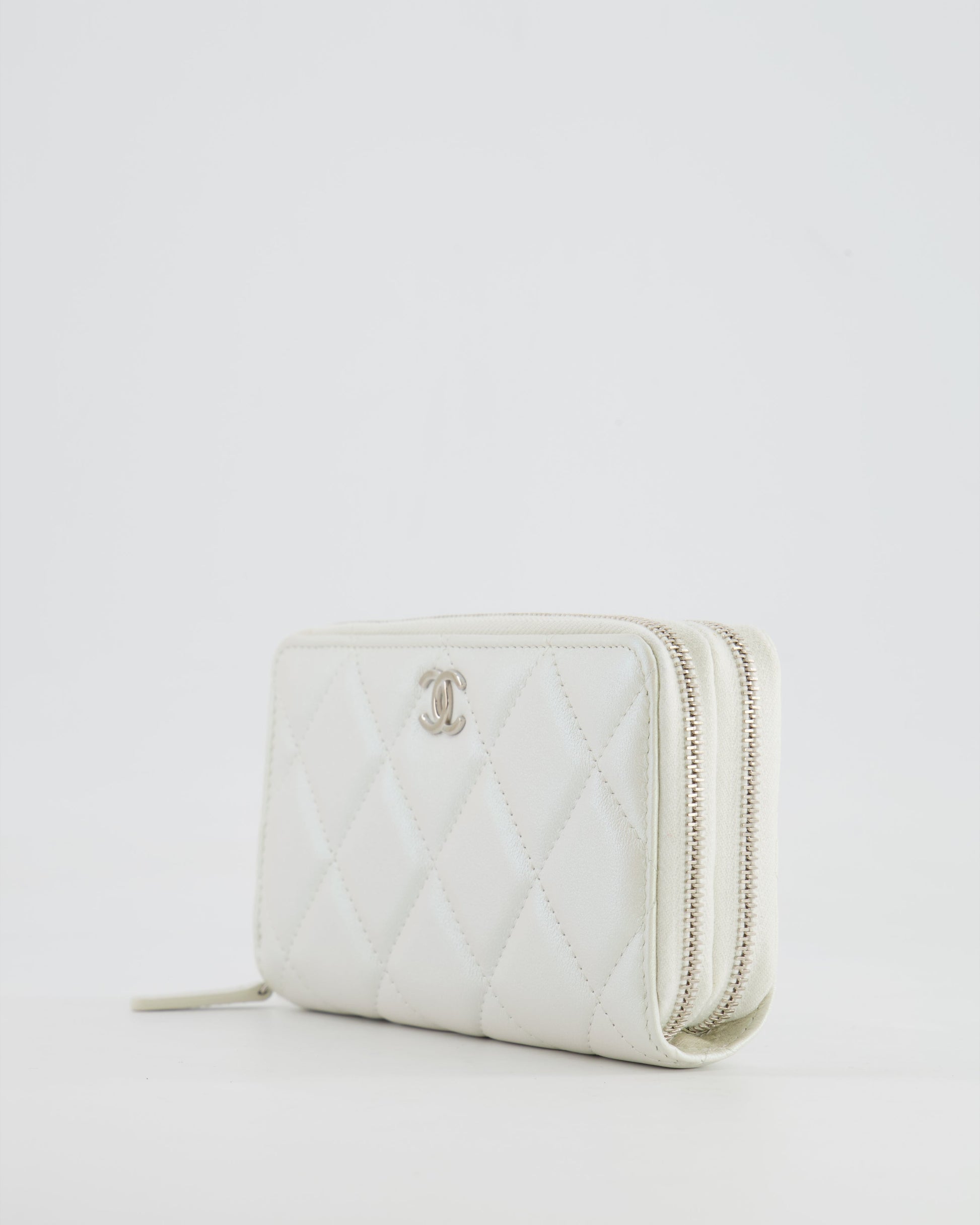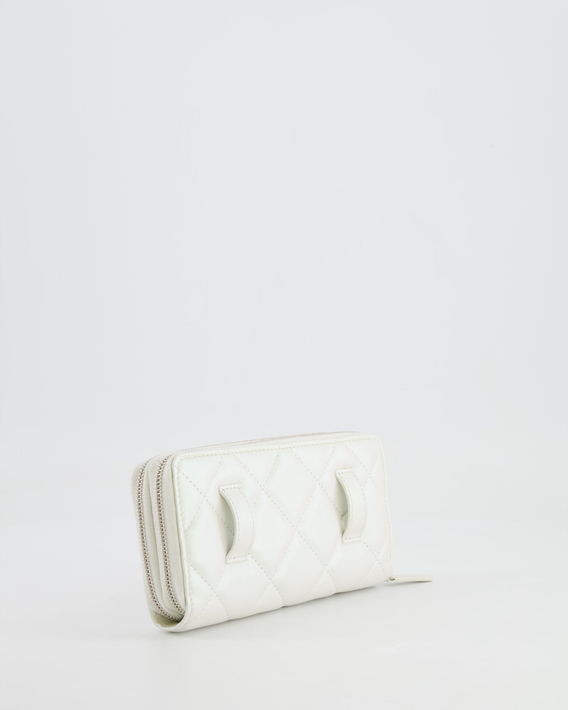 *HOT* Chanel Coco Neige White Pearlescent Lambskin Belt Bag with Silver Hardware