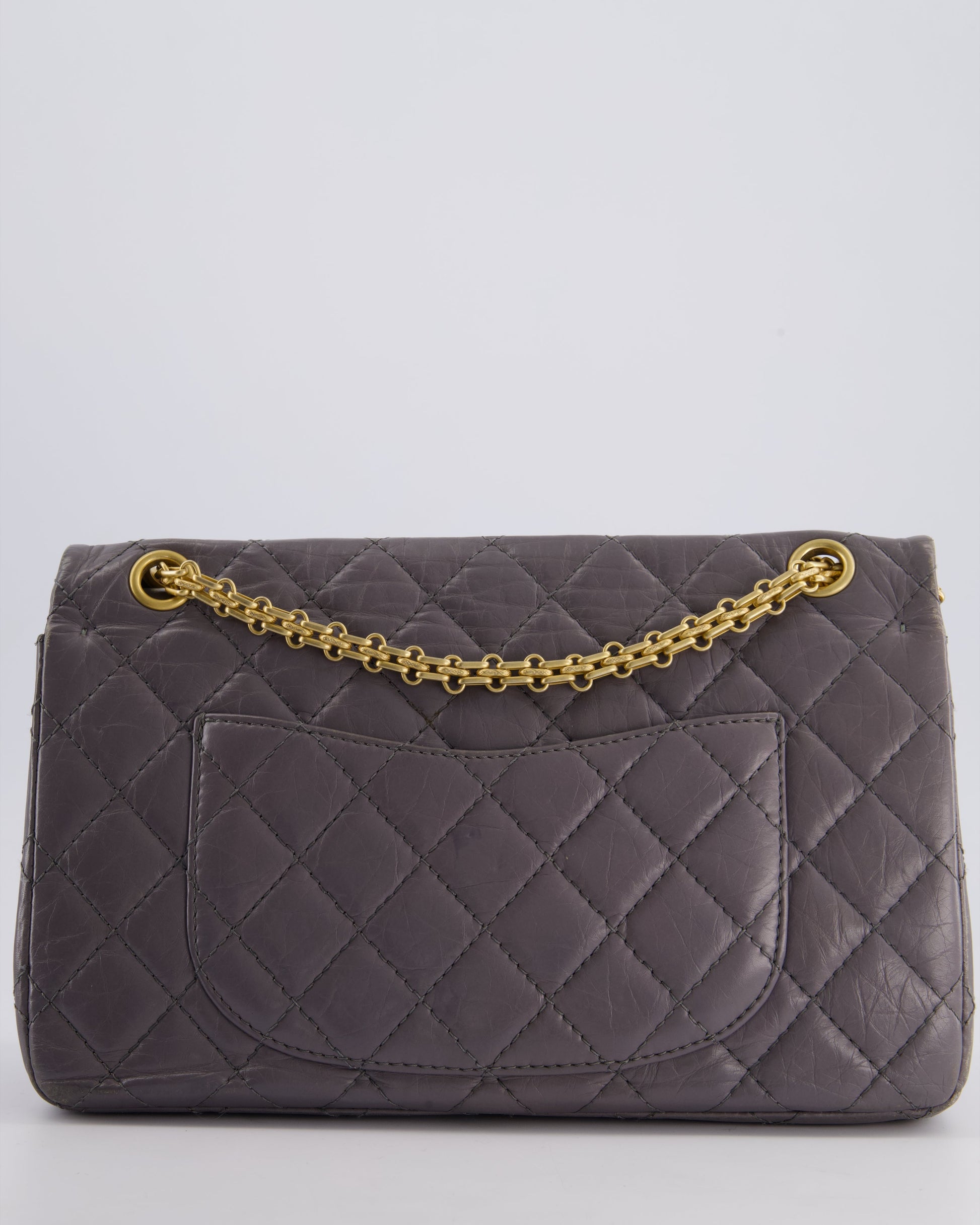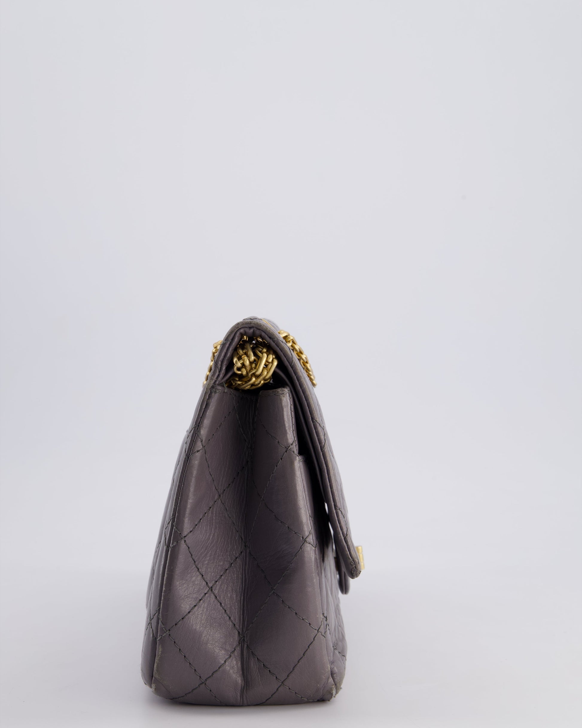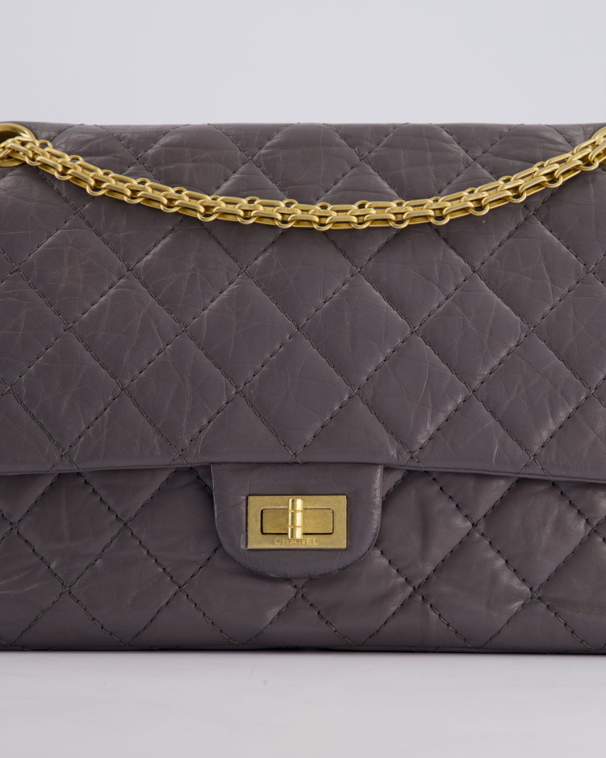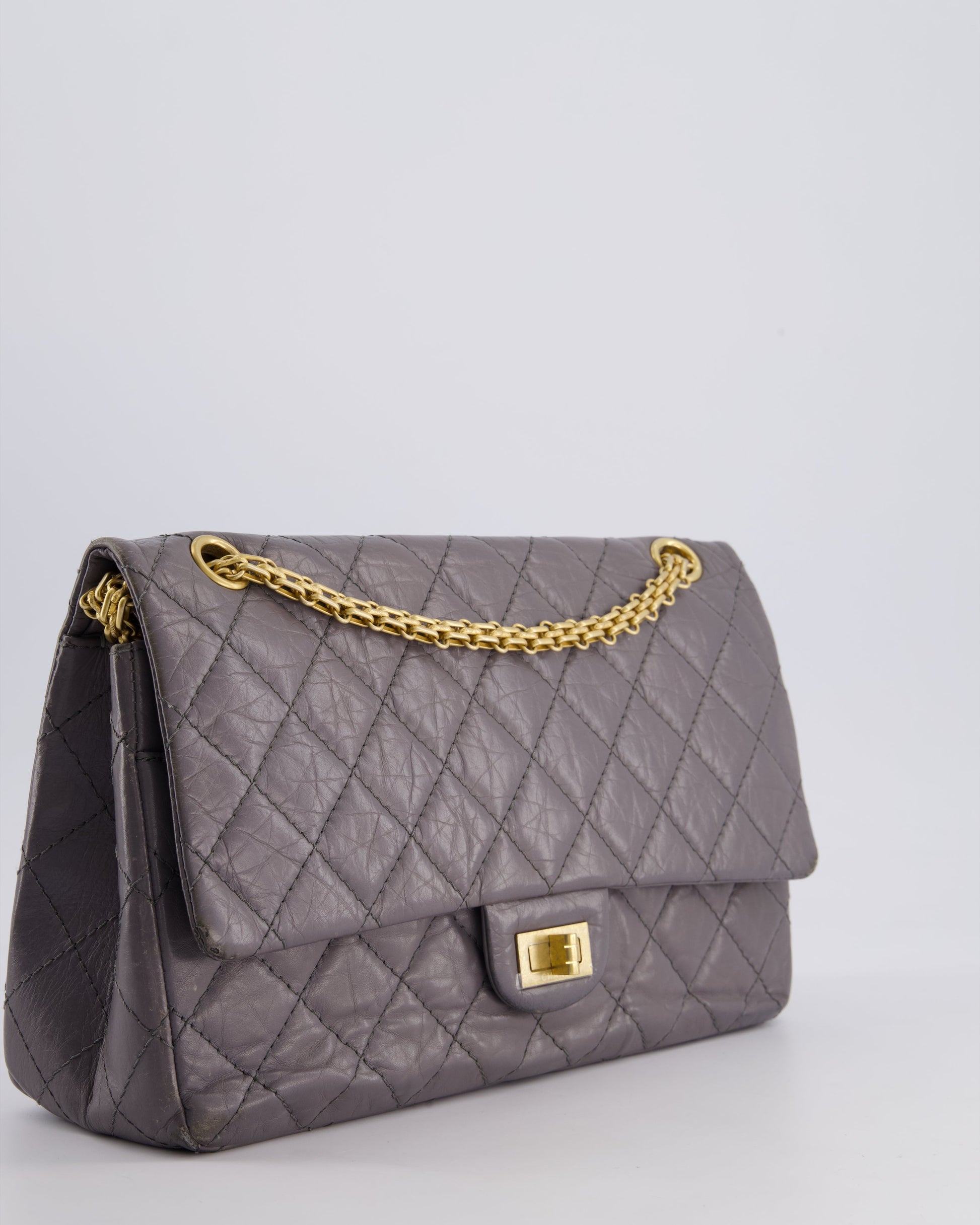 Chanel Grey Medium Reissue 2.55 Double Flap Bag in Quilted Crumpled Calfskin with Aged Gold Hardware