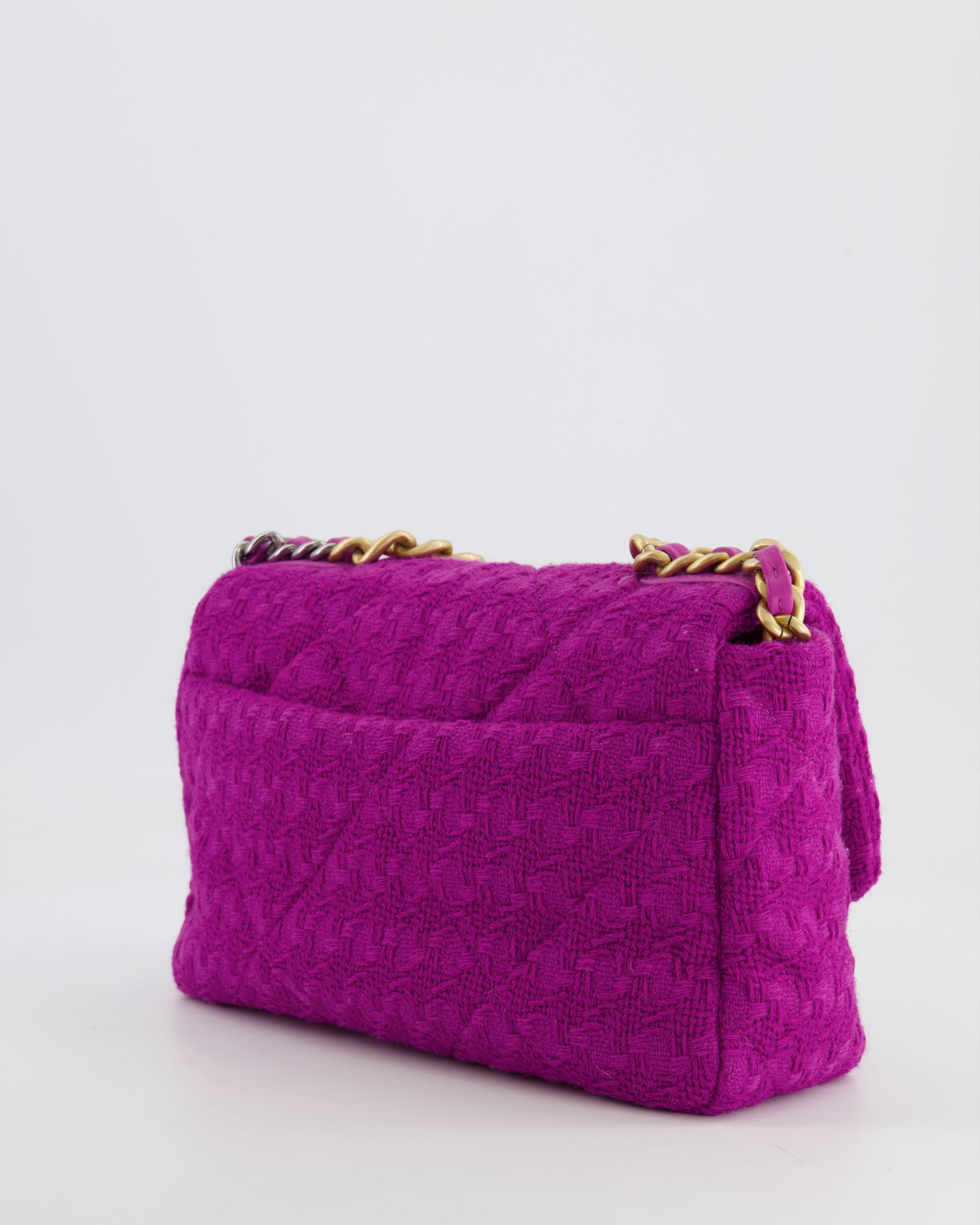 Chanel Magenta Tweed Medium 19 Bag with Mixed Hardware