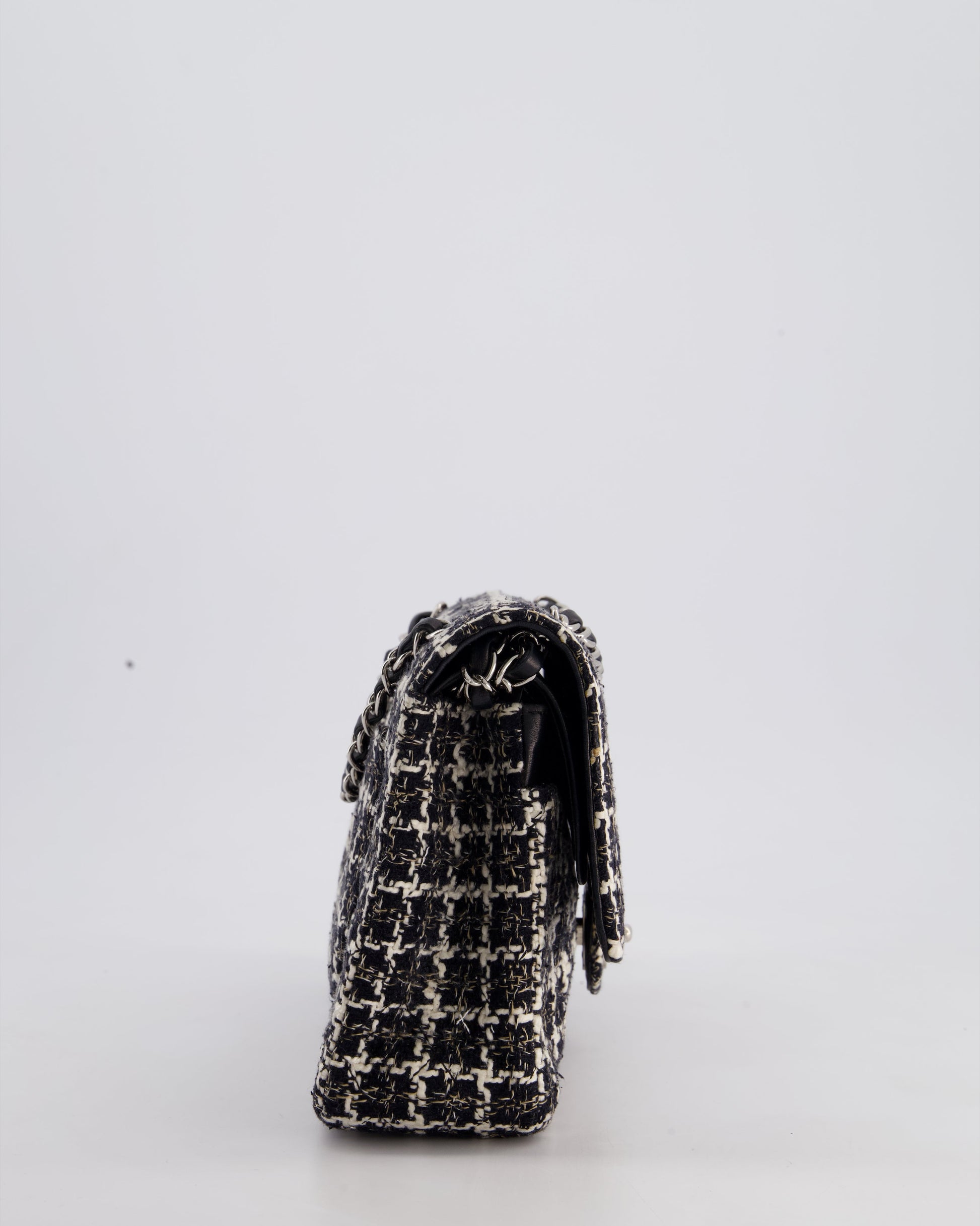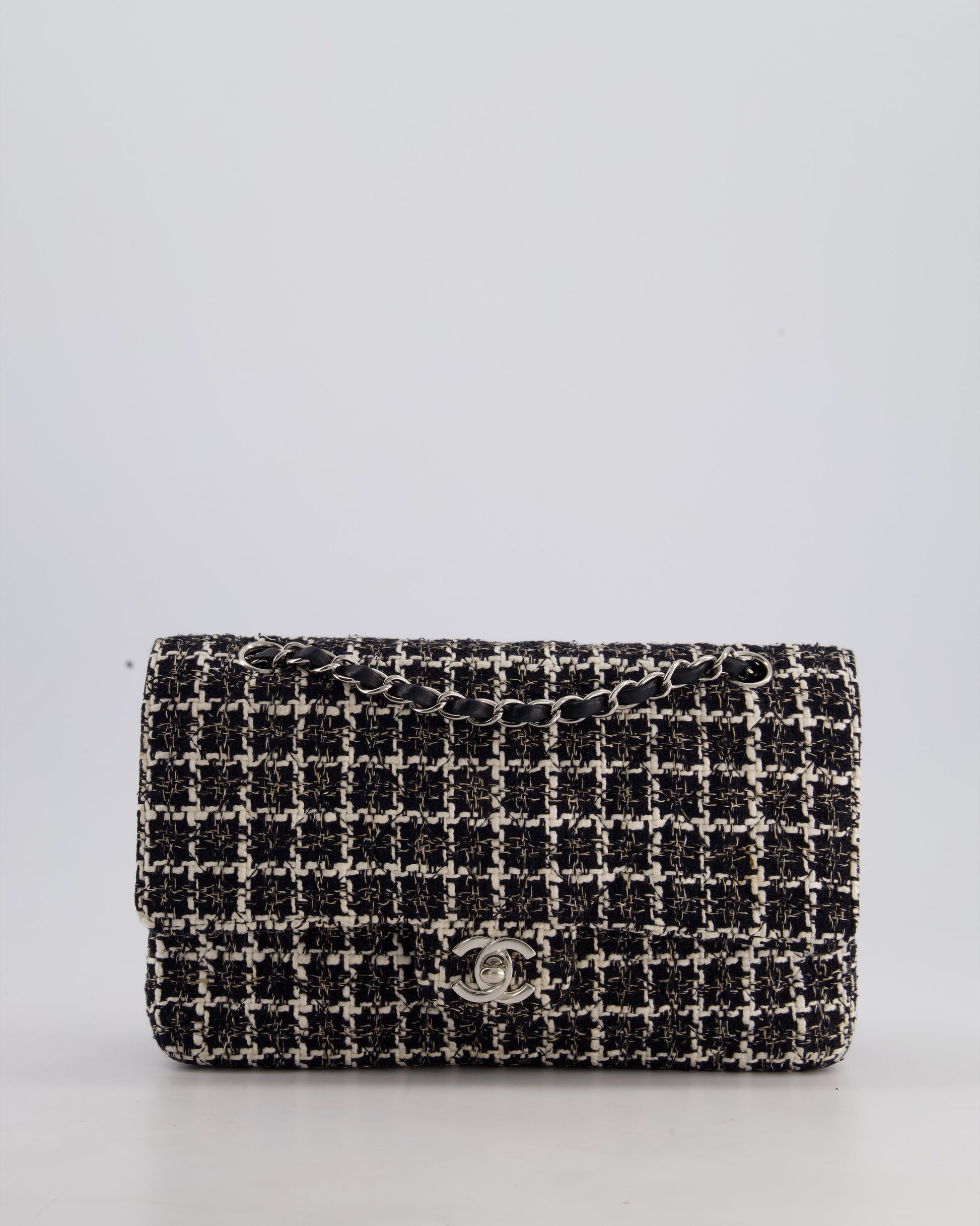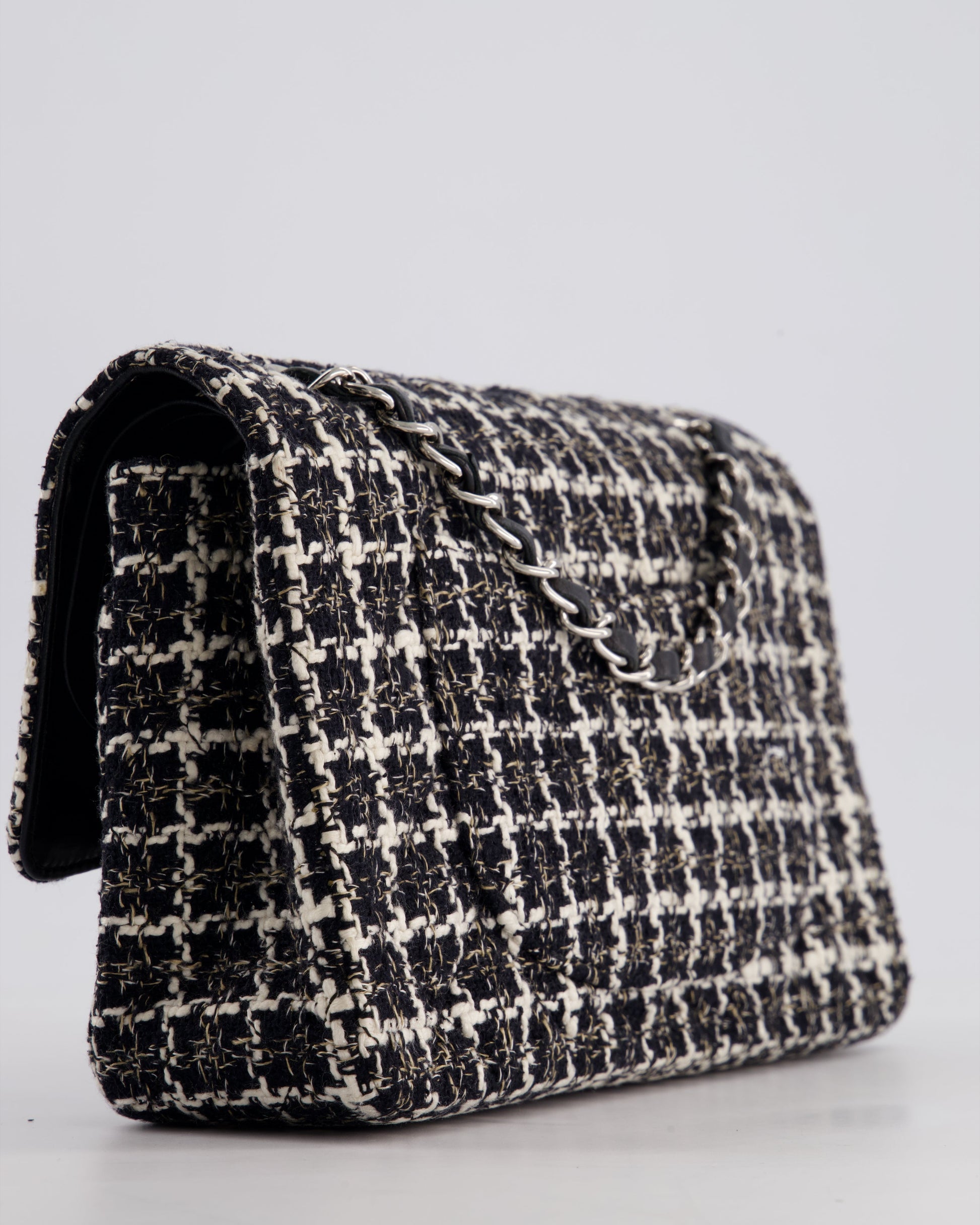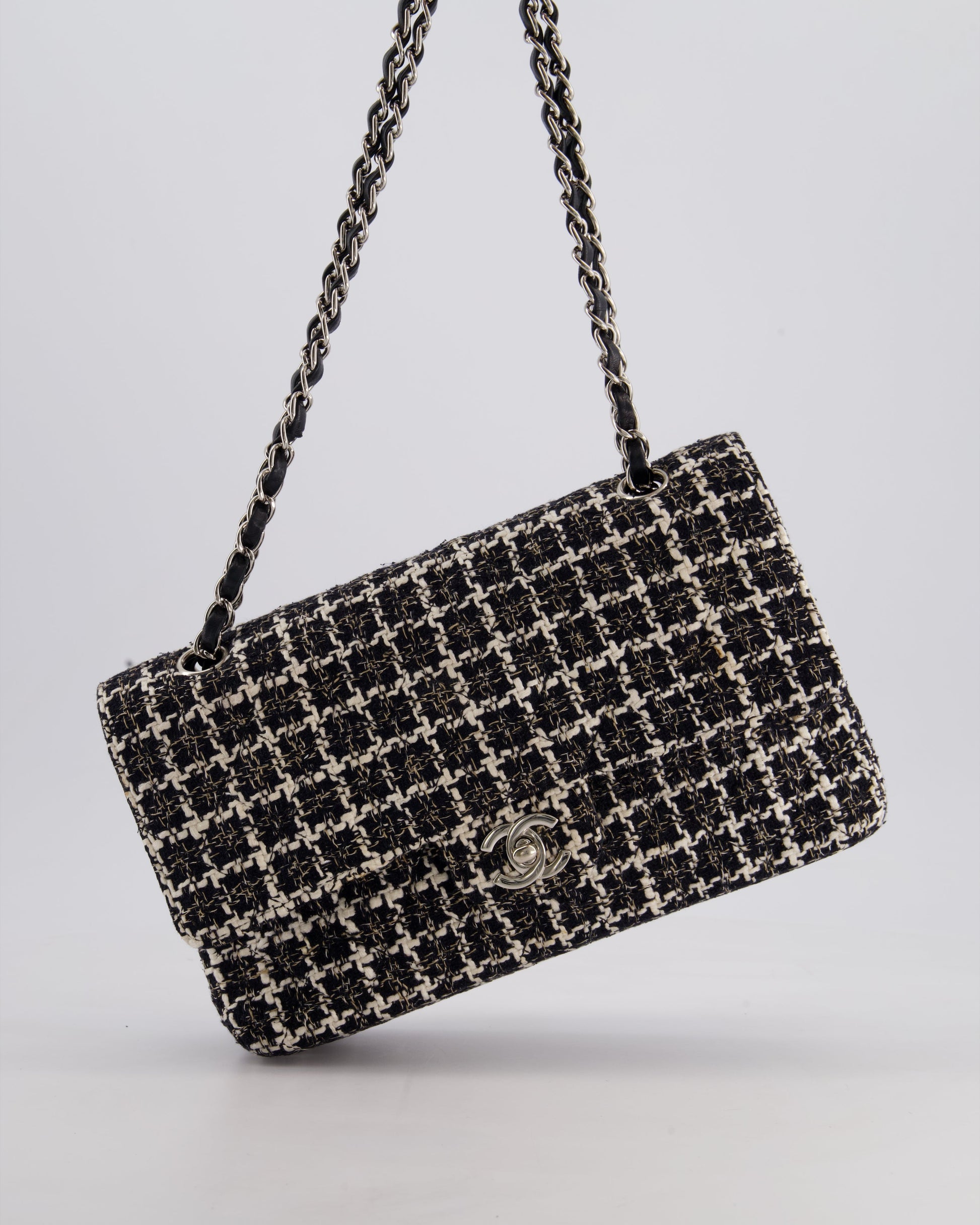 Chanel Medium Classic Double Flap Bag in Black and White Tweed with Silver Hardware