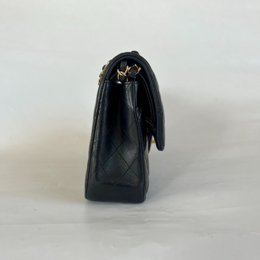 Chanel classic medium lambskin double flap bag with gold-tone hardware. Bag comes with dust bag.