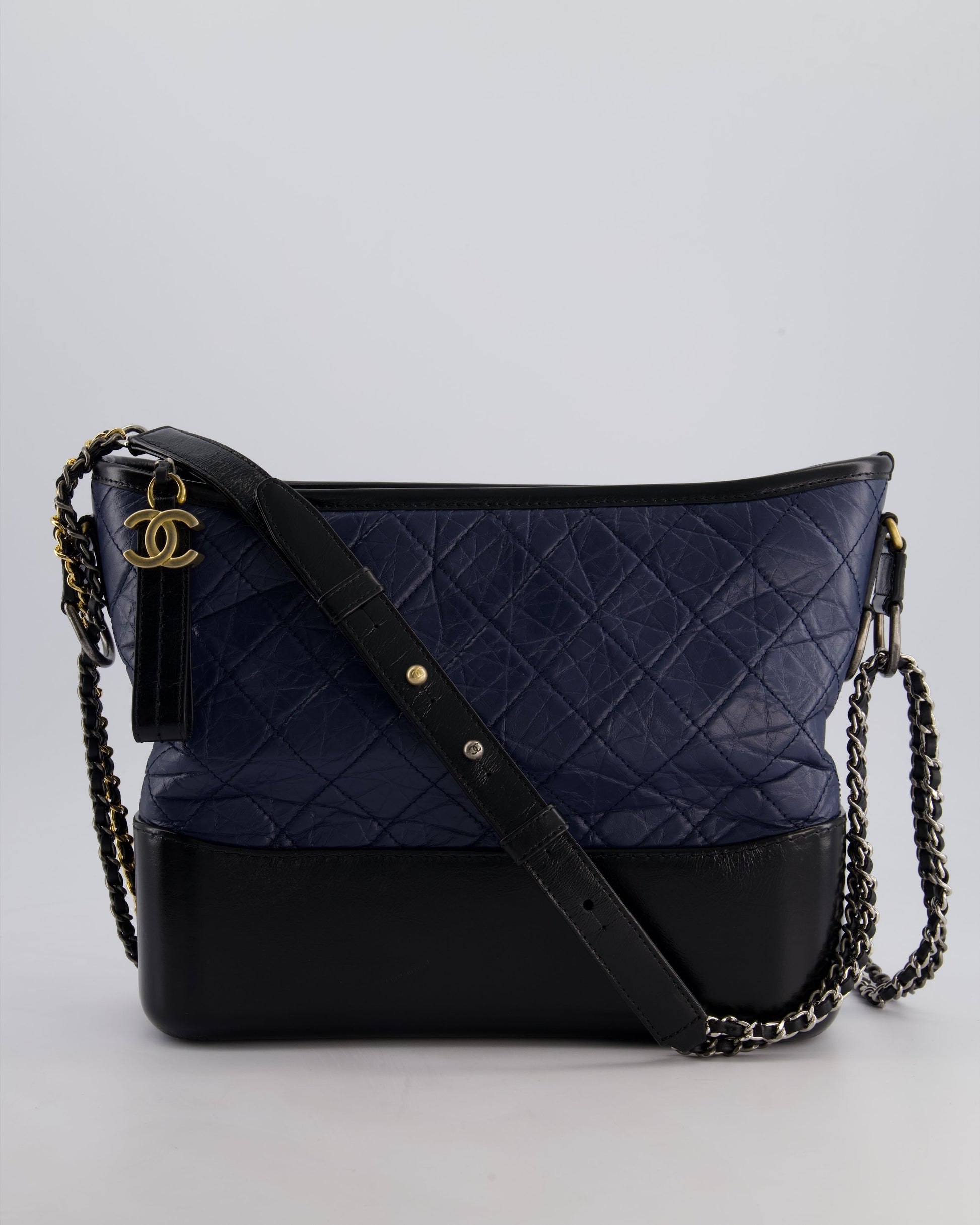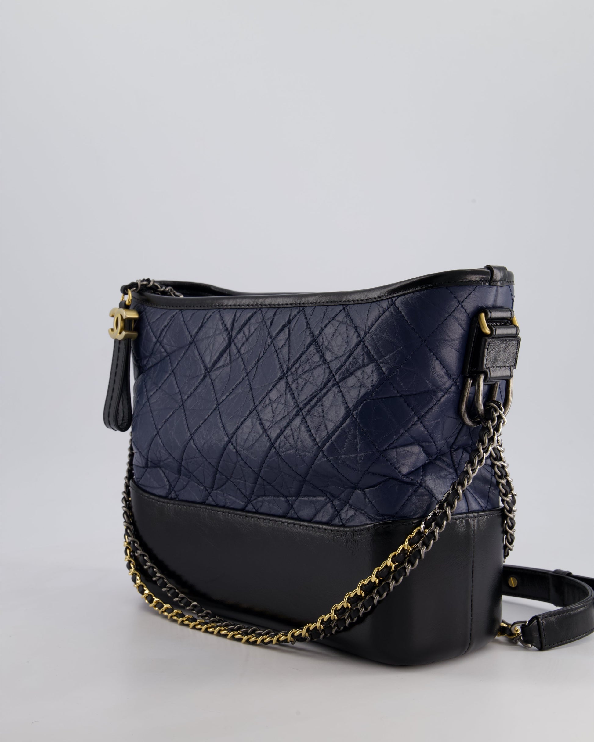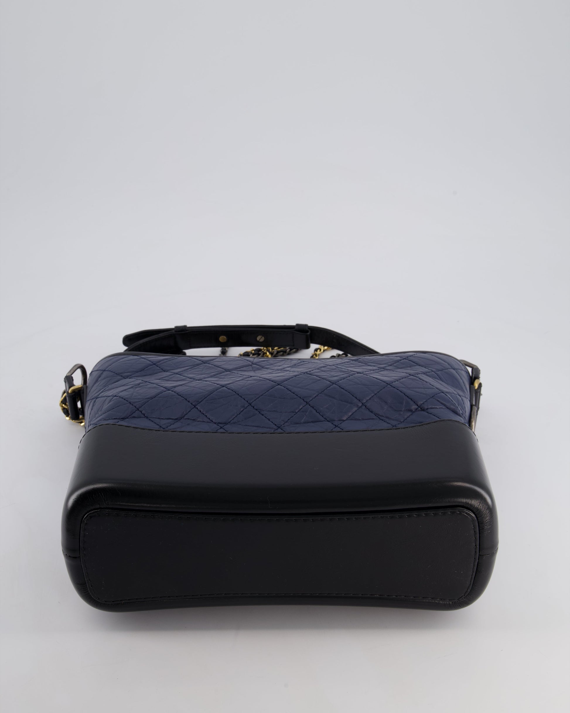 Chanel Navy & Black Medium Gabrielle Bag in Aged Calfskin Leather with Mixed Hardware