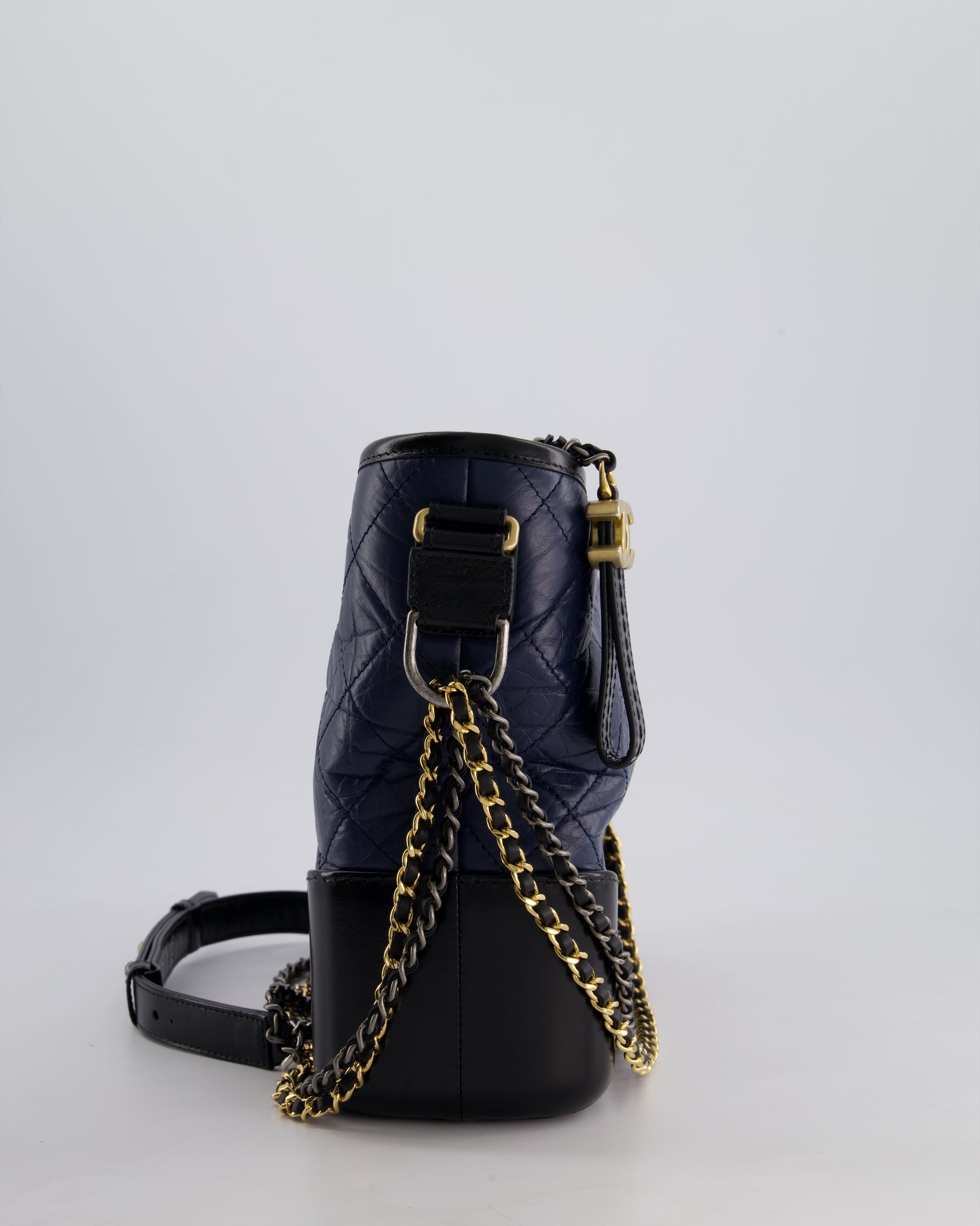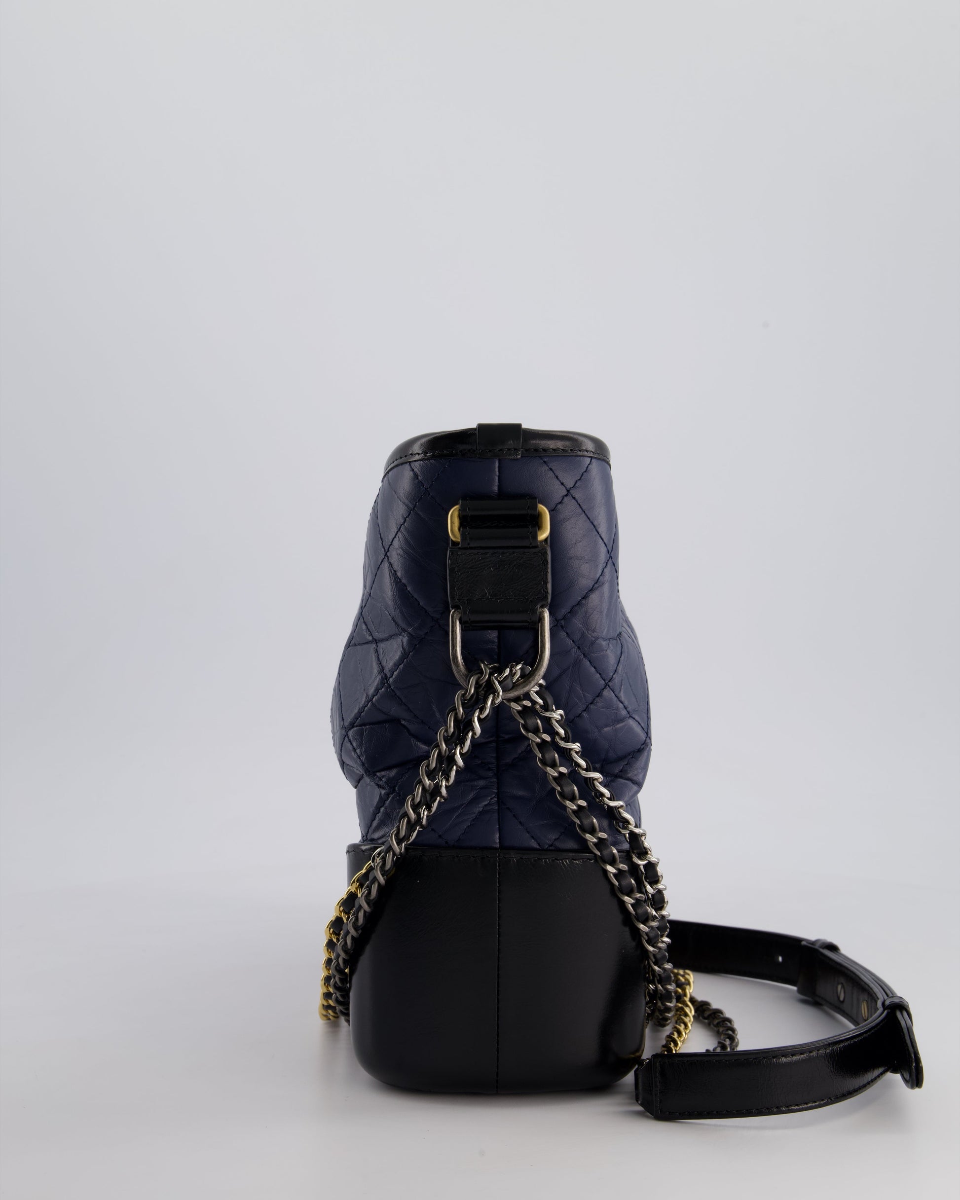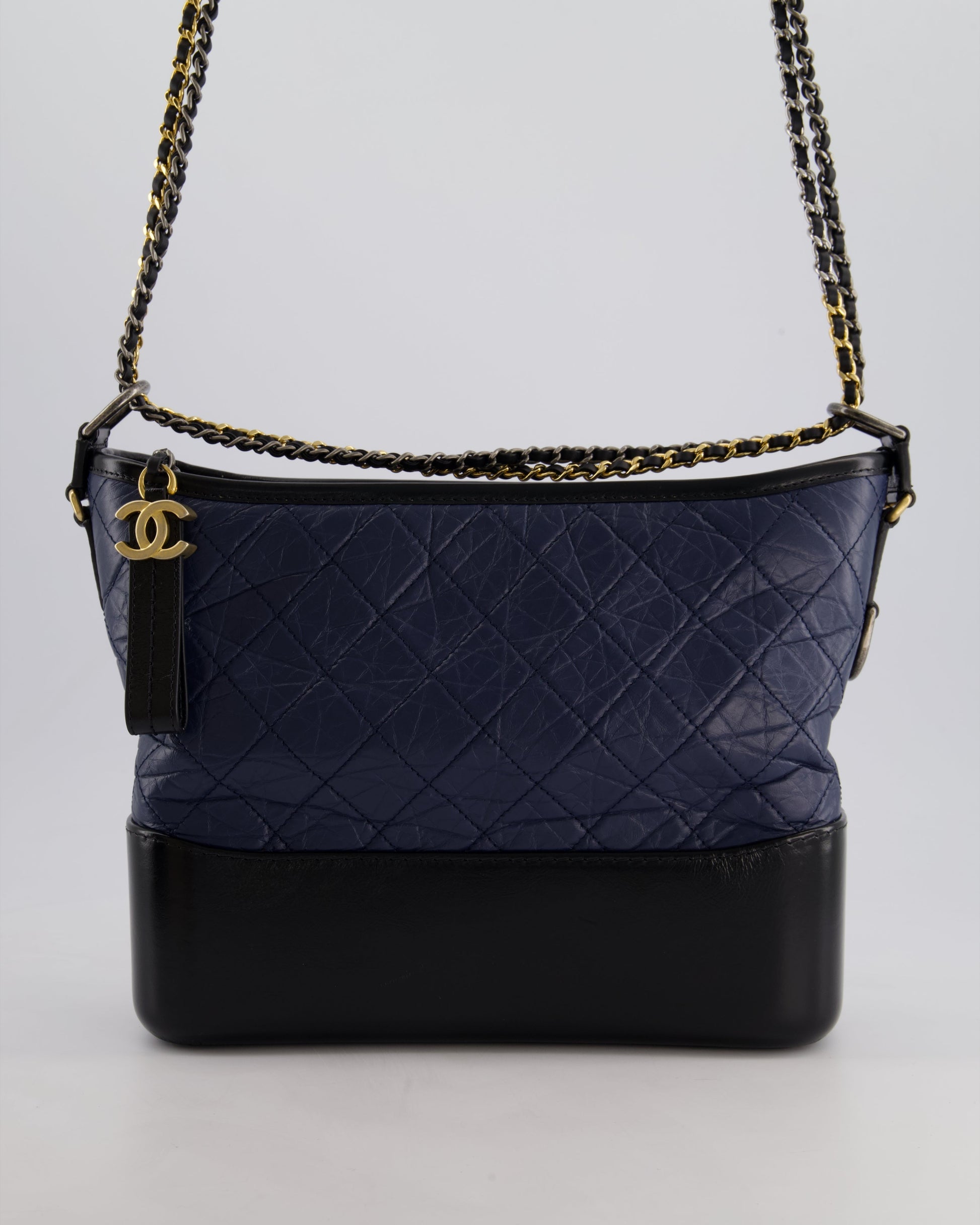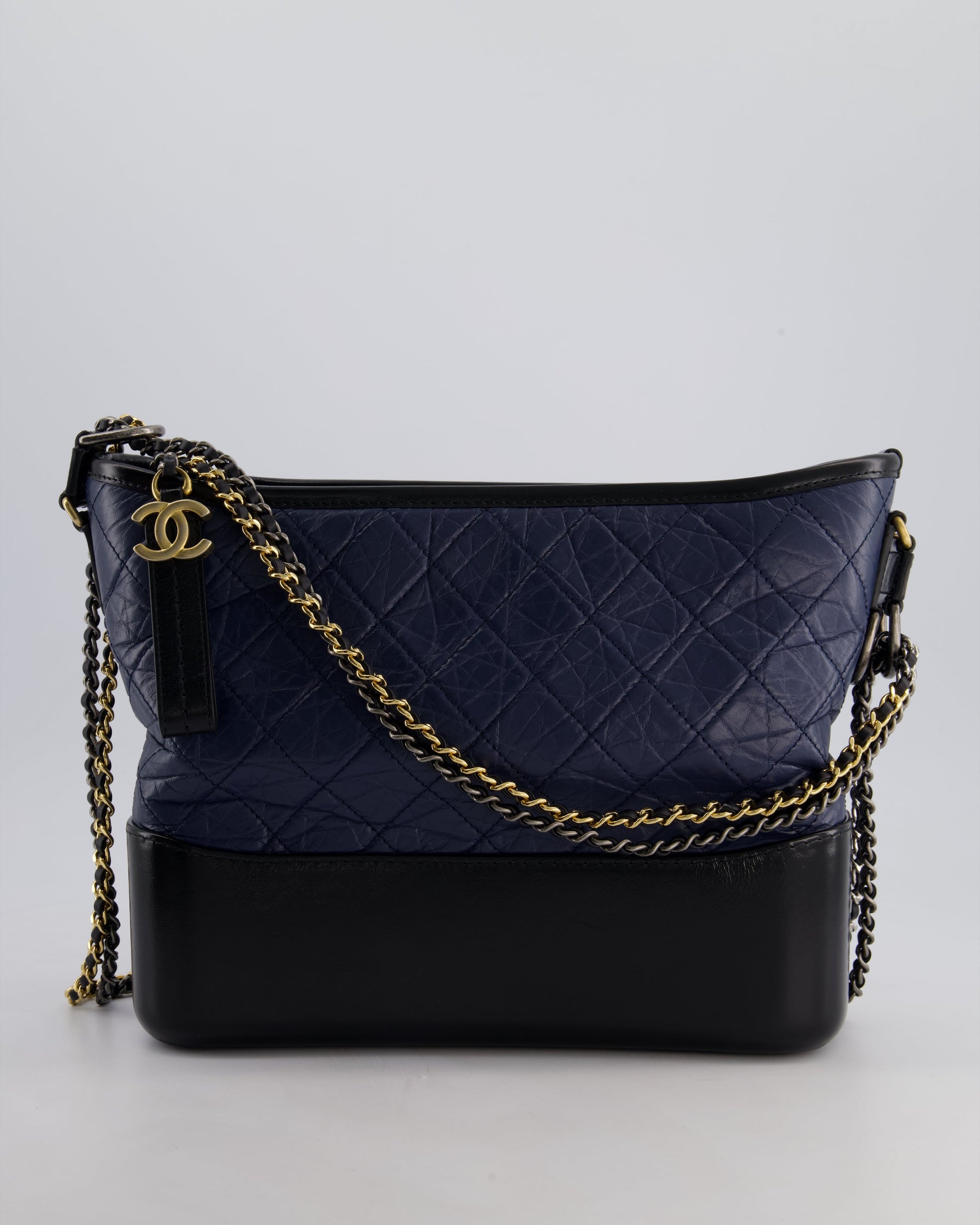 Chanel Navy & Black Medium Gabrielle Bag in Aged Calfskin Leather with Mixed Hardware