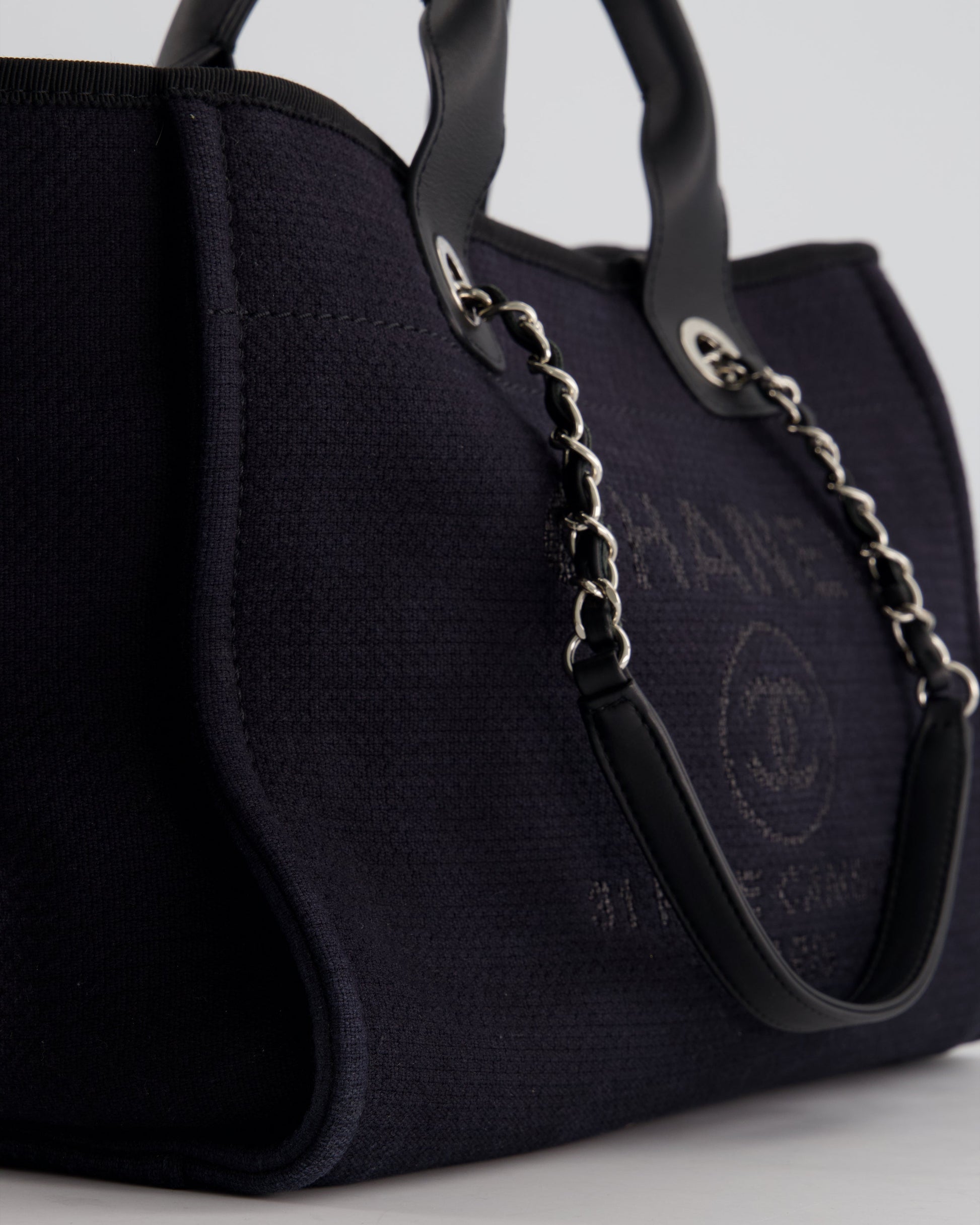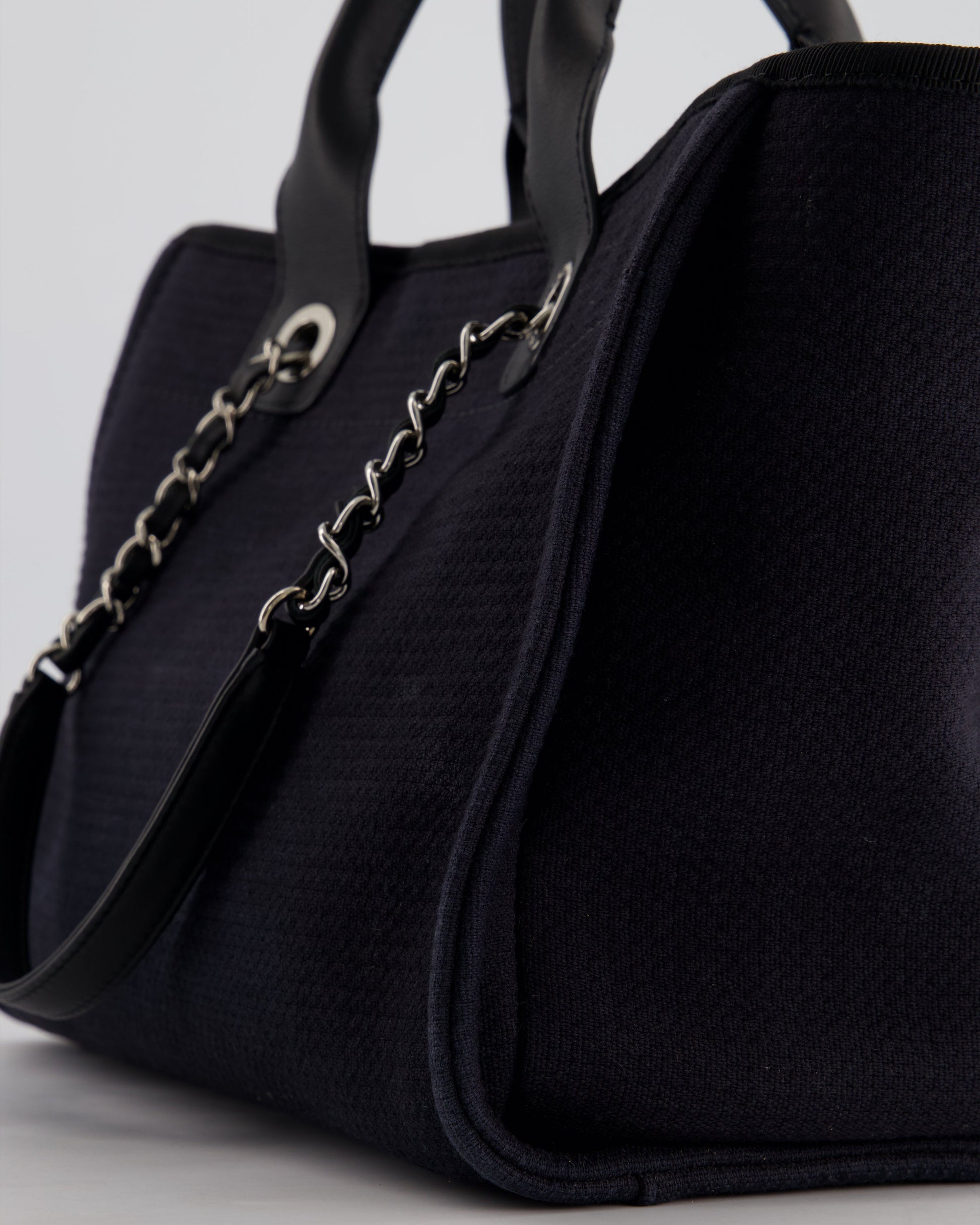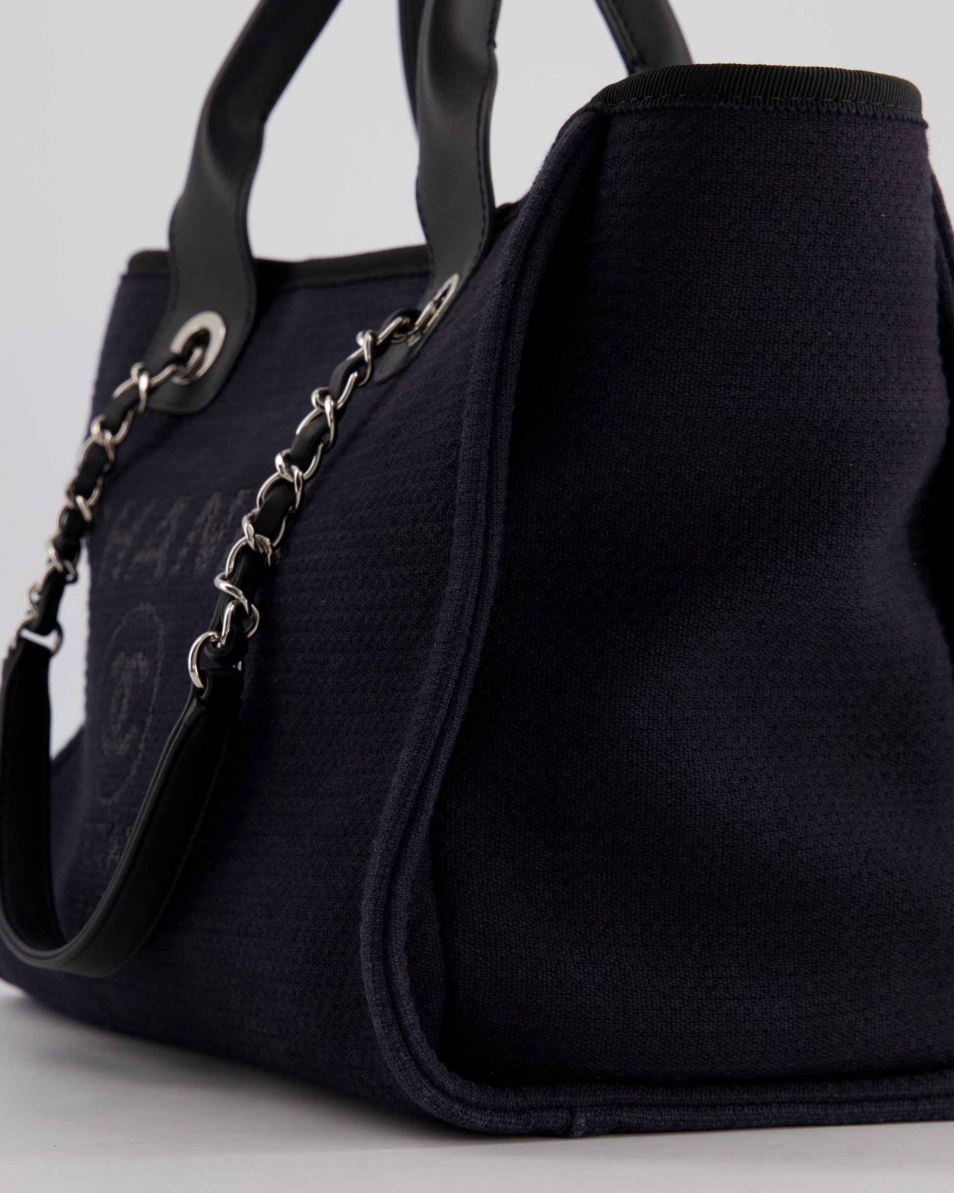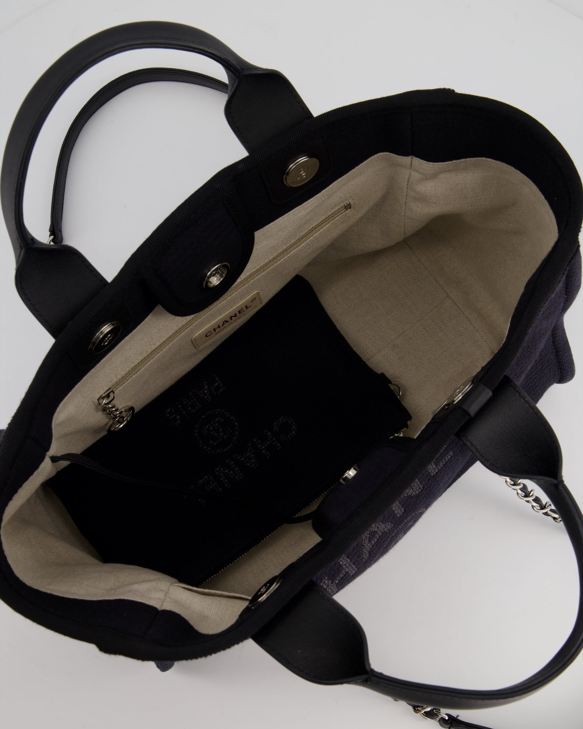 Chanel Navy & Black Small Deauville Tote Bag with Silver Hardware