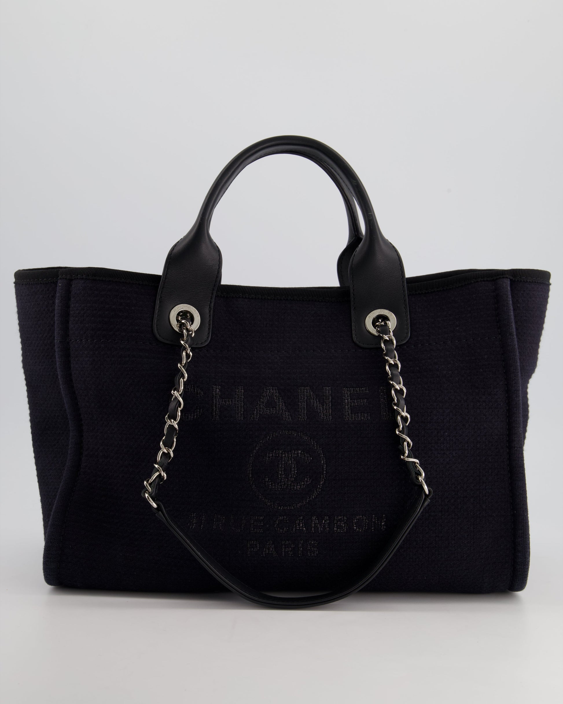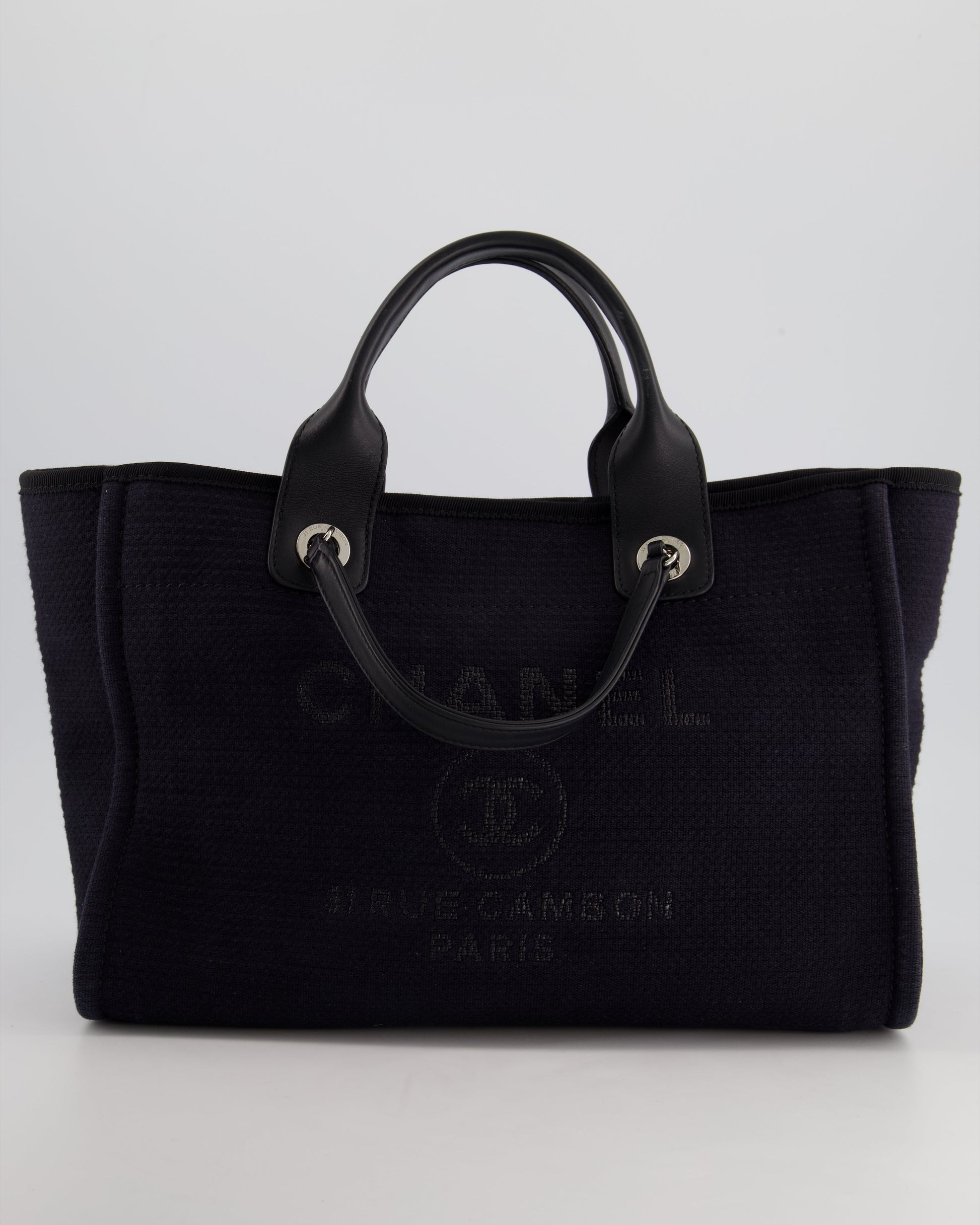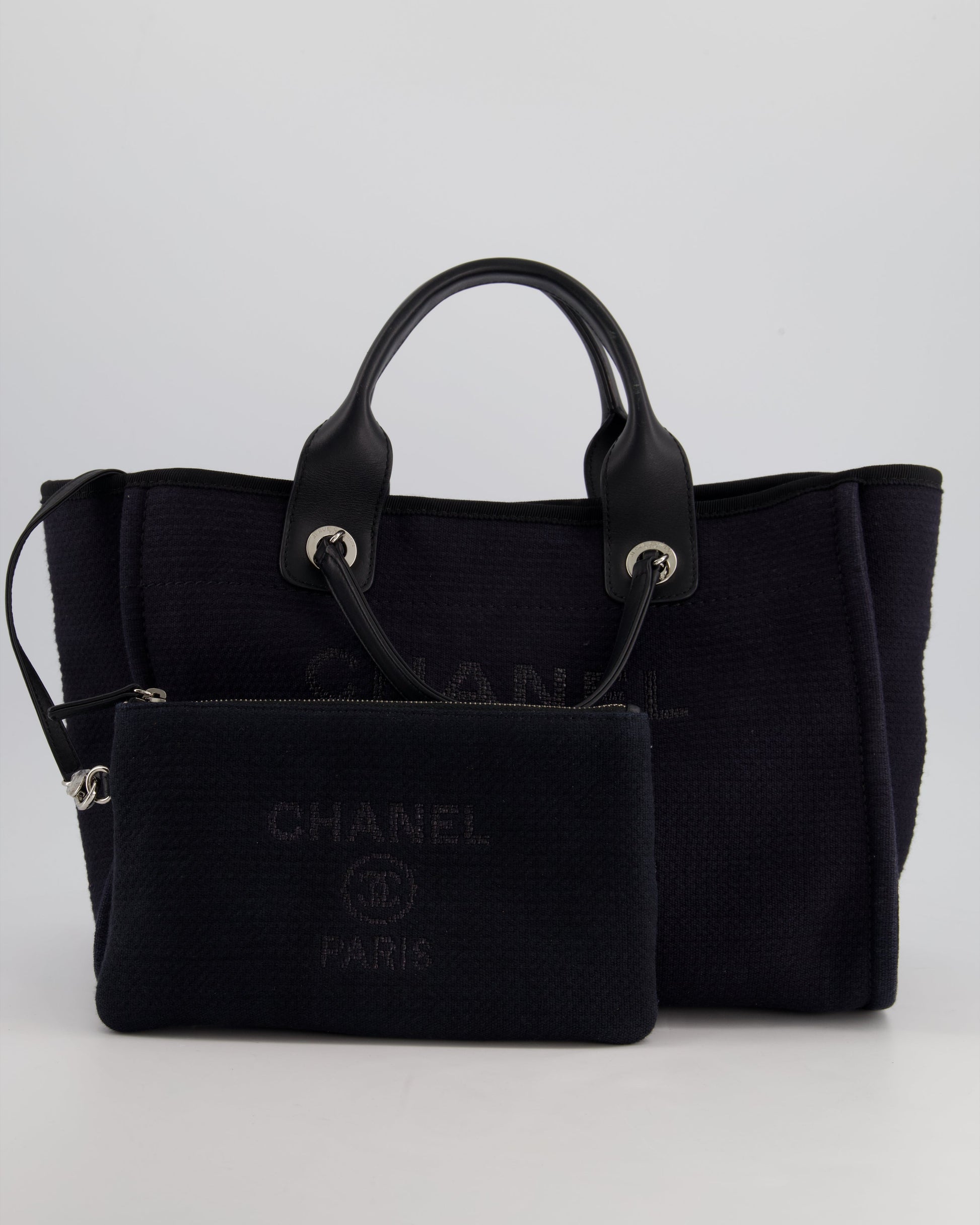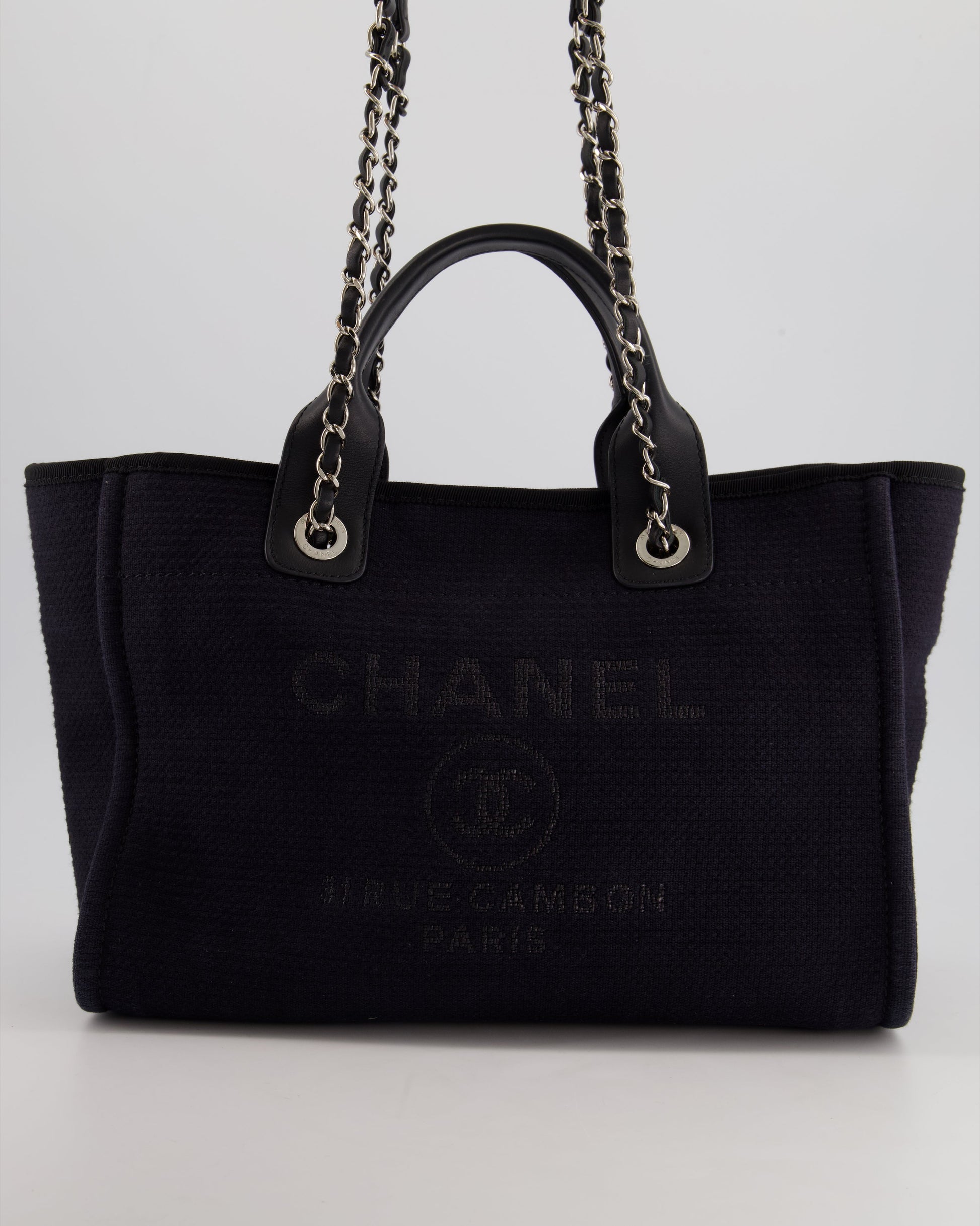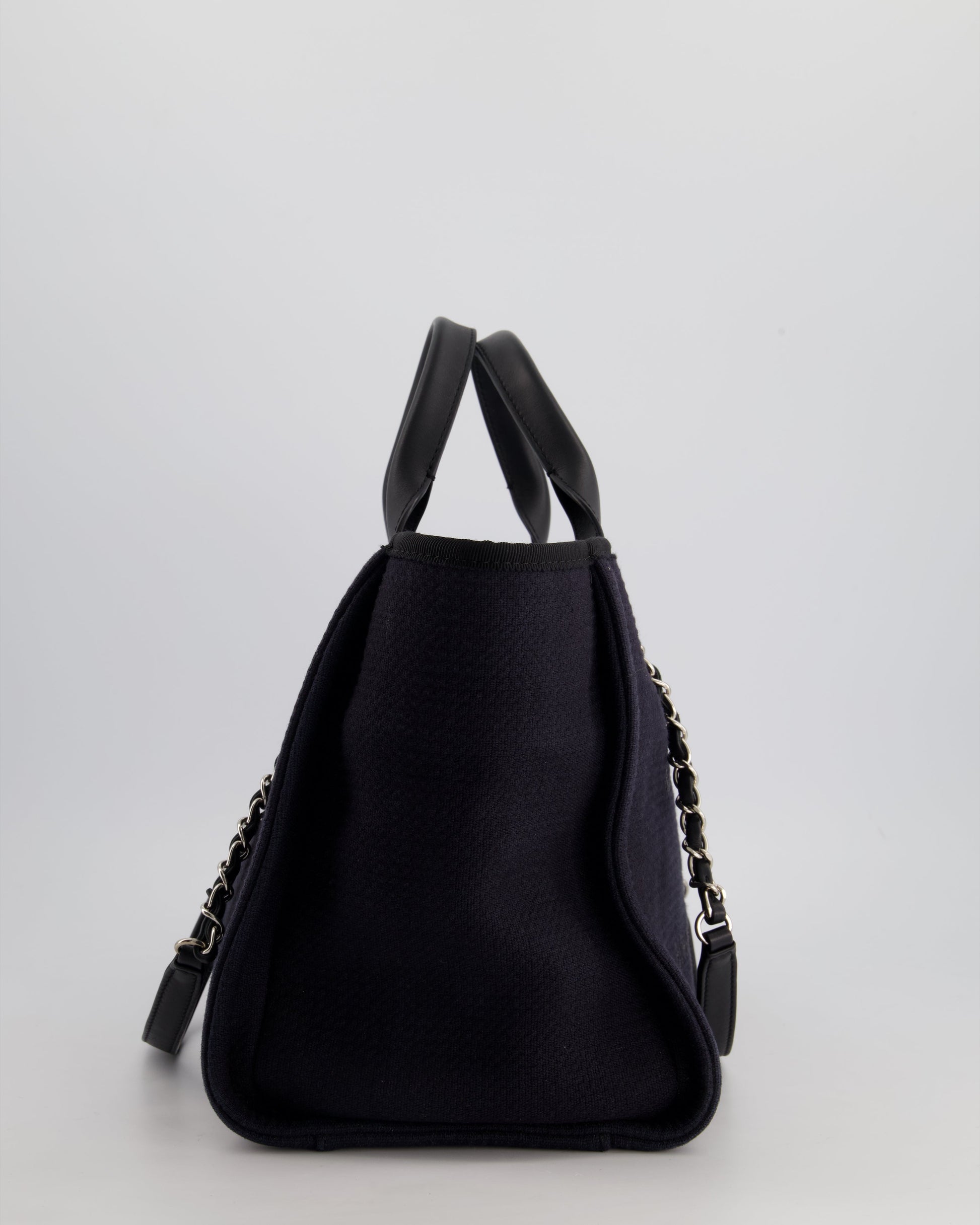 Chanel Navy & Black Small Deauville Tote Bag with Silver Hardware