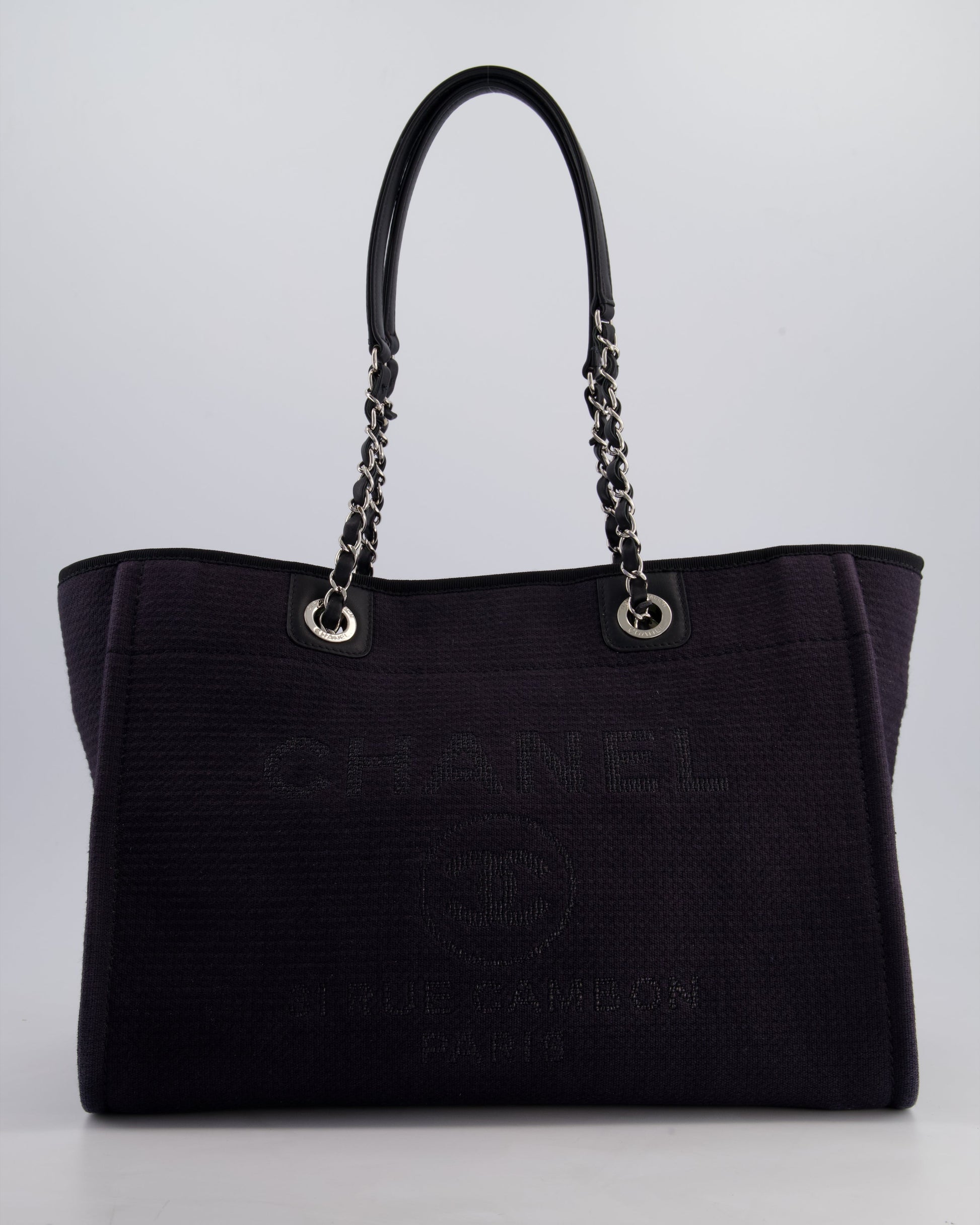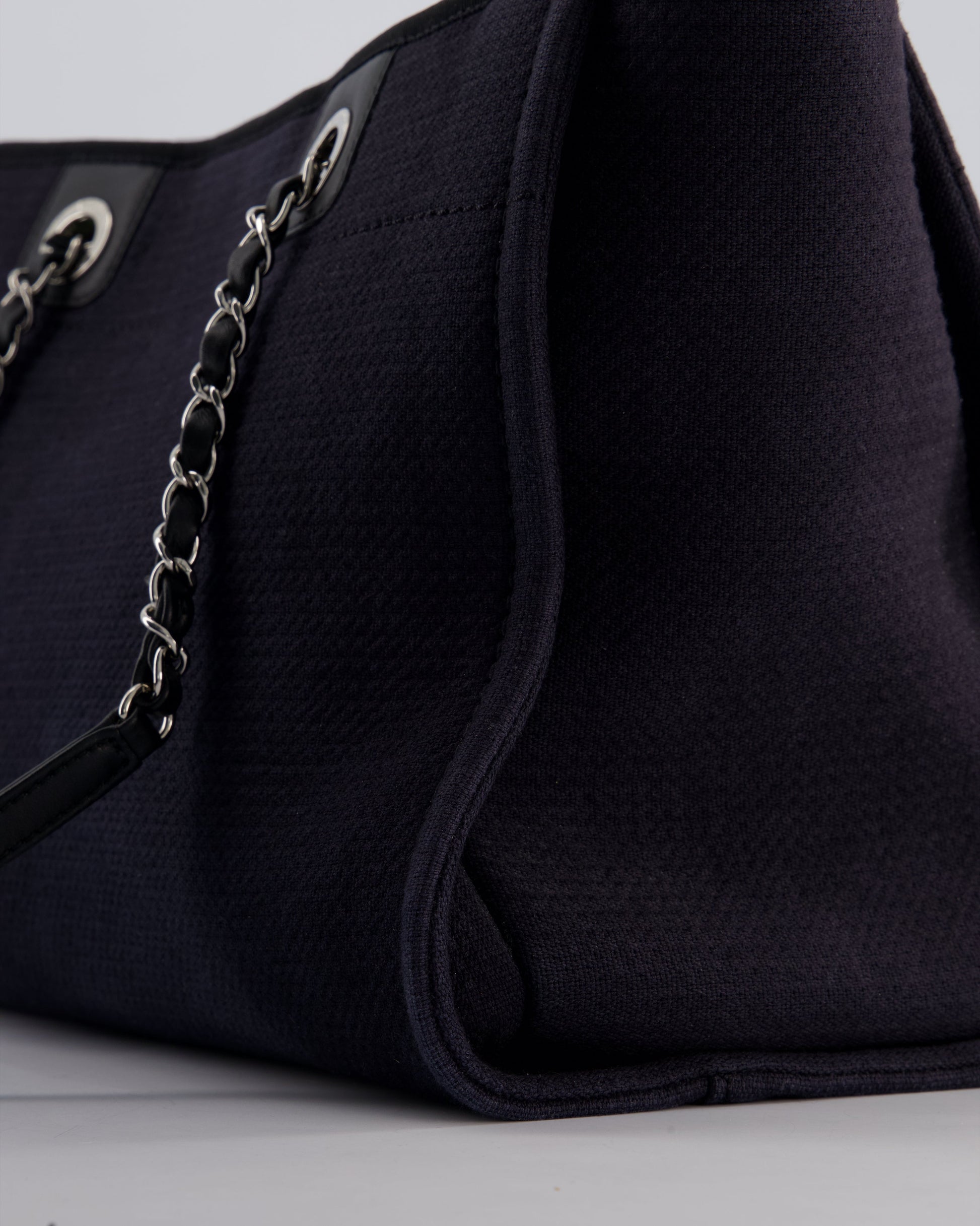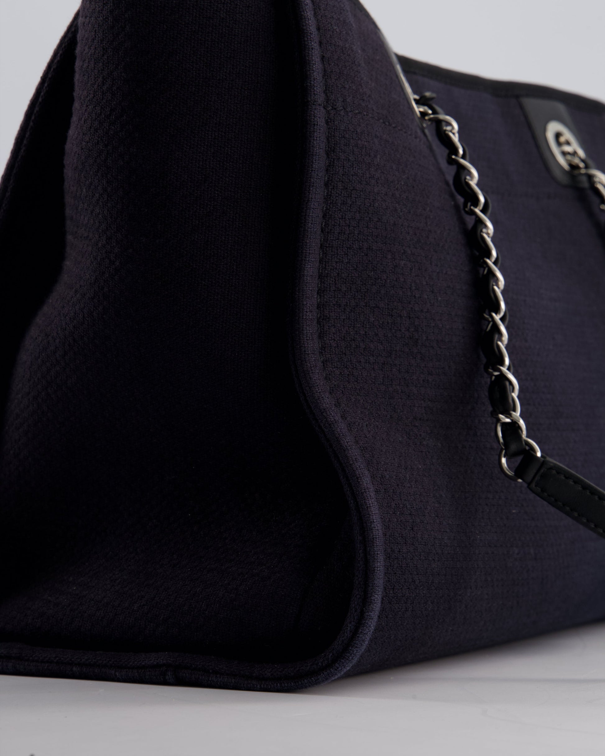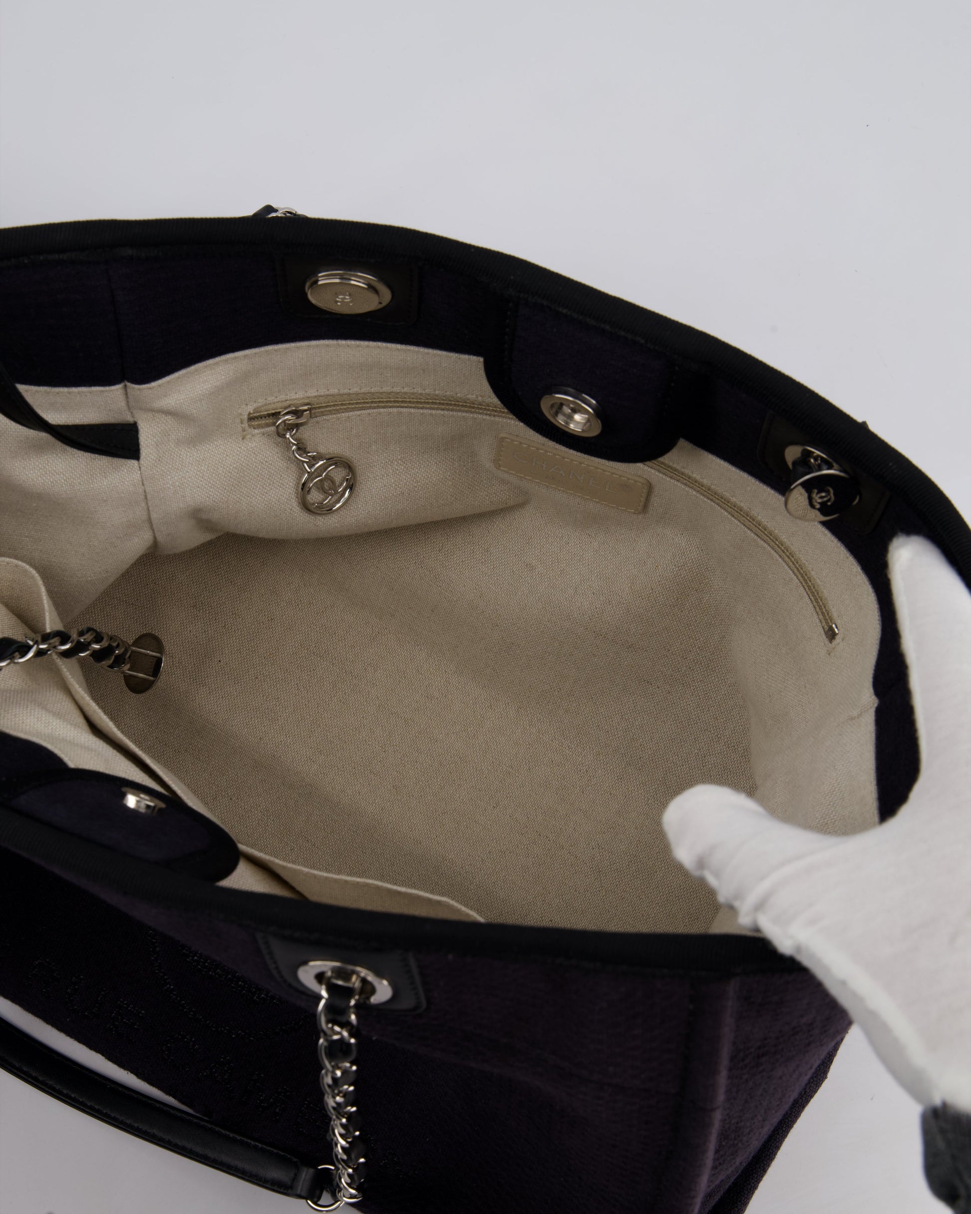 Chanel Black Small Canvas Deauville Tote Bag with Silver Hardware