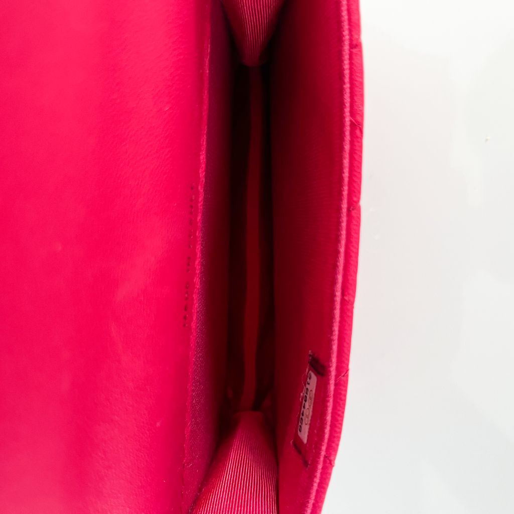 Chanel dark pink quilted lambskin top handle micro top handle flap bag with gold-tone hardware, strap is detachable