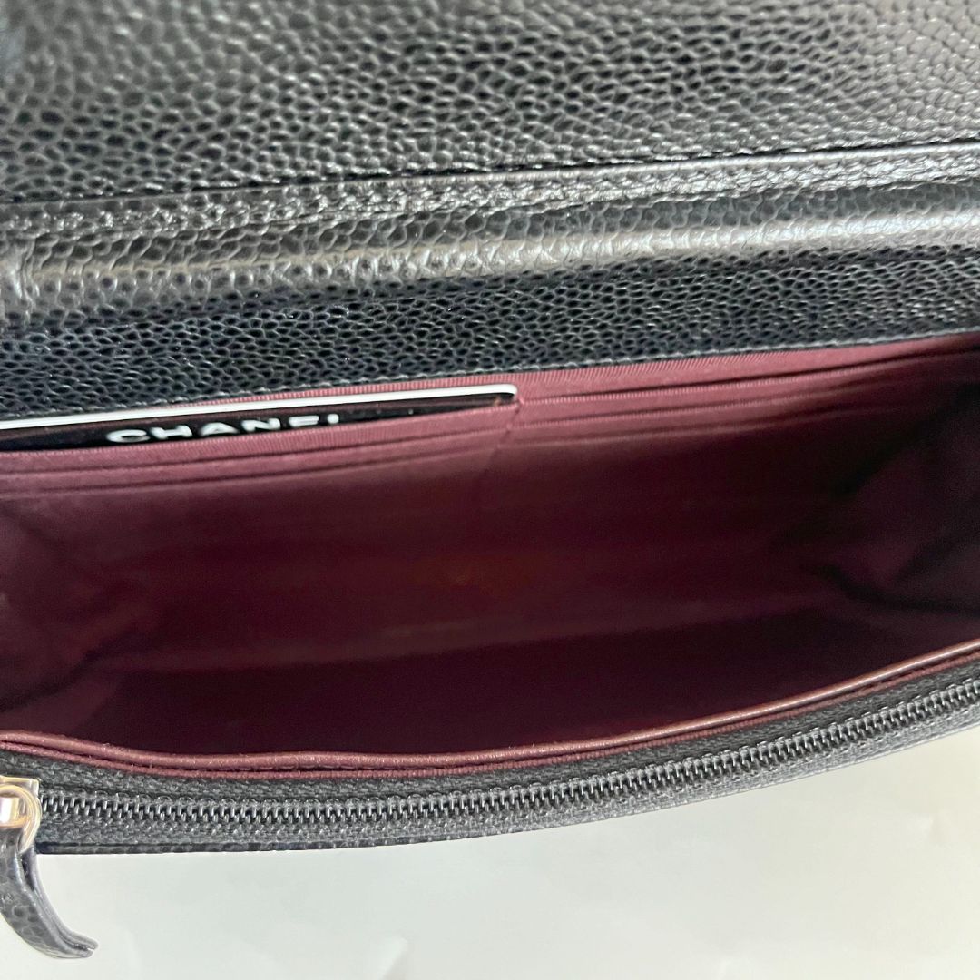 Chanel quilted black caviar wallet on chain with silver-hardware