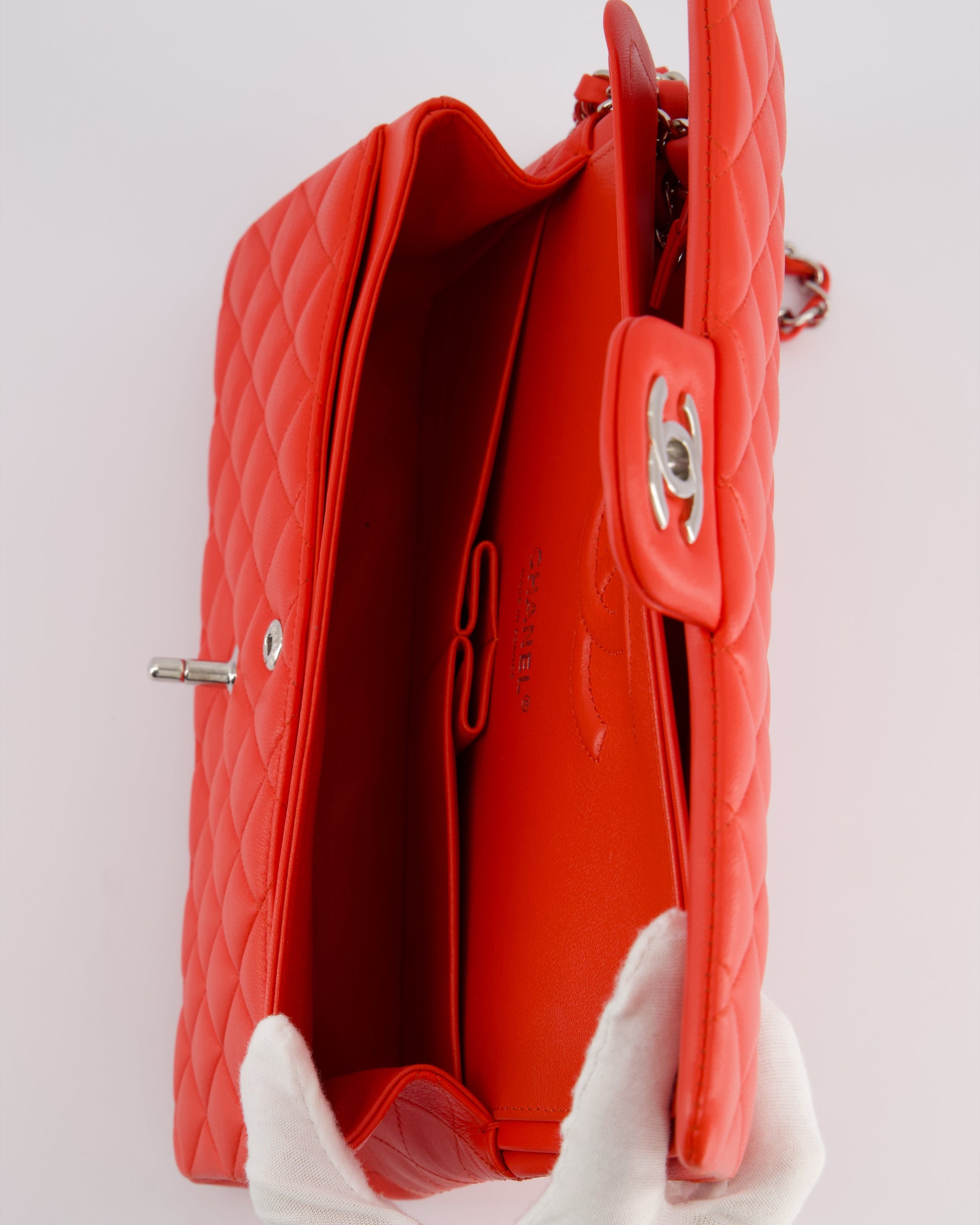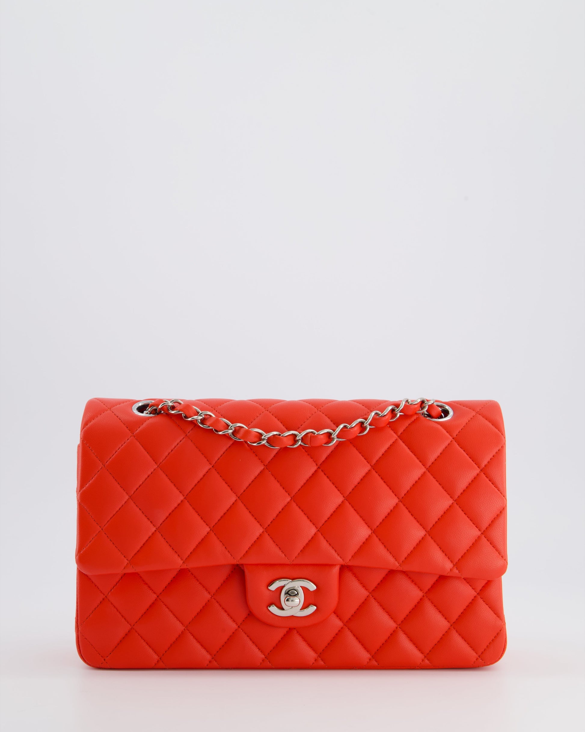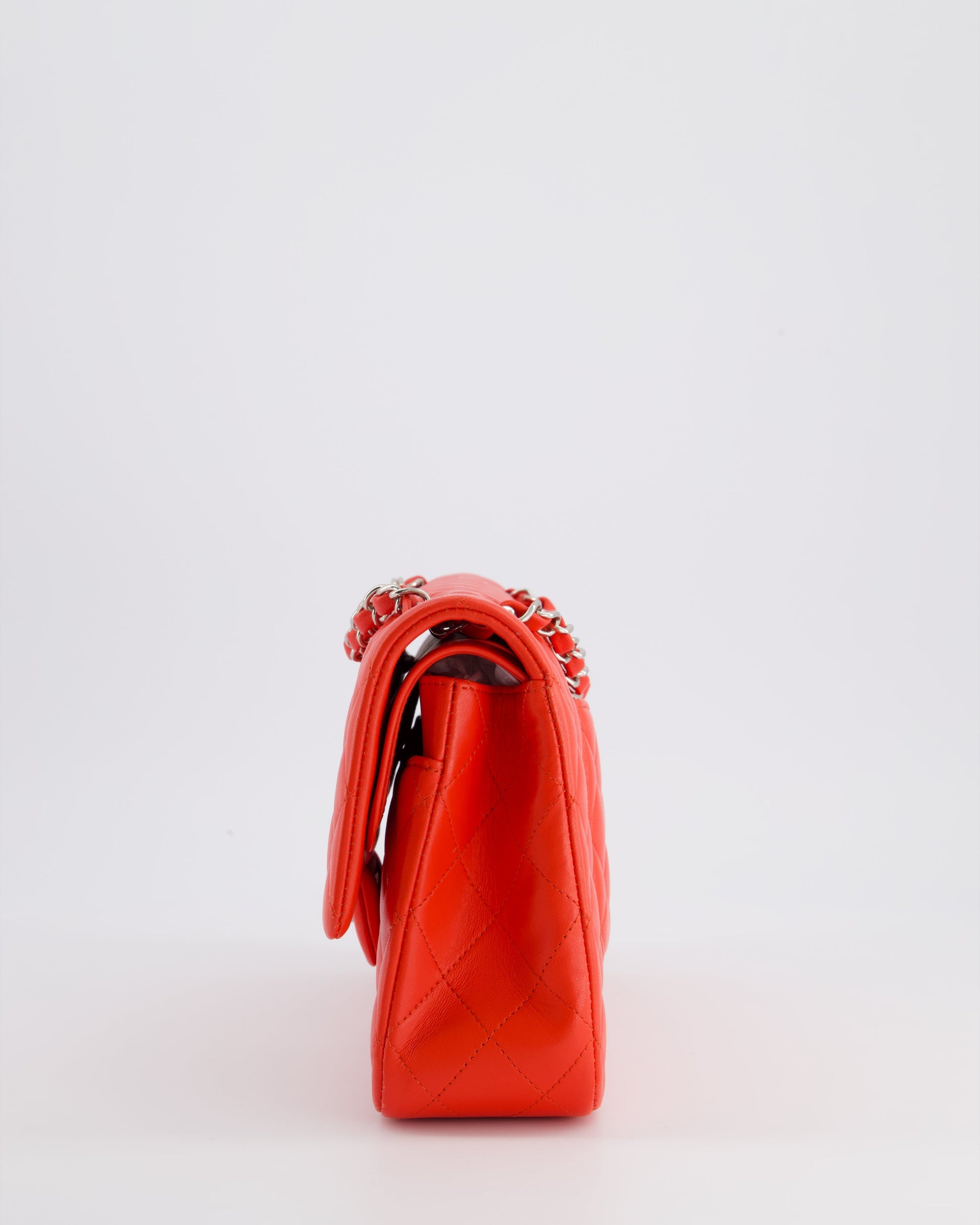 Chanel Scarlet Red Medium Classic Double Flap Bag in Lambskin Leather with Silver Hardware