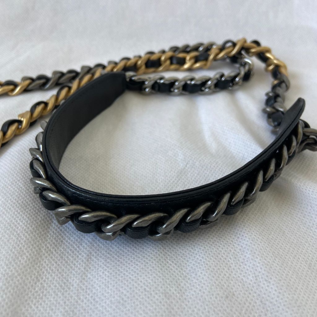 Chanel Shiny Goatskin Quilted Chanel 19 Round Clutch With Chain Black red fabric lined interior