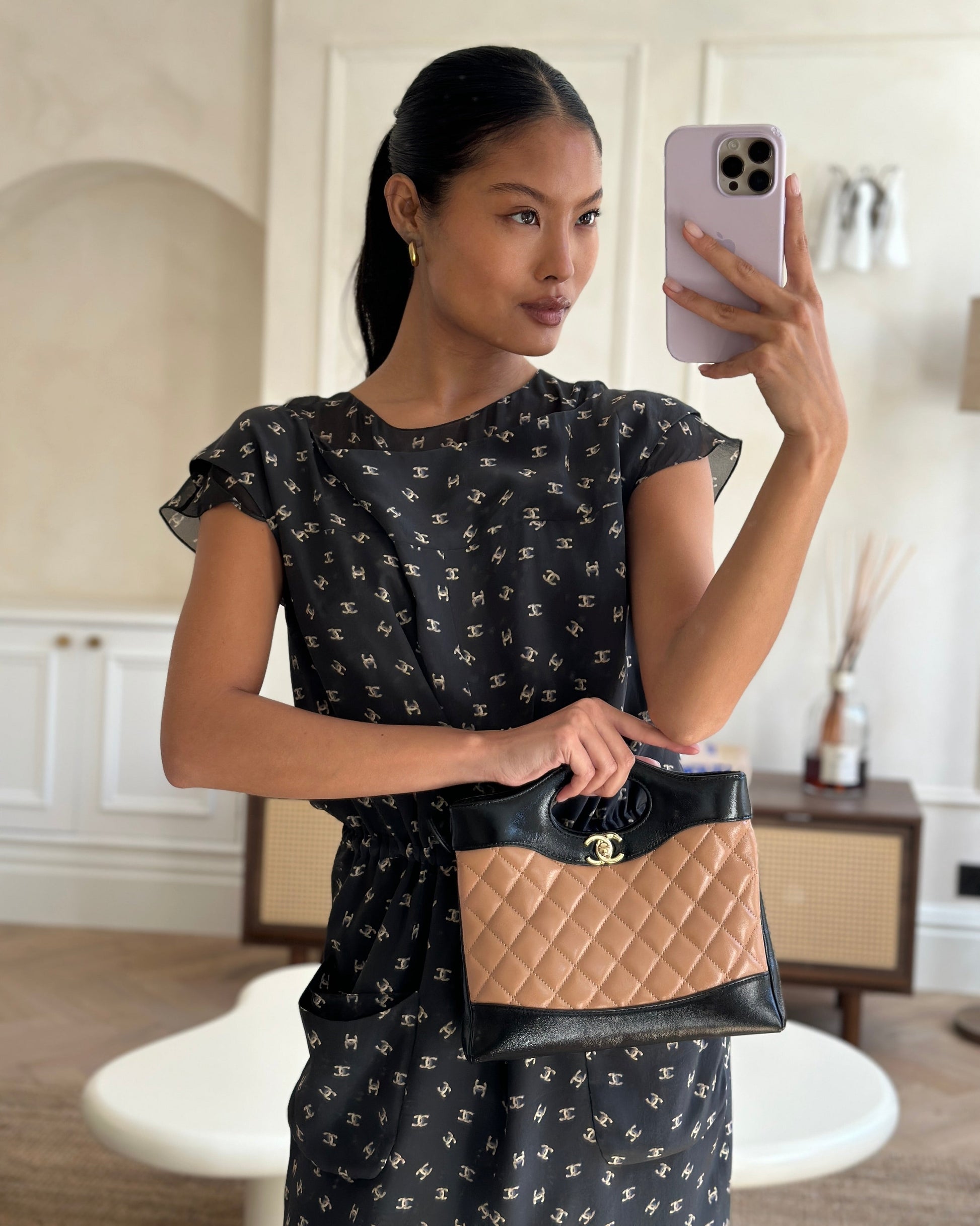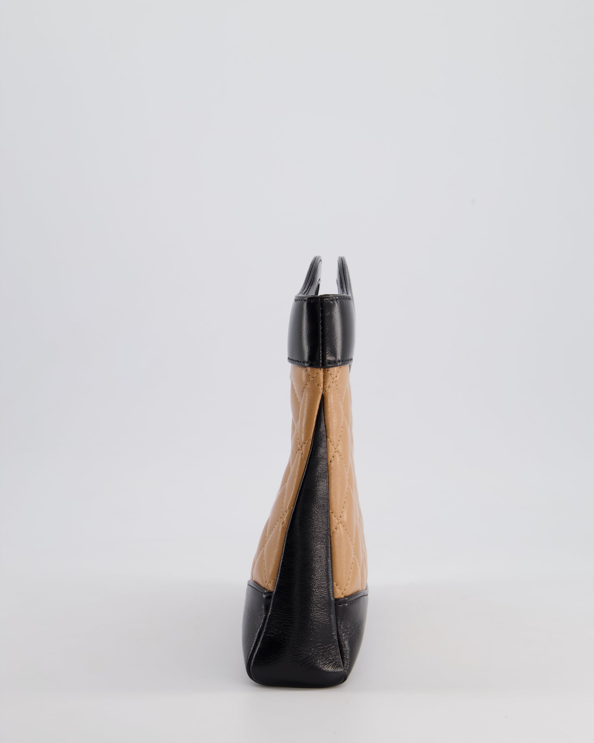 *HOT* Chanel Small 31 Bag with Chain in Black and Light Brown Shiny Calfskin Leather with Champagne Gold Hardware
