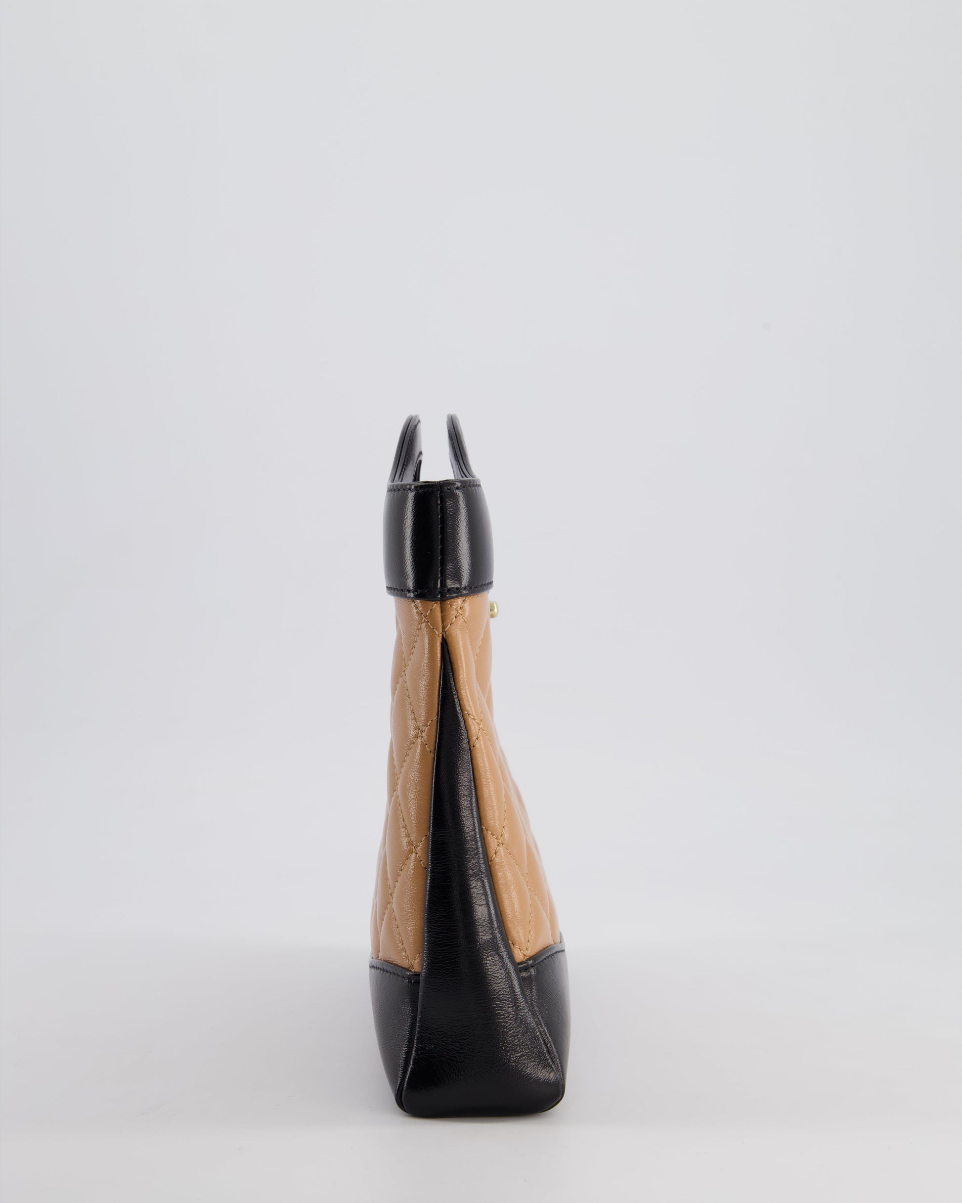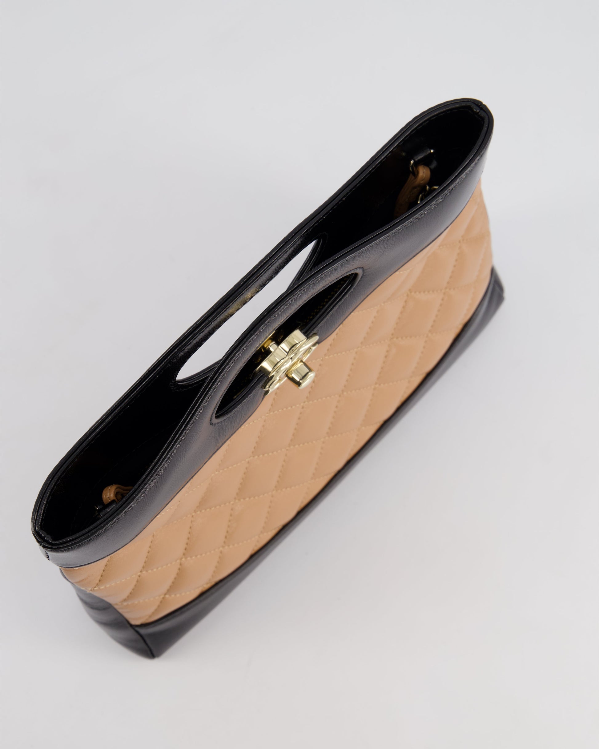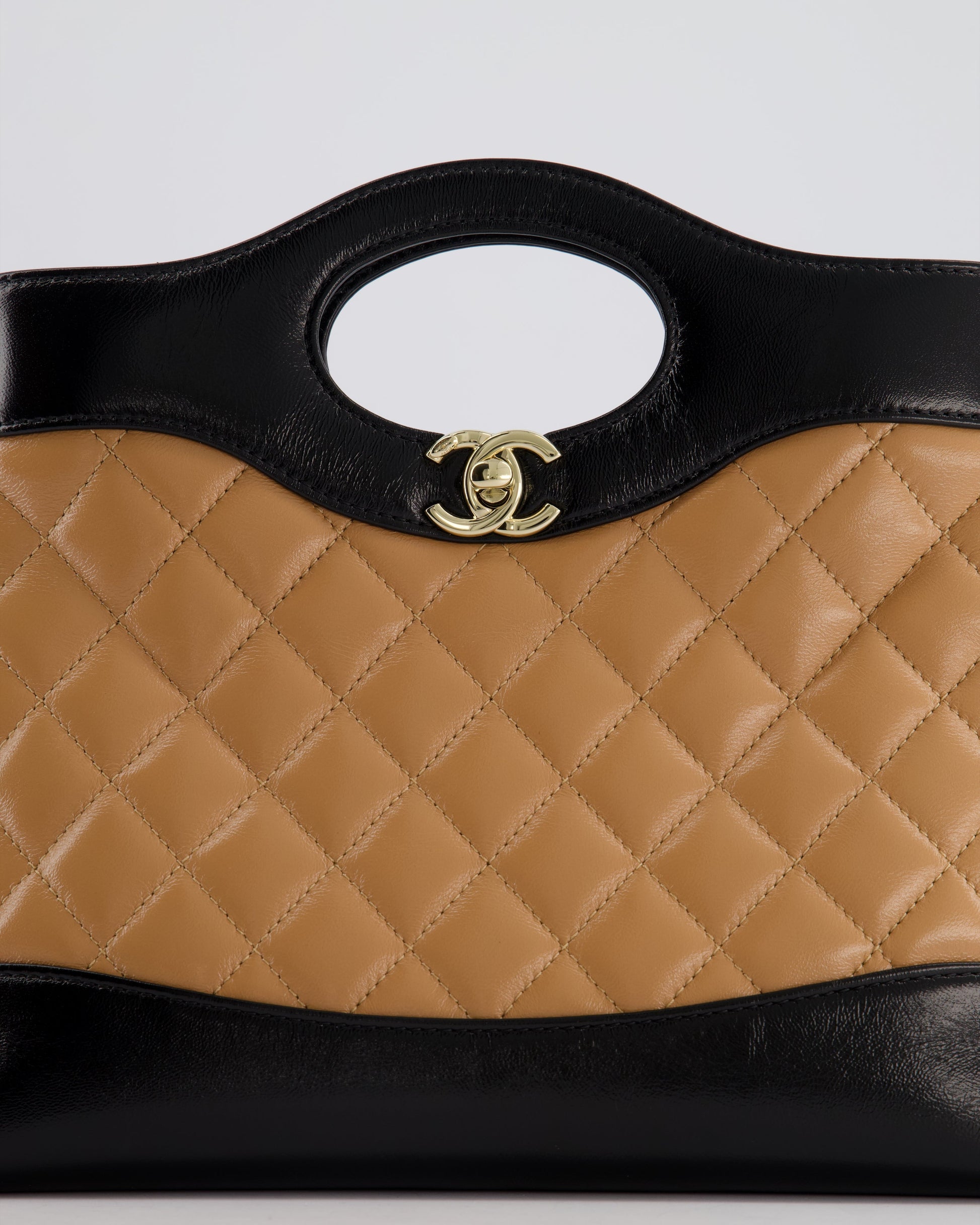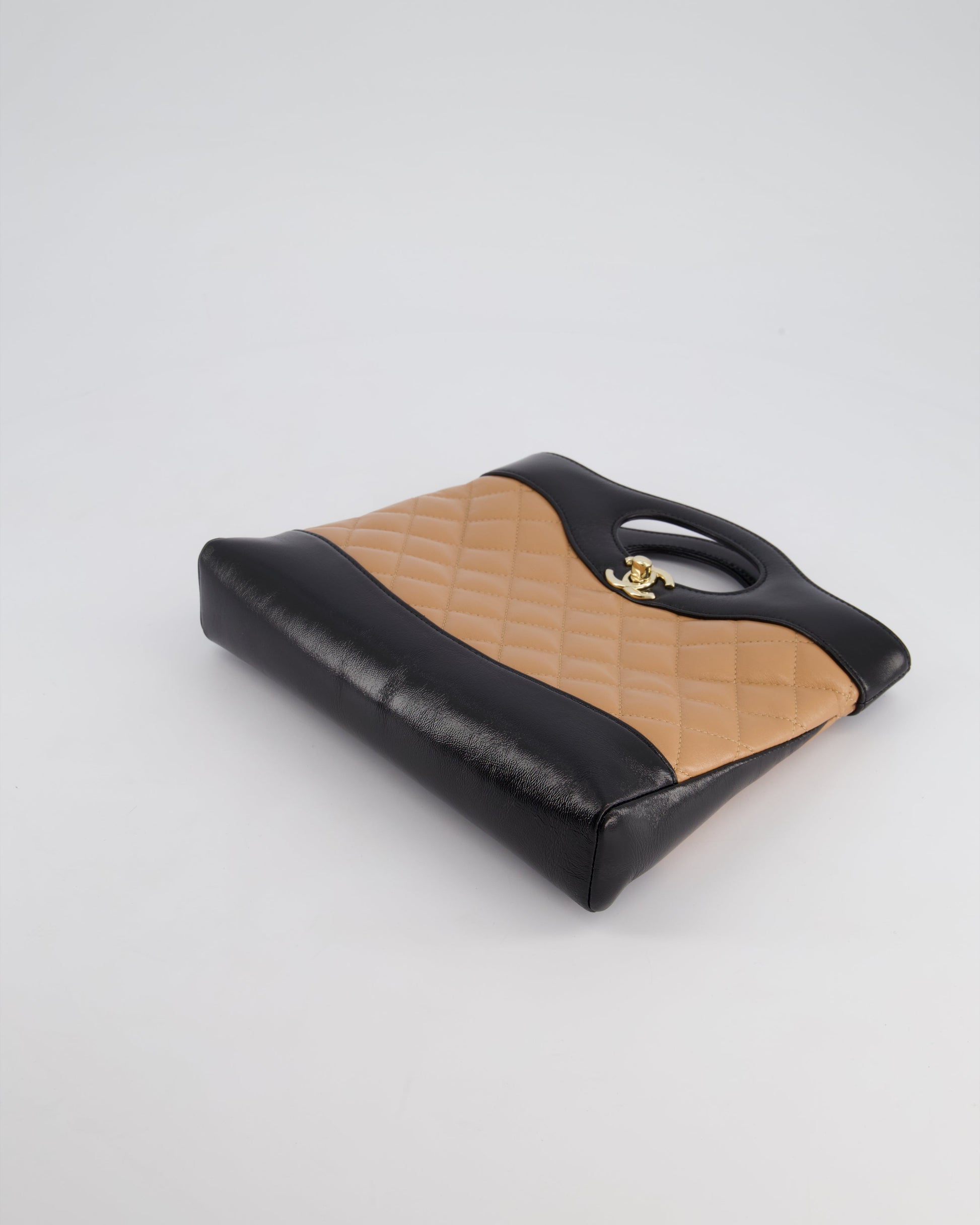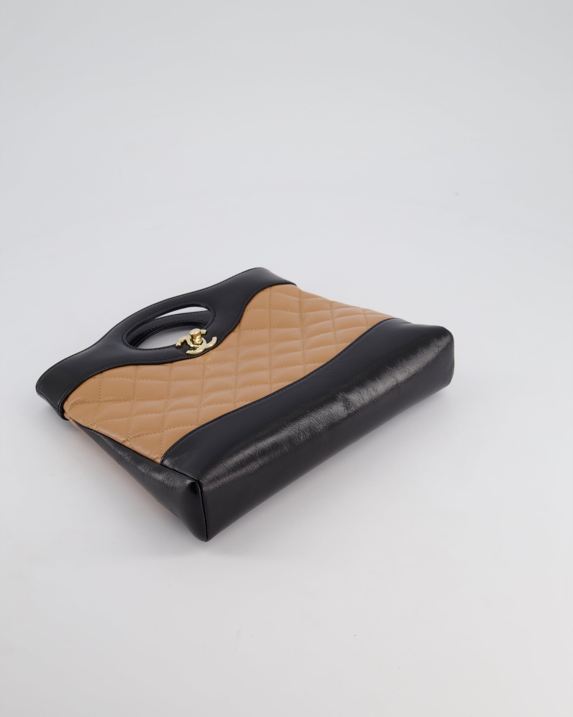 Chanel Small 31 Bag with Chain in Black and Light Brown Shiny Calfskin Leather with Champagne Gold Hardware