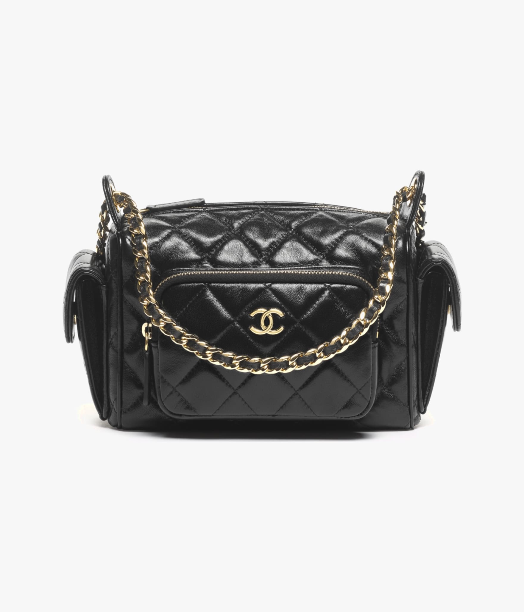 Fall-Winter 2024/25 Shiny Crumpled Lambskin & Gold-Tone Metal Black