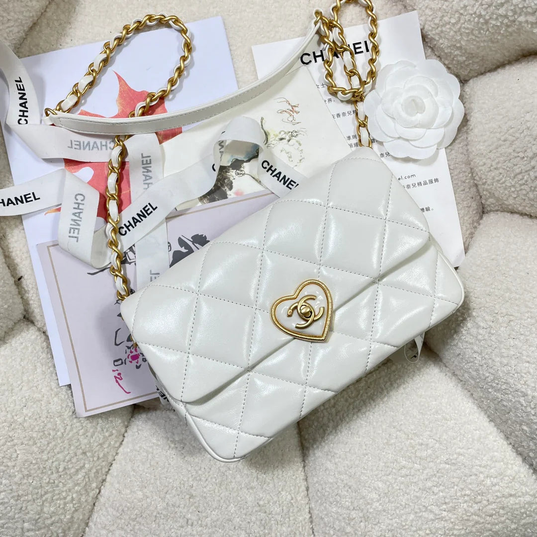 Chanel Small Flap Bag White Lambskin size 21 x 14 x 7 cm