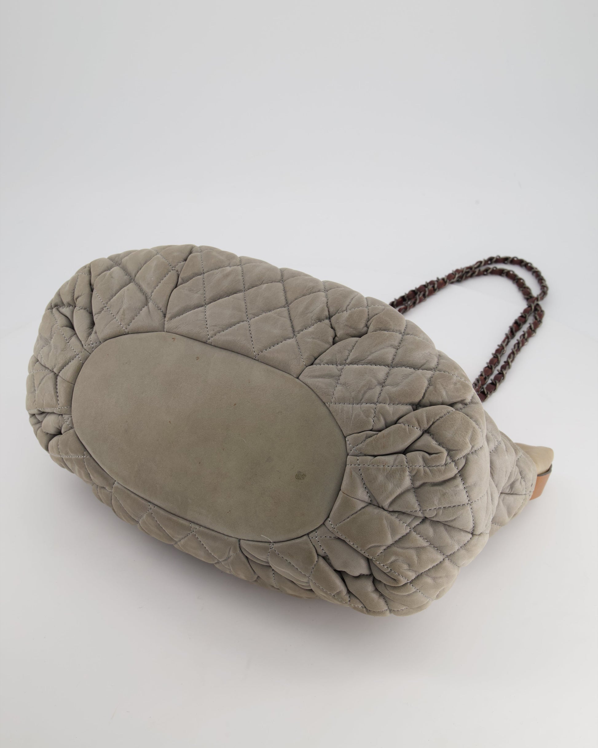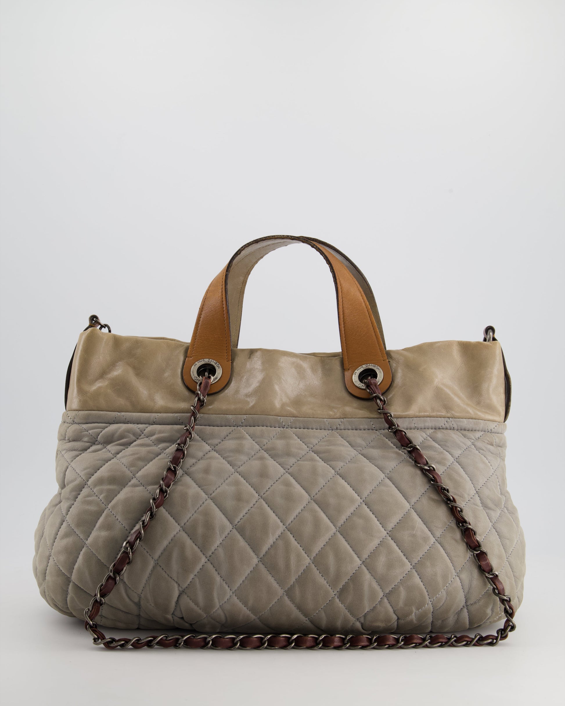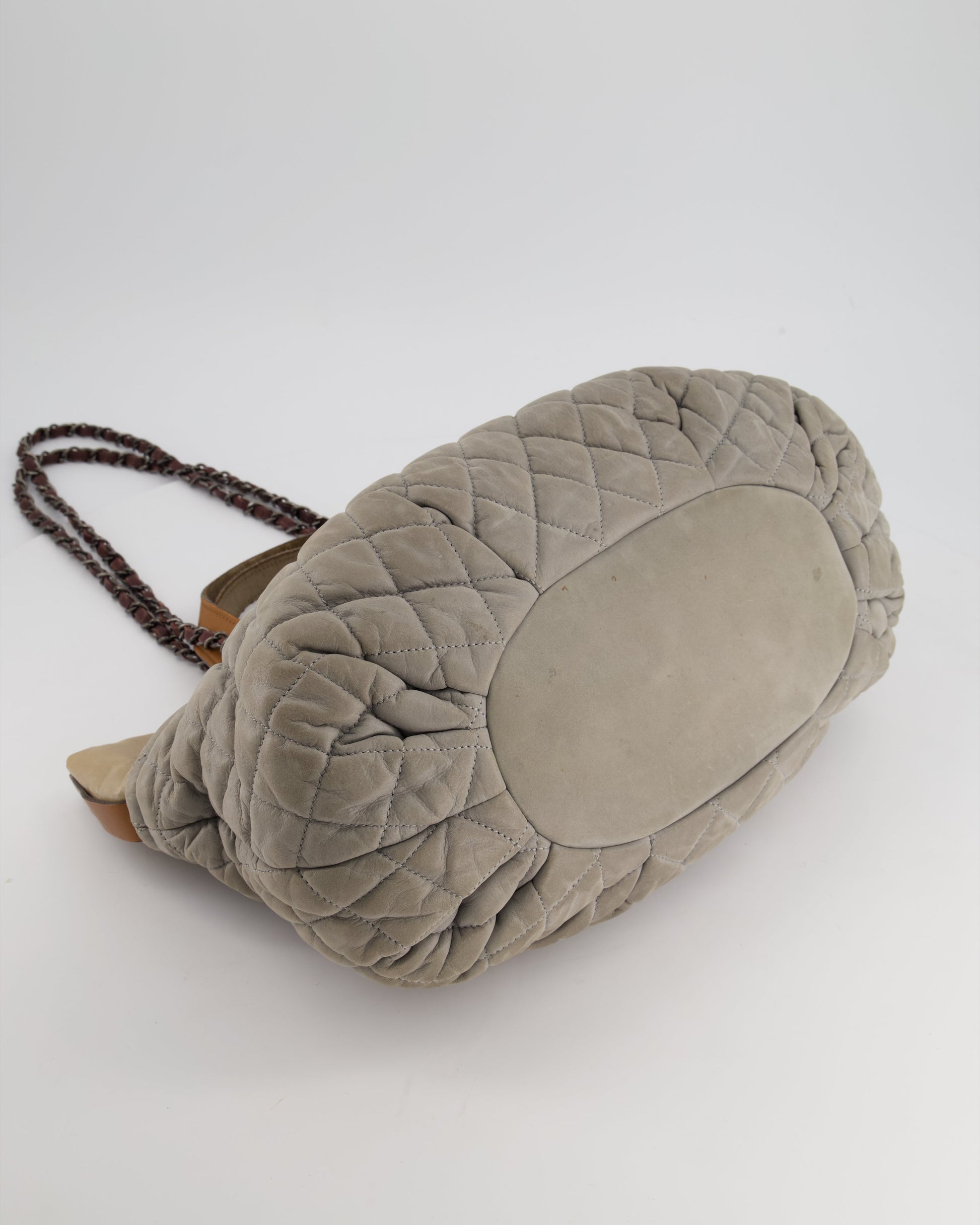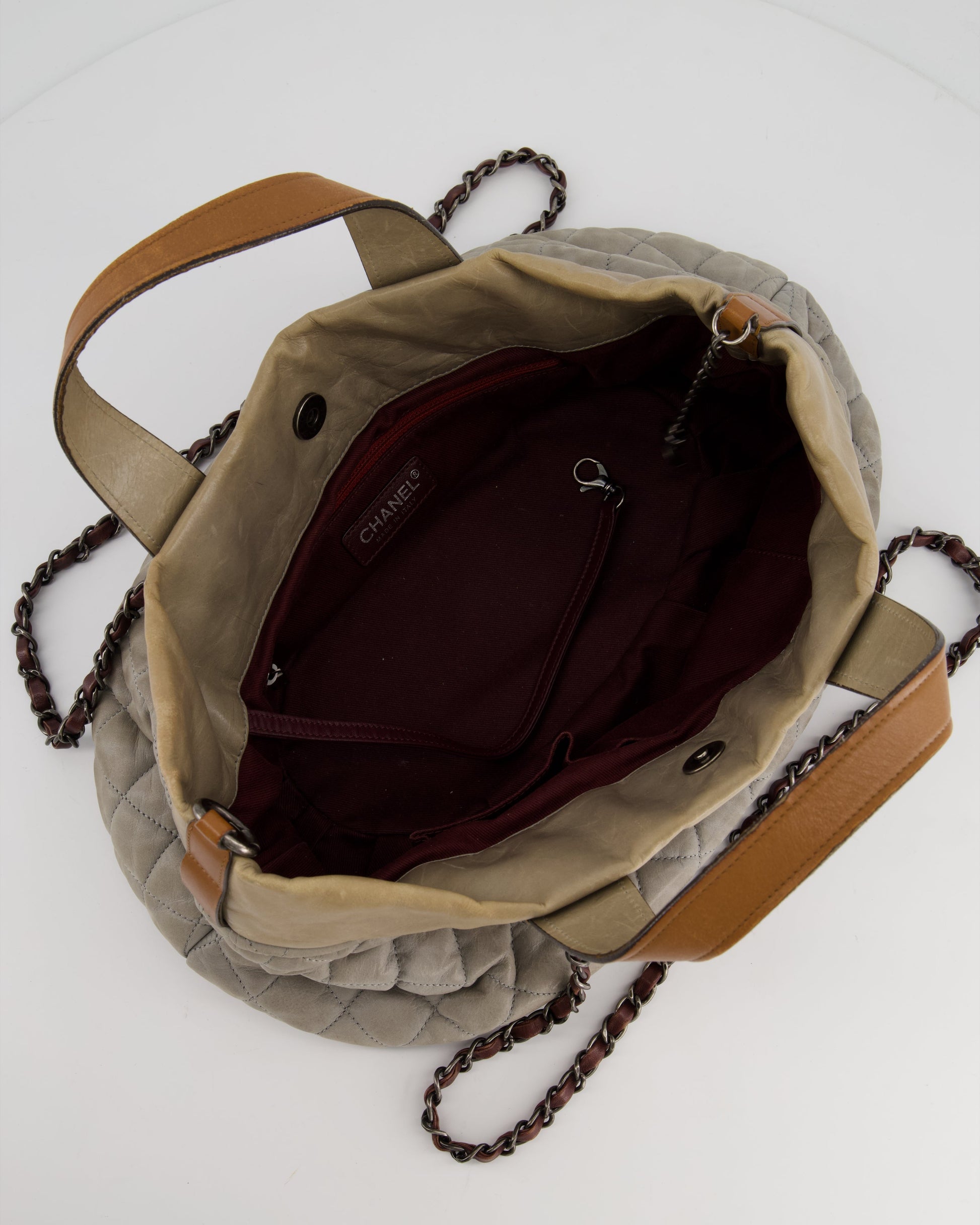 Chanel Grey Nubuck Leather Portobello Tote Bag with Tan Leather Handle and Ruthenium Hardware
