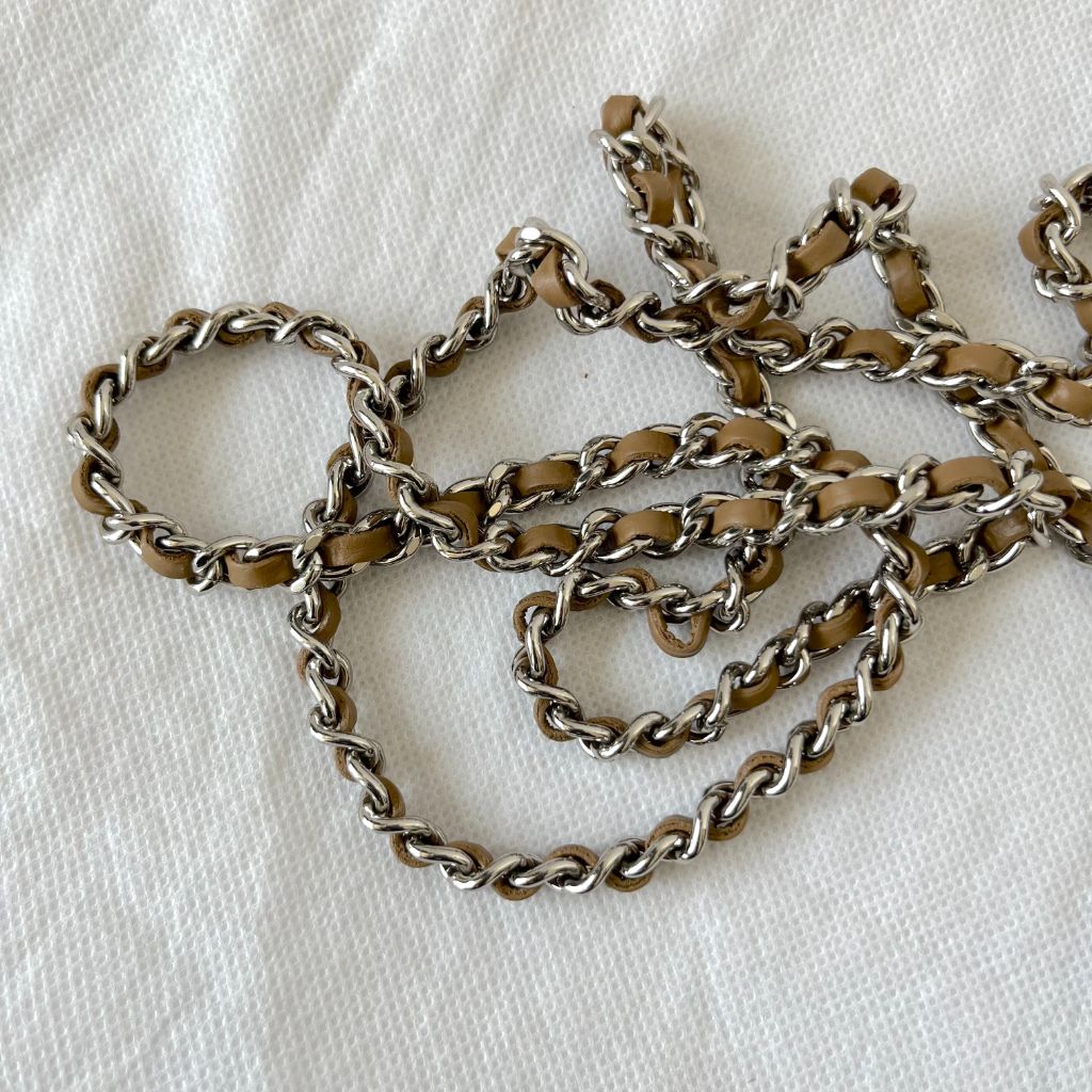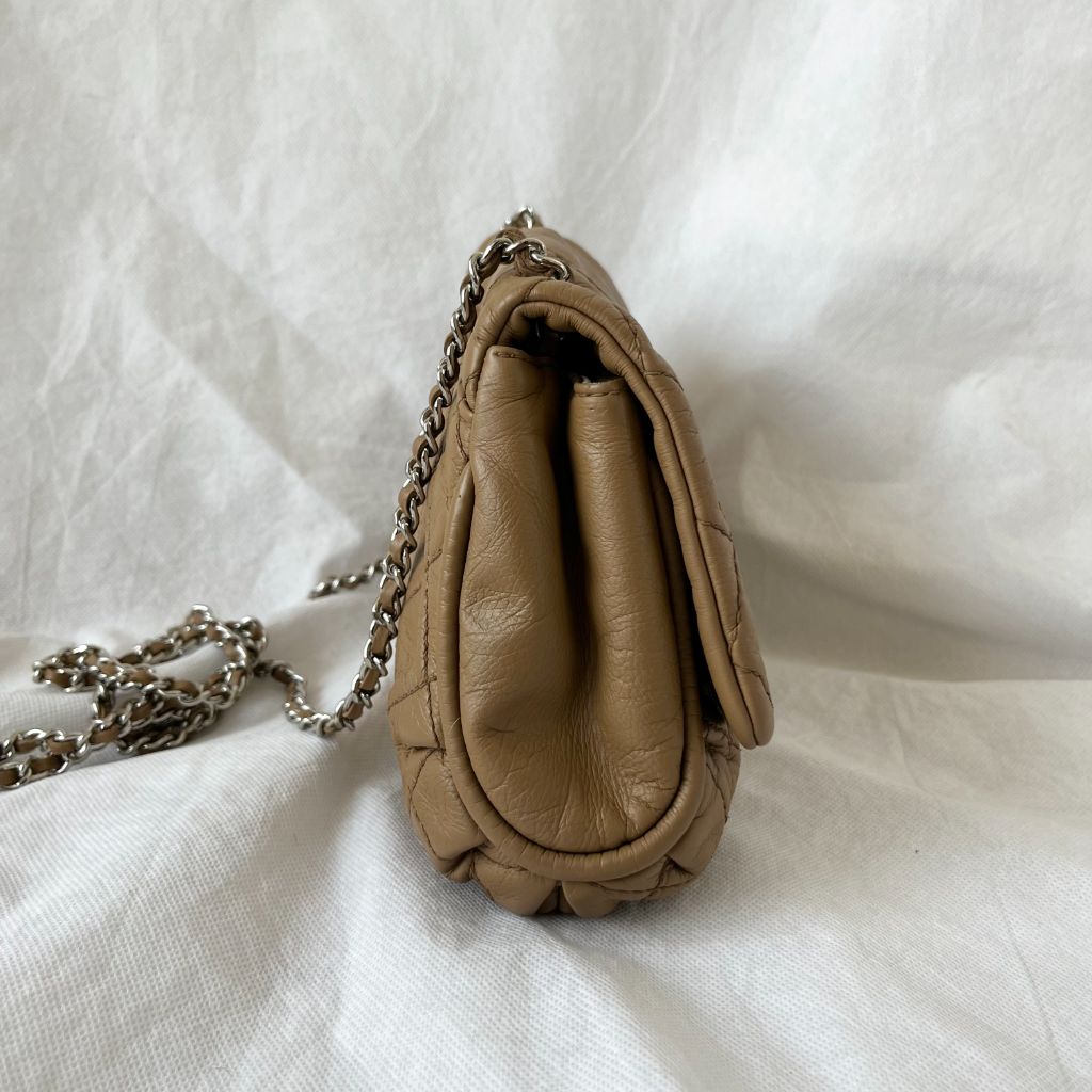 Tan Chanel quilted leather flap bag with silver hardware and tan interior. Don't miss this opportunity to love this vintage-style, exotic tan Chanel bag.