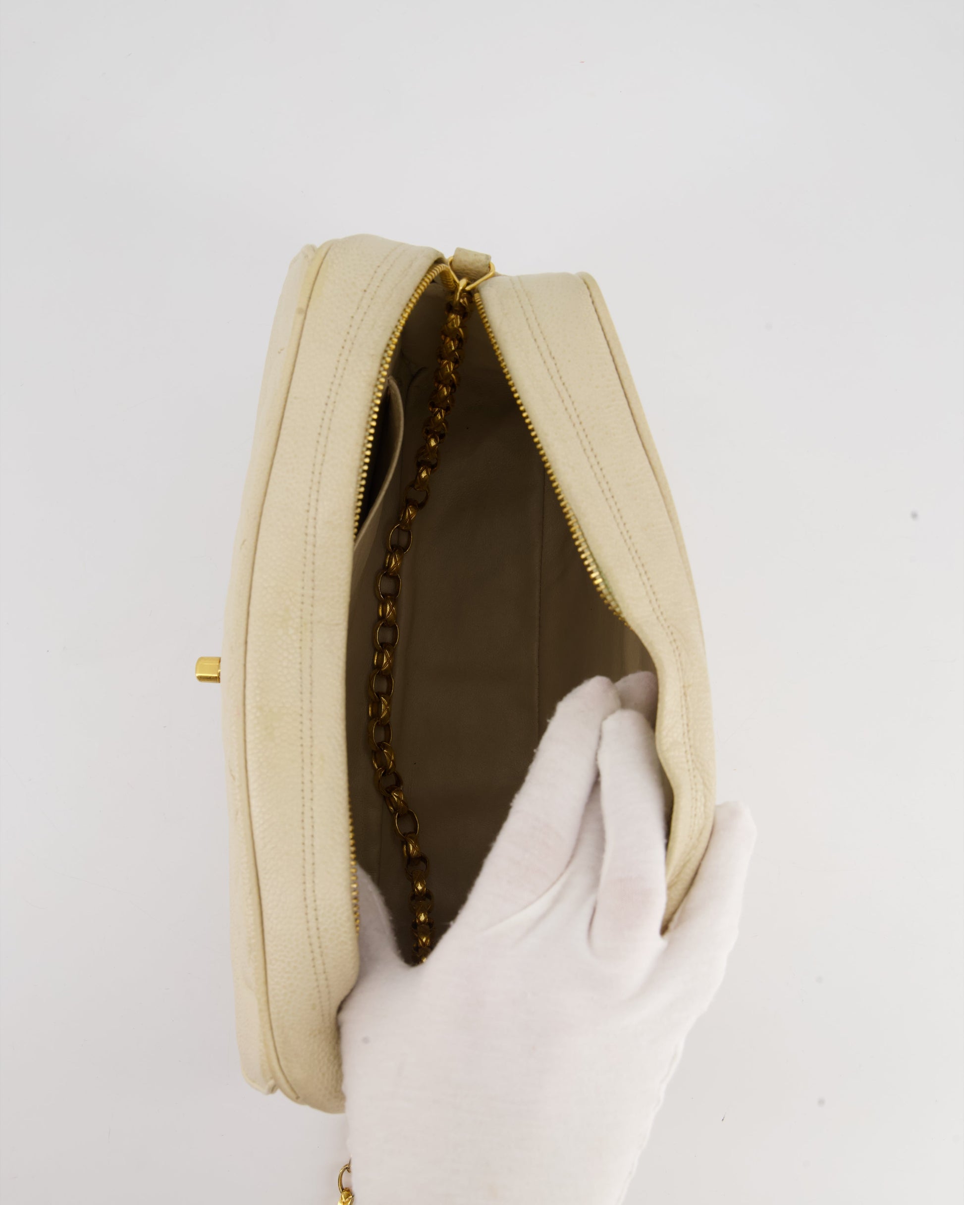 Chanel Vintage Beige Camera Flap Bag in Caviar Leather with Gold Hardware