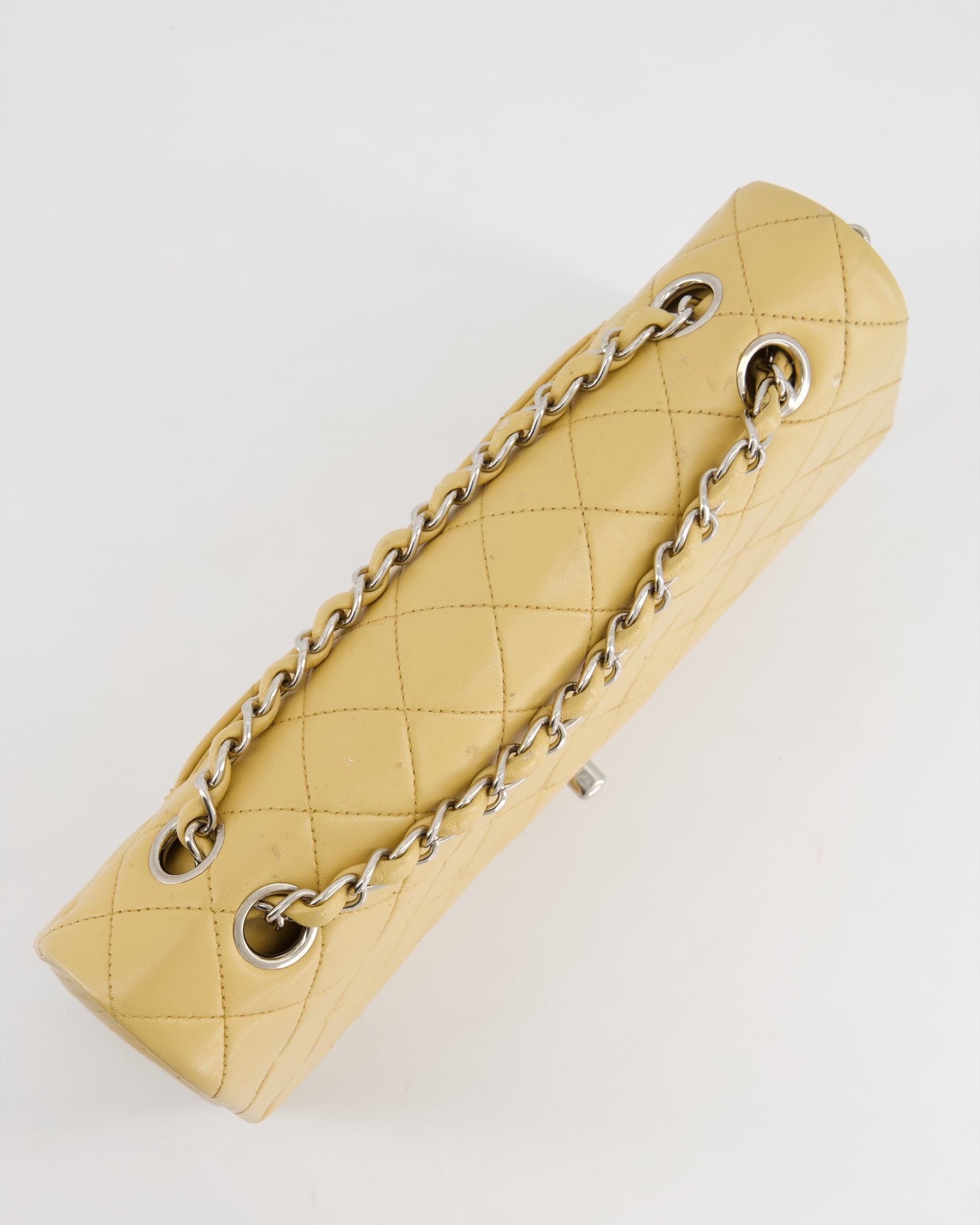 Chanel Vintage Beige Classic Medium Double Flap Bag in Lambskin Leather with Silver Hardware