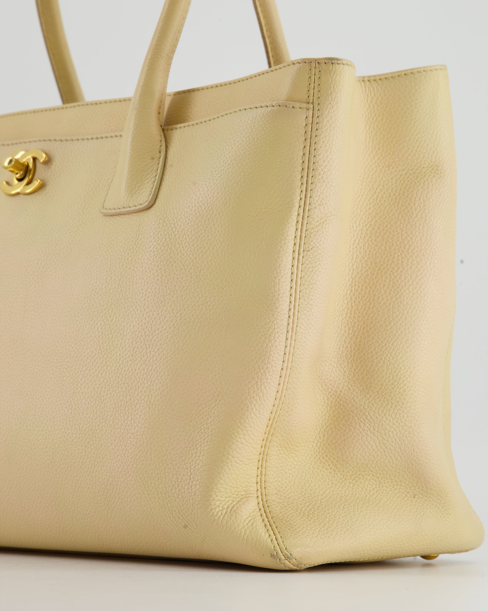 Chanel Vintage Beige Executive Tote Bag in Caviar Leather with 24K Gold Hardware