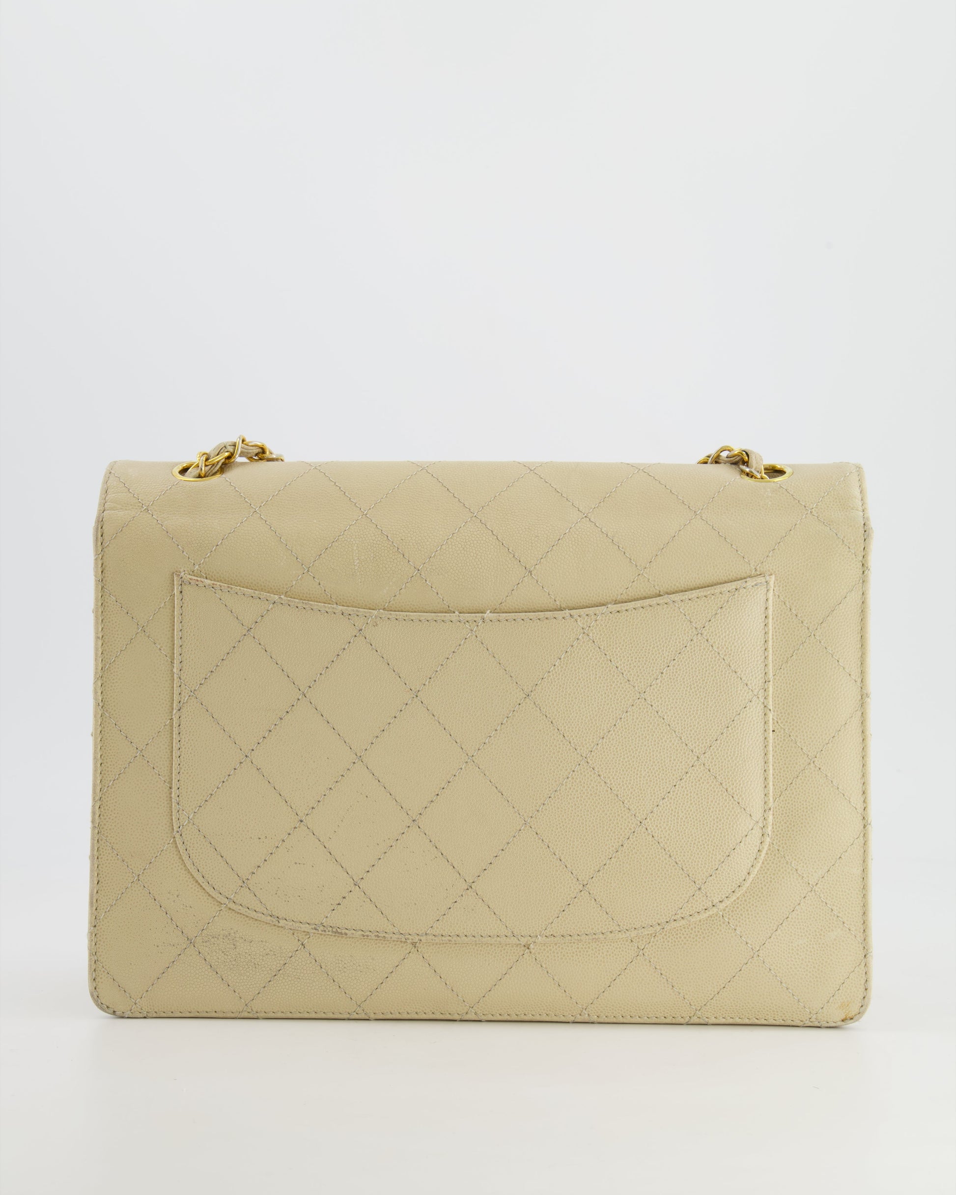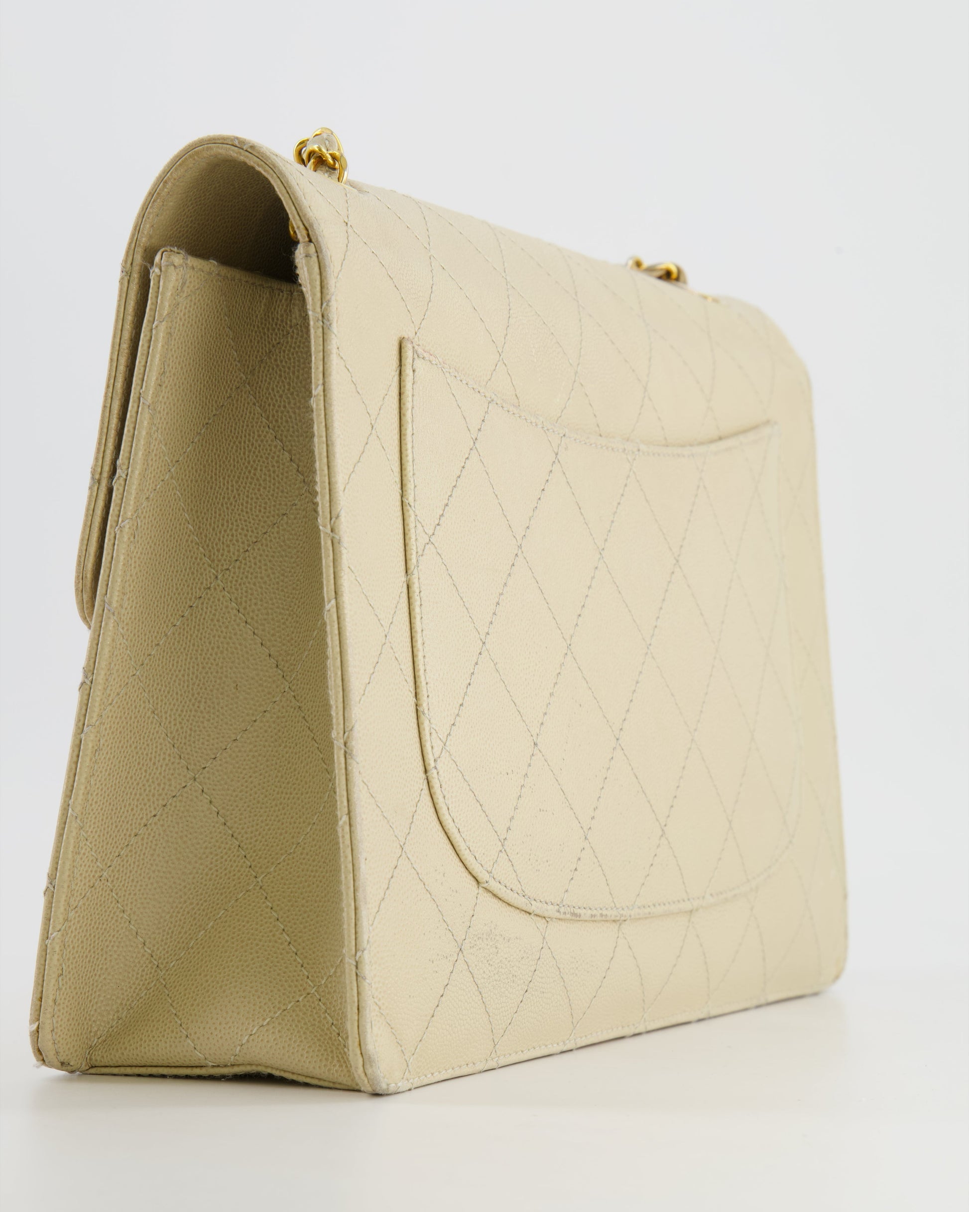Chanel Vintage Beige Large Single Flap Bag in Caviar Leather with 24k Gold Hardware
