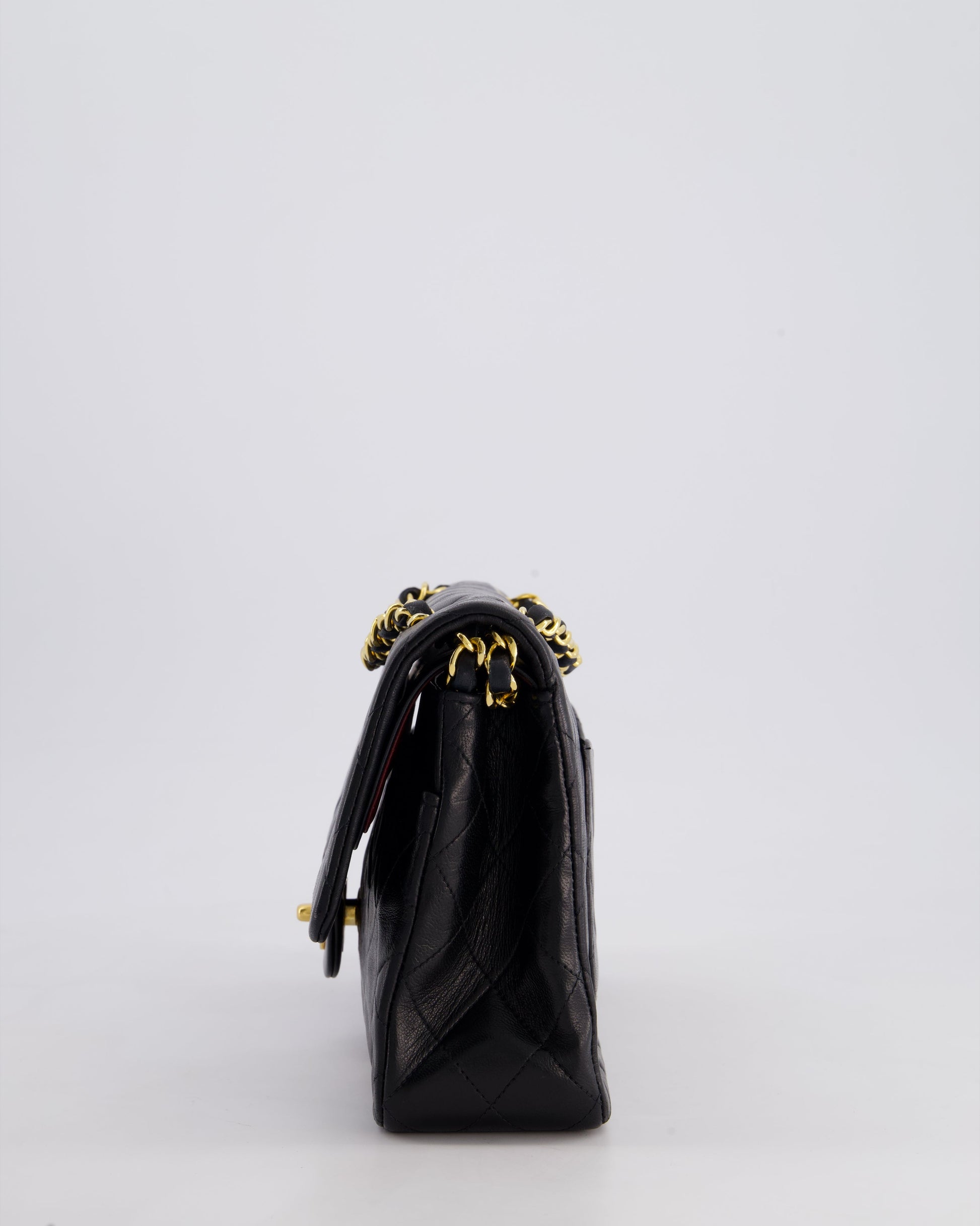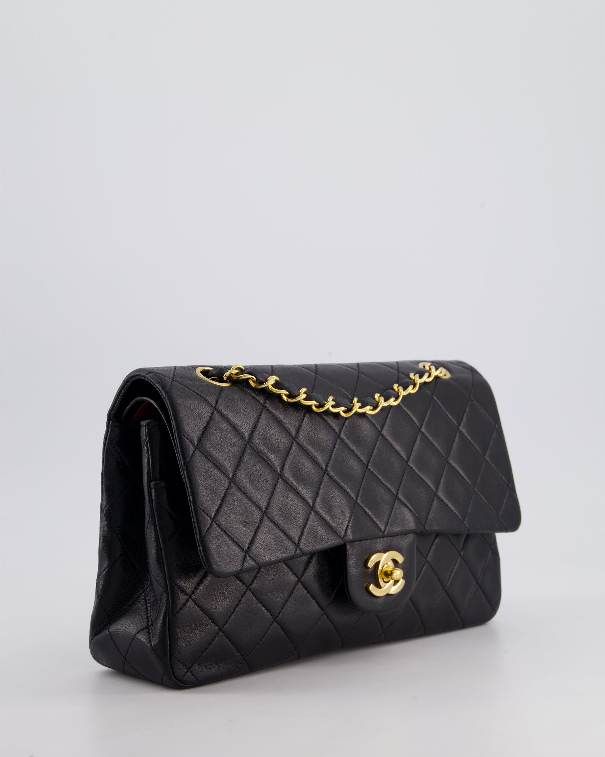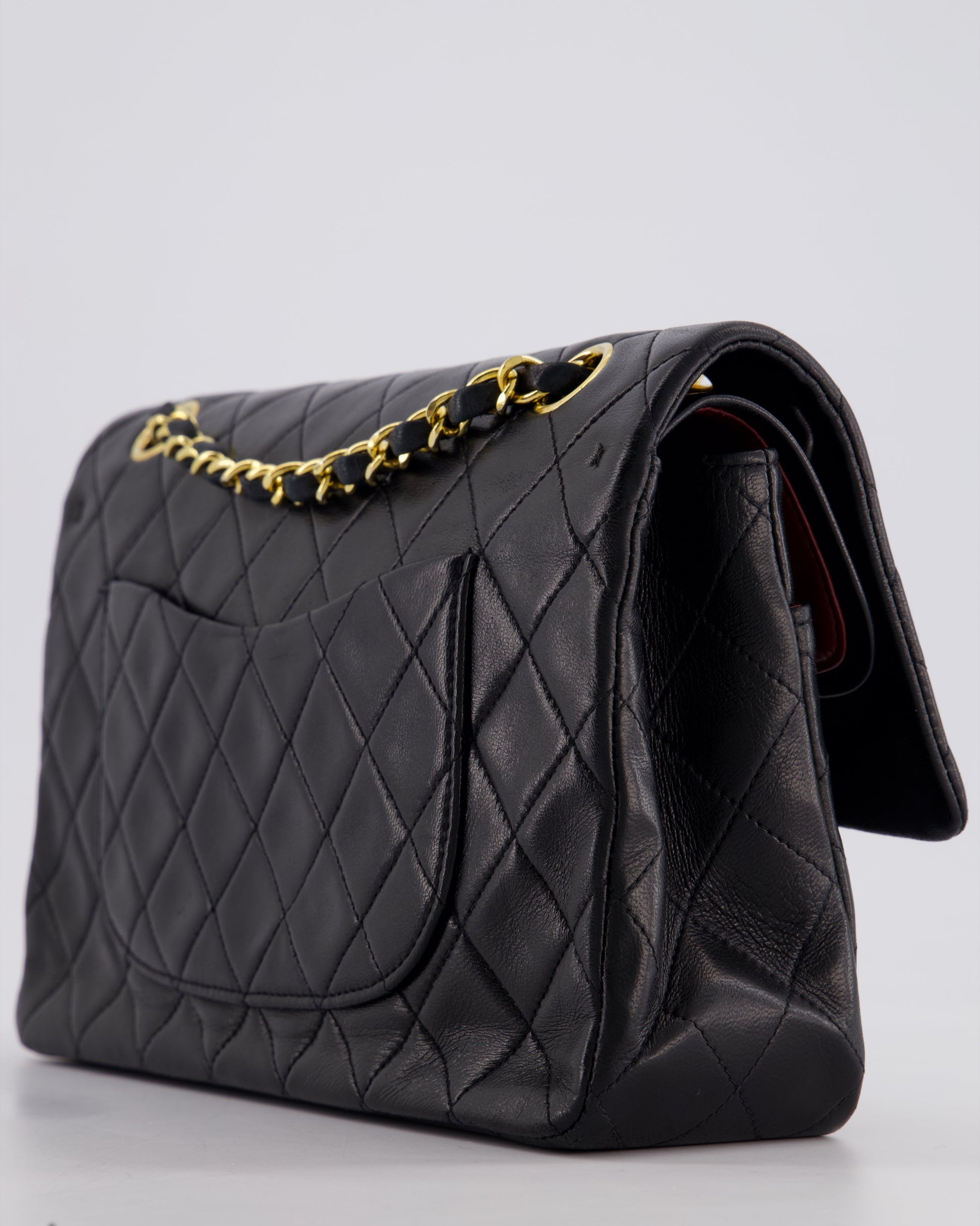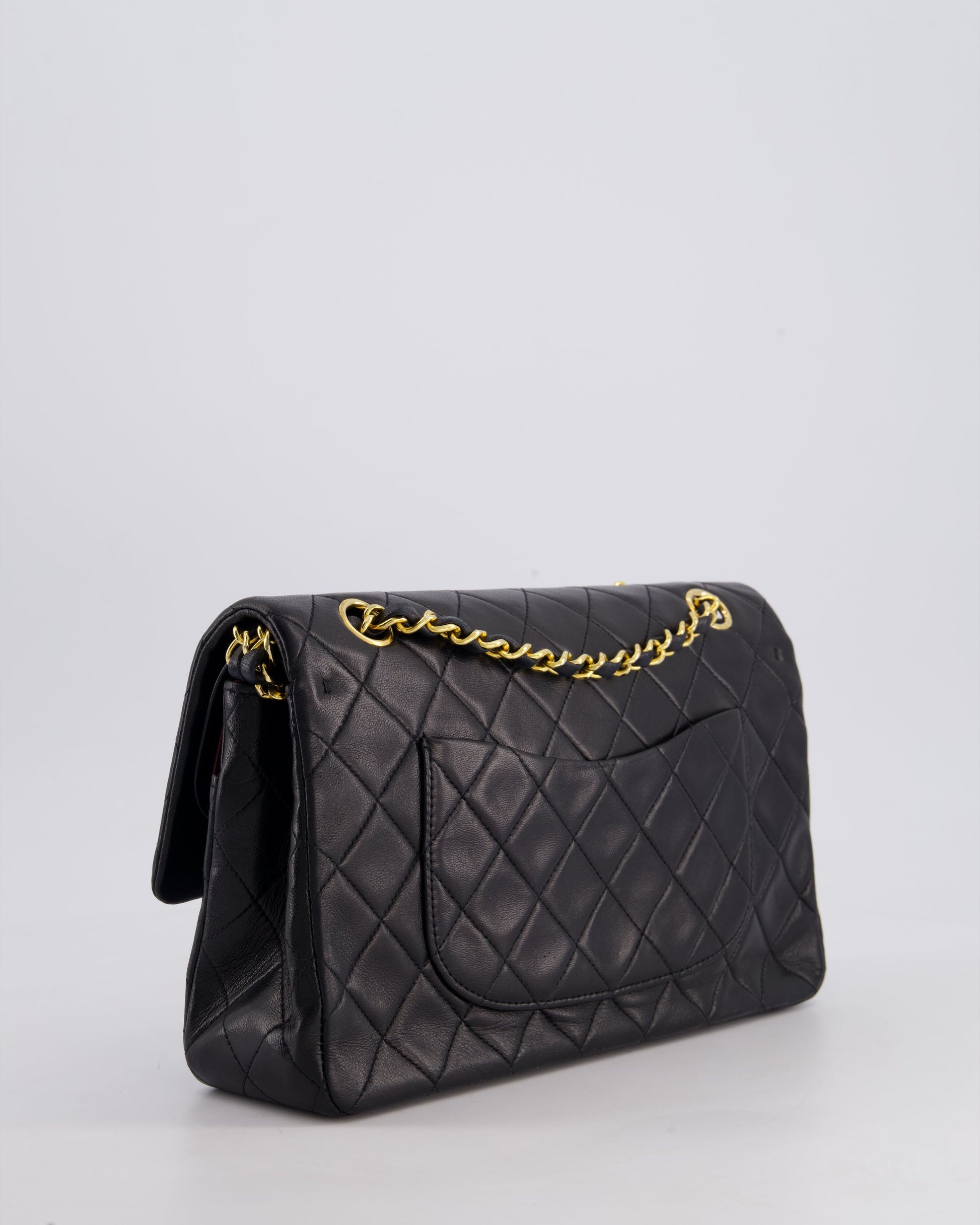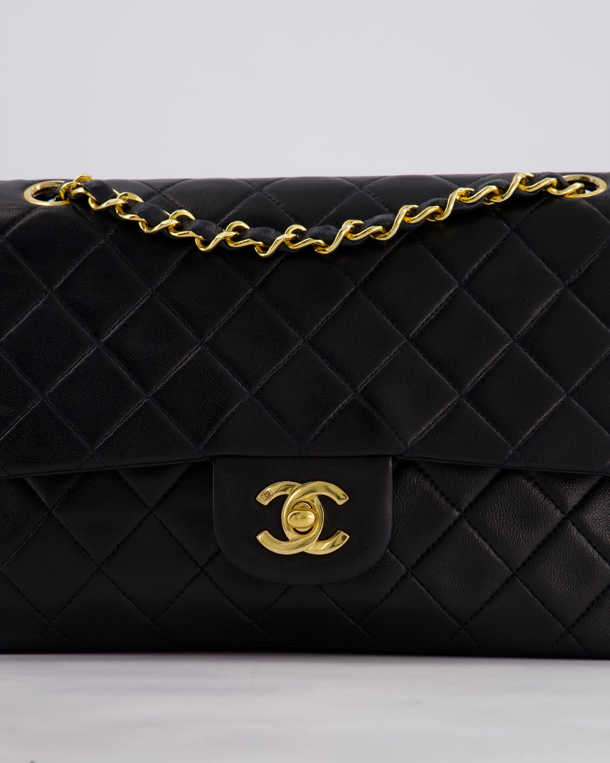 Chanel Vintage Black Classic Medium Double Flap Bag in Lambskin Leather with 24k Gold Hardware