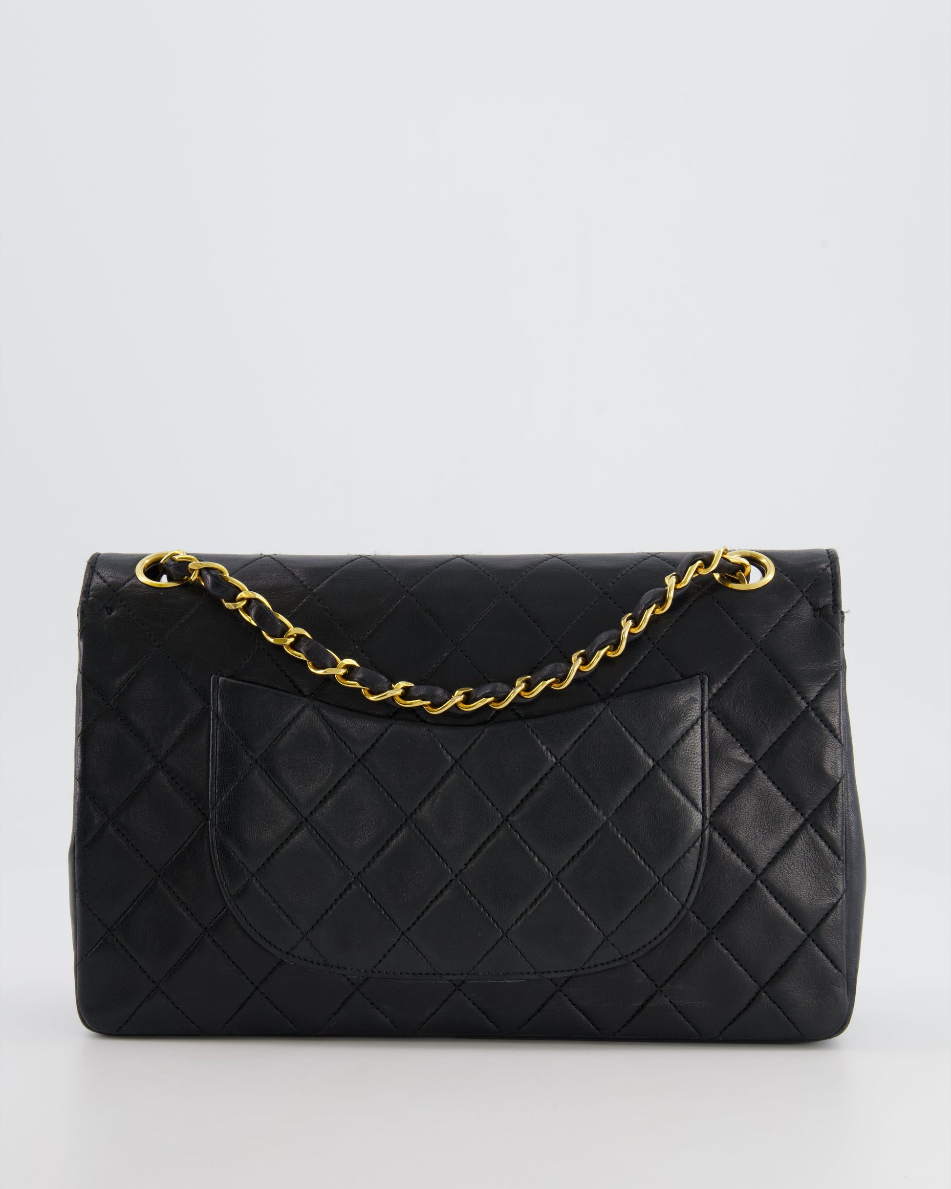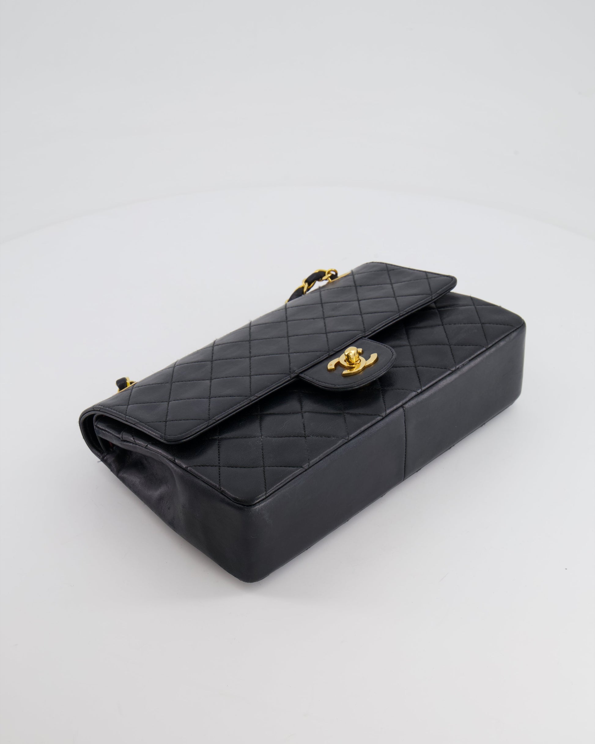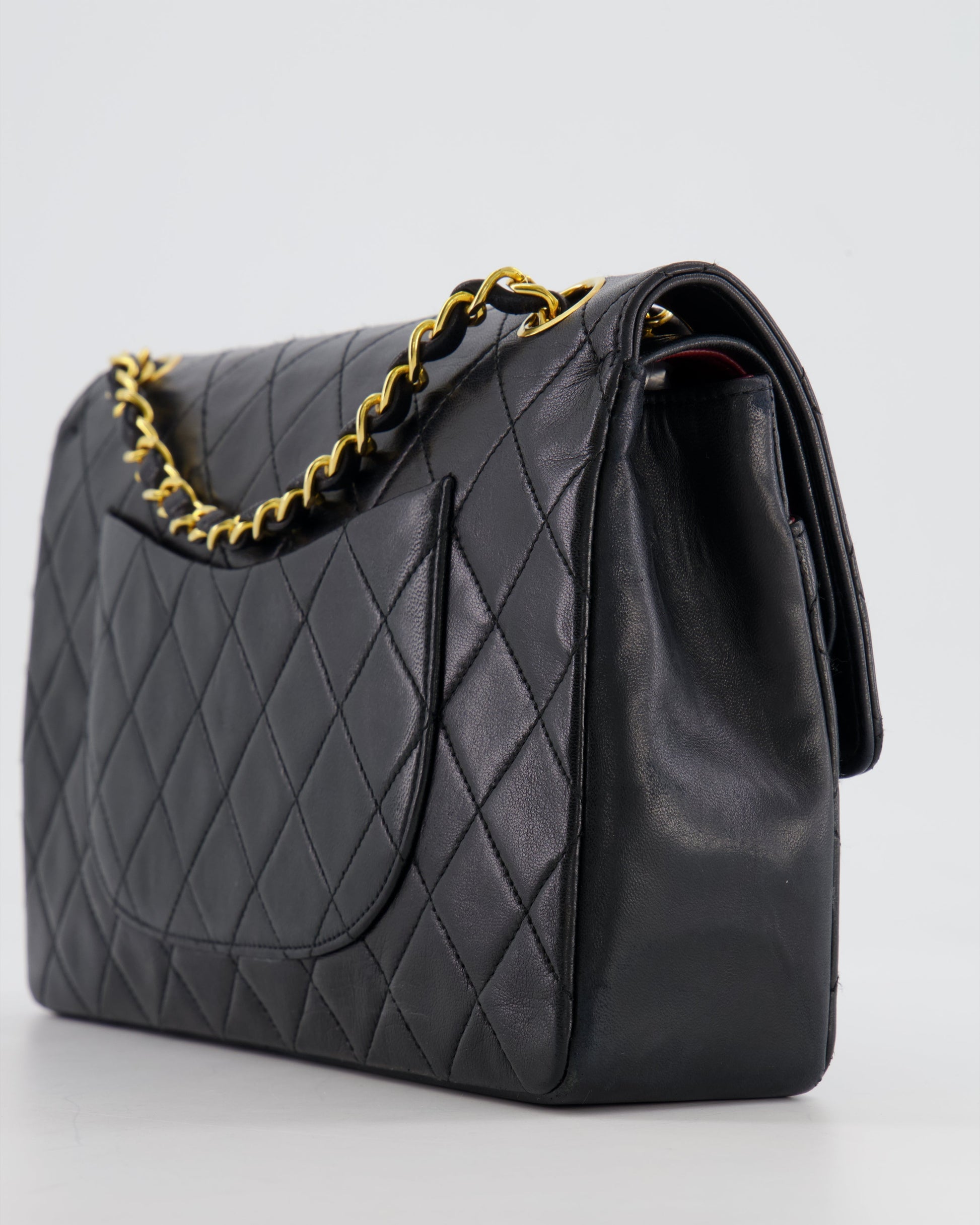 Chanel Vintage Black Classic Medium Stitched Edge Double Flap Bag in Lambskin Leather with 24K Gold Hardware