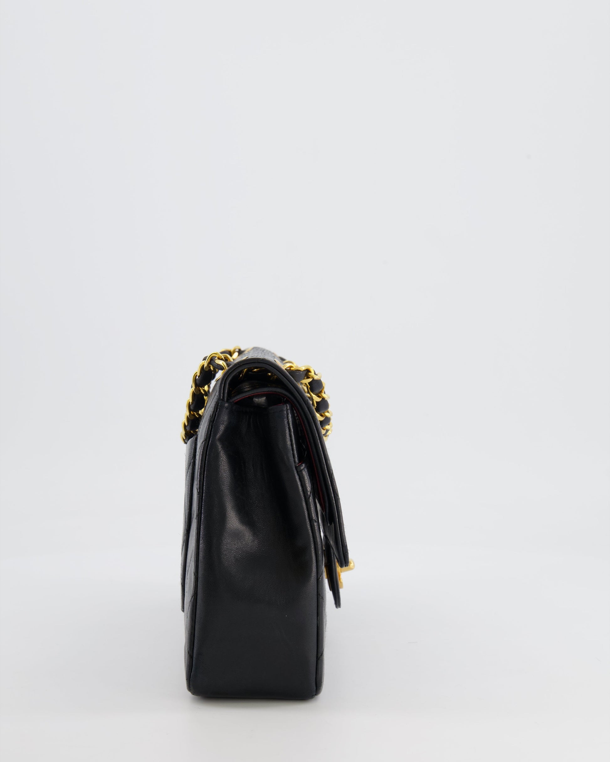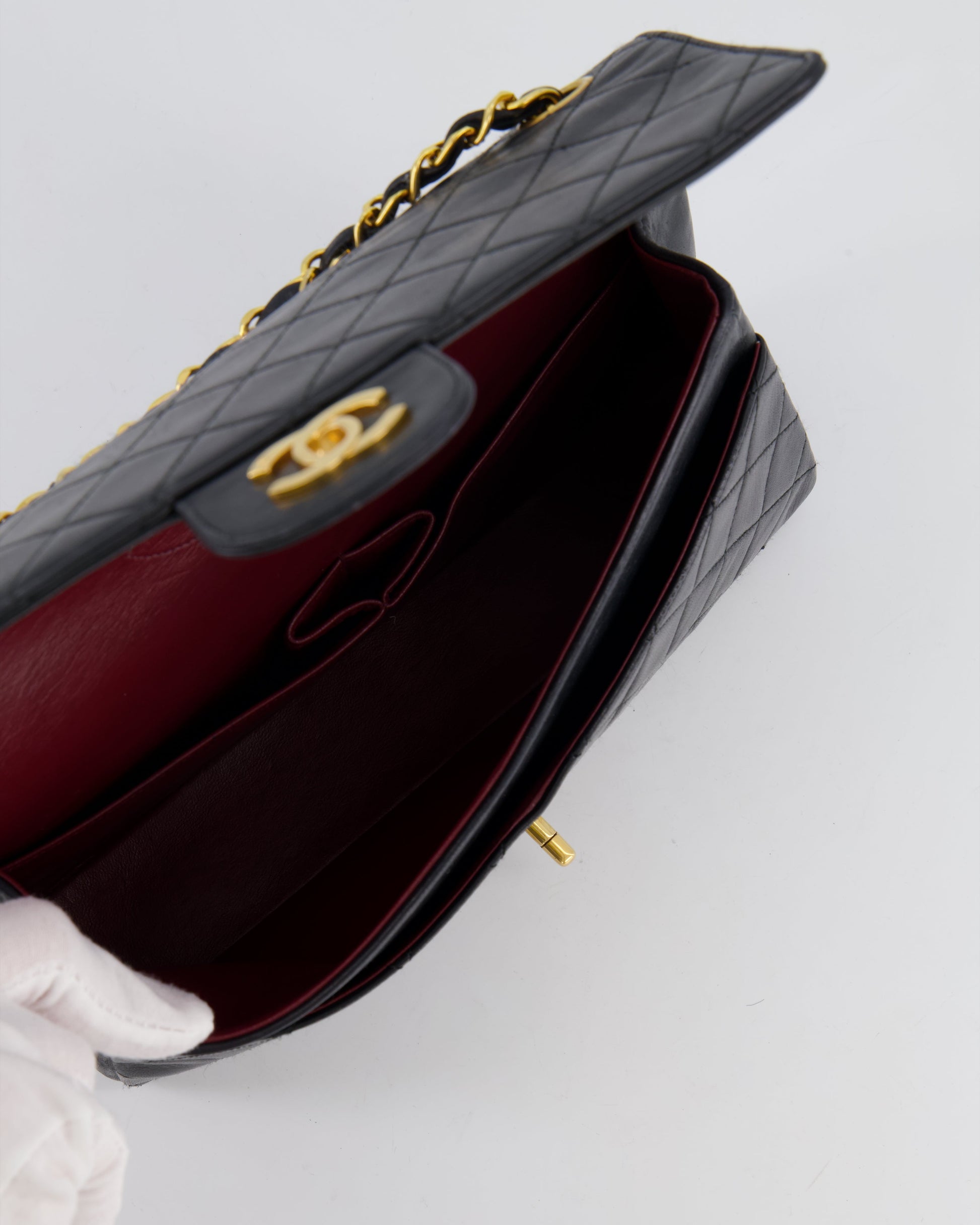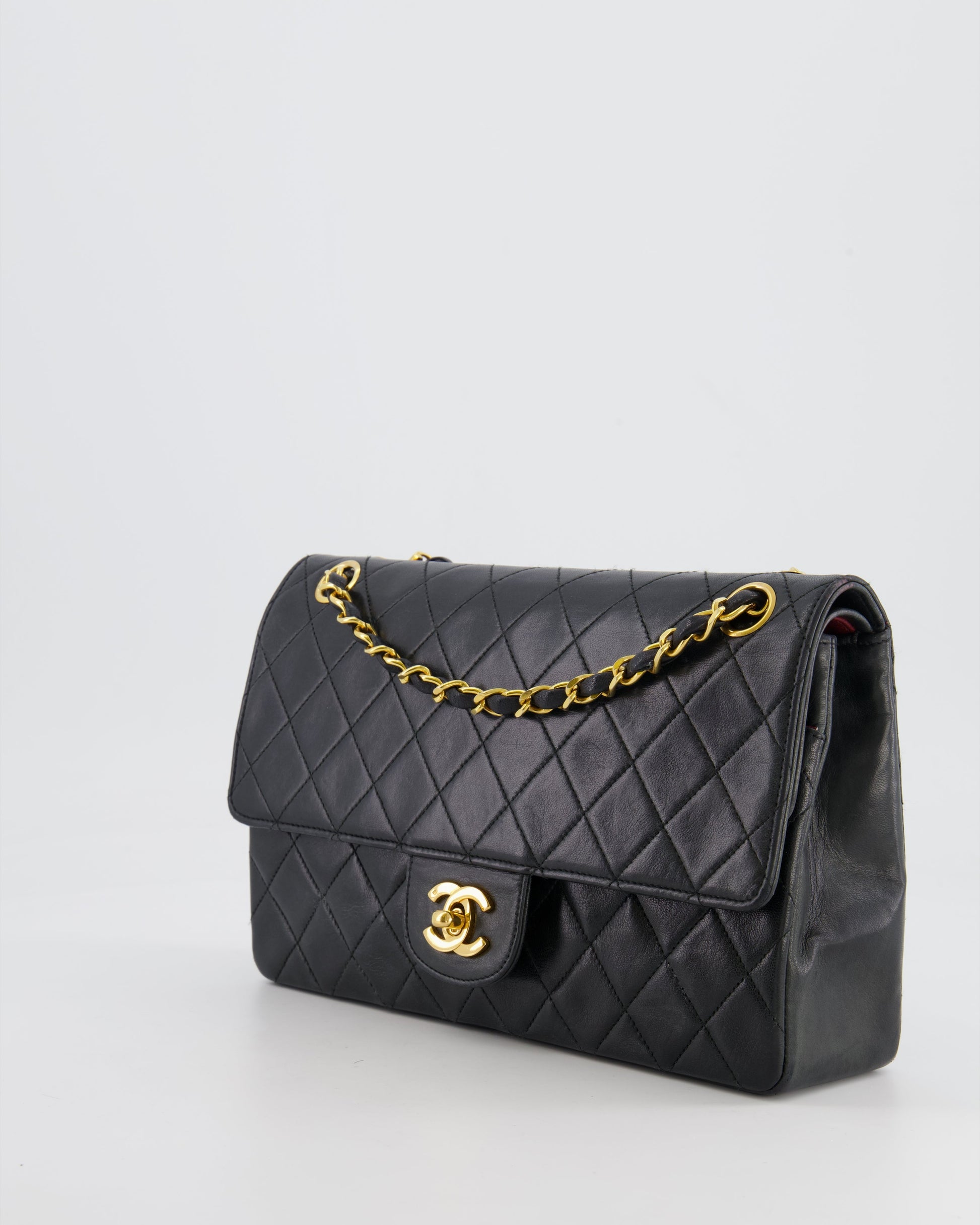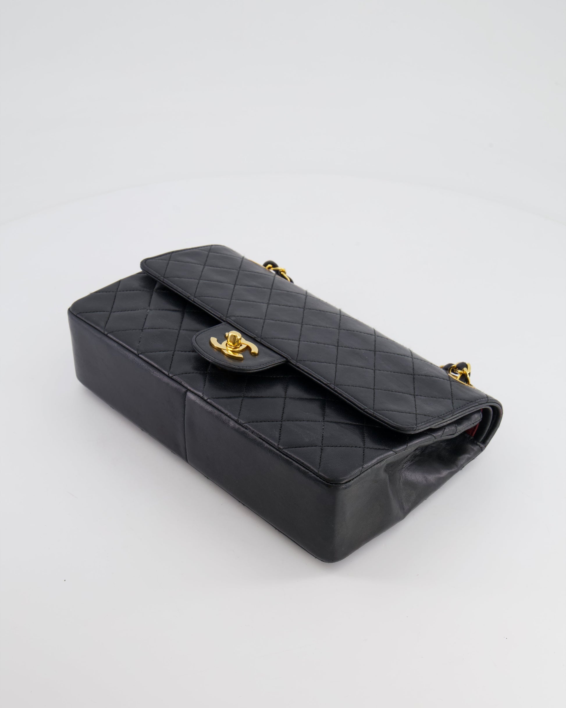 Chanel Vintage Black Classic Medium Stitched Edge Double Flap Bag in Lambskin Leather with 24K Gold Hardware
