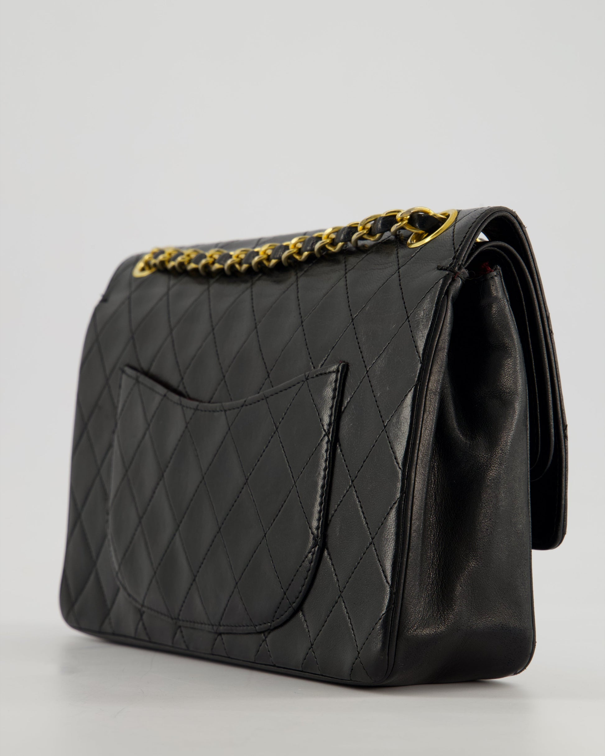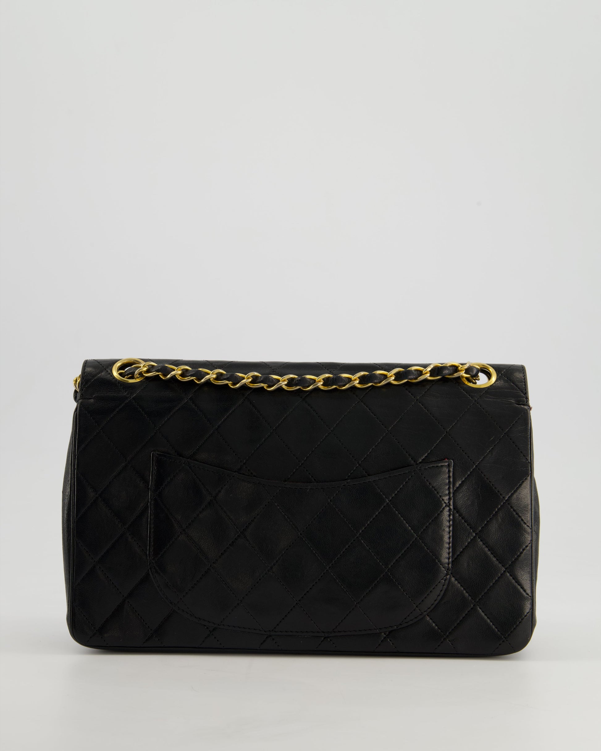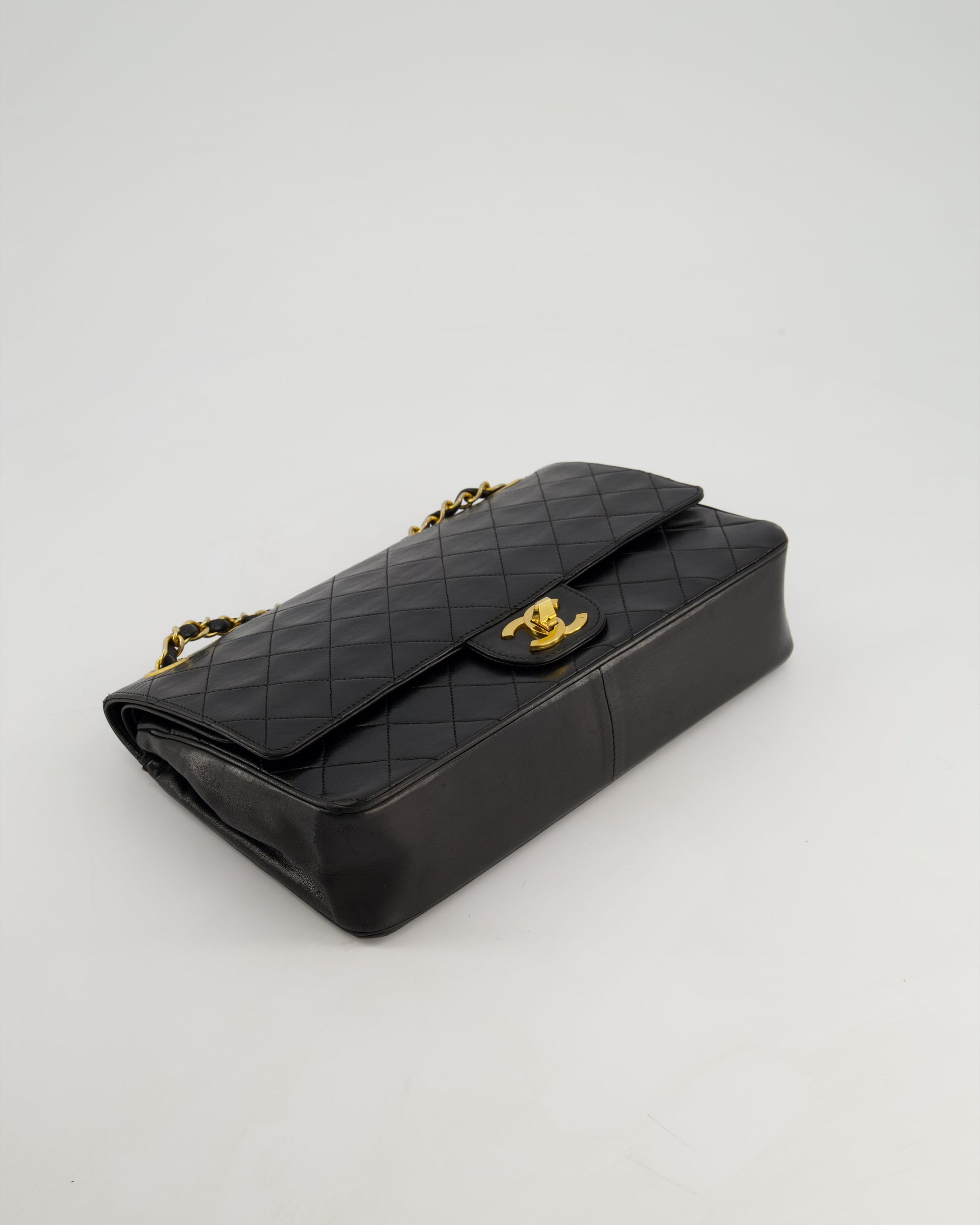 Chanel Vintage Black Classic Medium Stitched Edge Double Flap Bag in Lambskin Leather with 24K Gold Hardware
