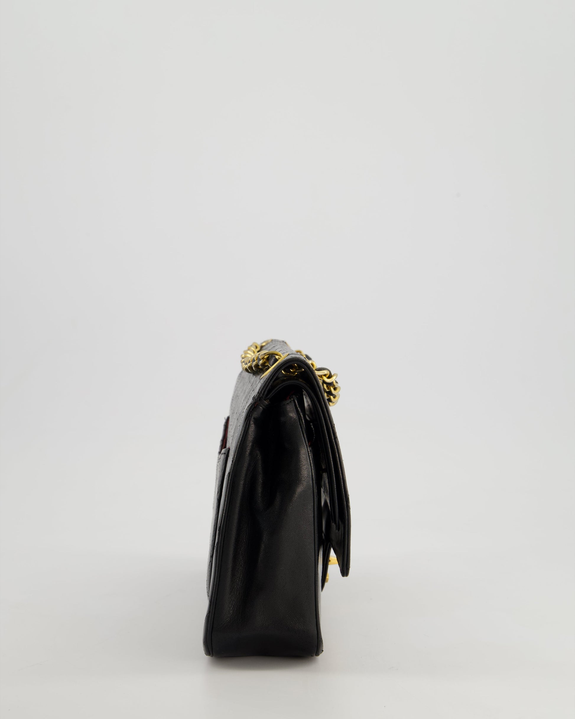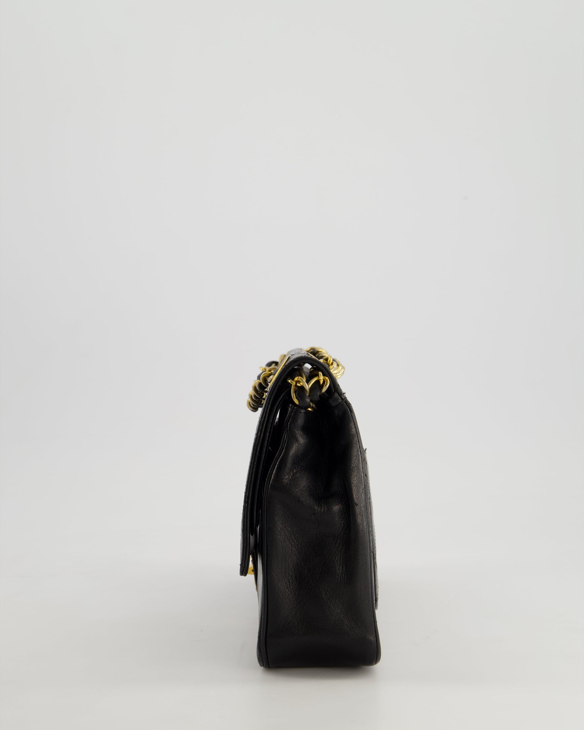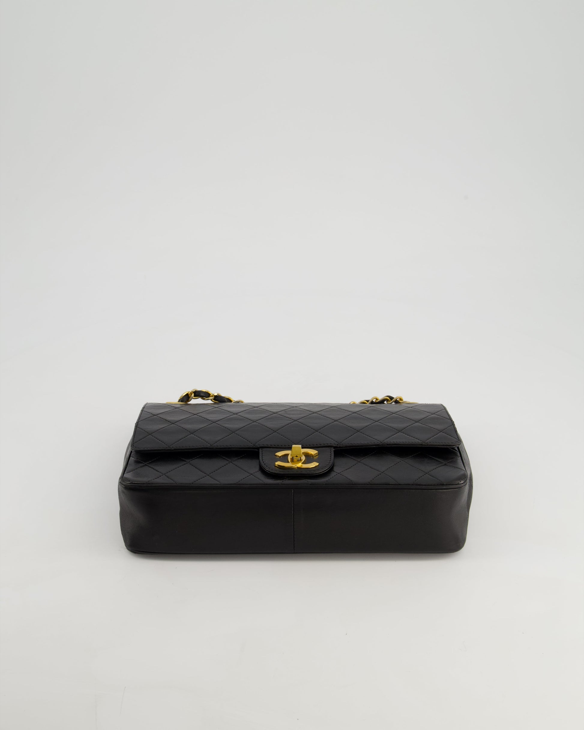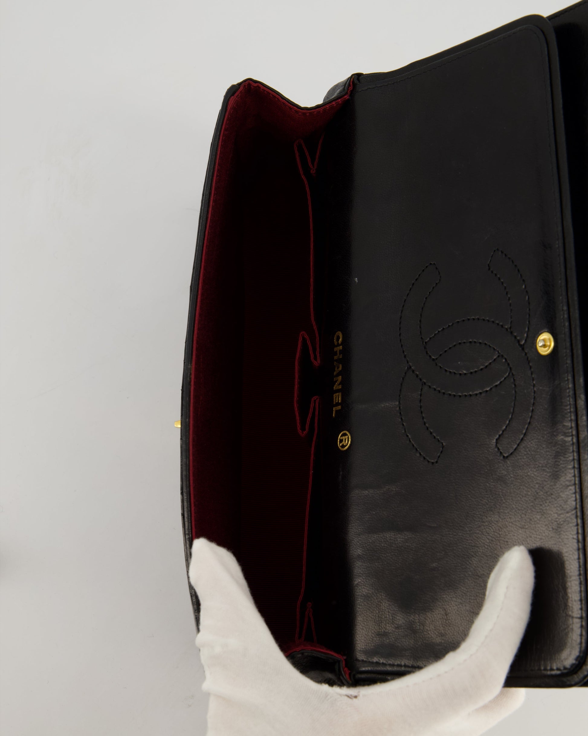 Chanel Vintage Black Classic Medium Stitched Edge Double Flap Bag in Lambskin Leather with 24K Gold Hardware