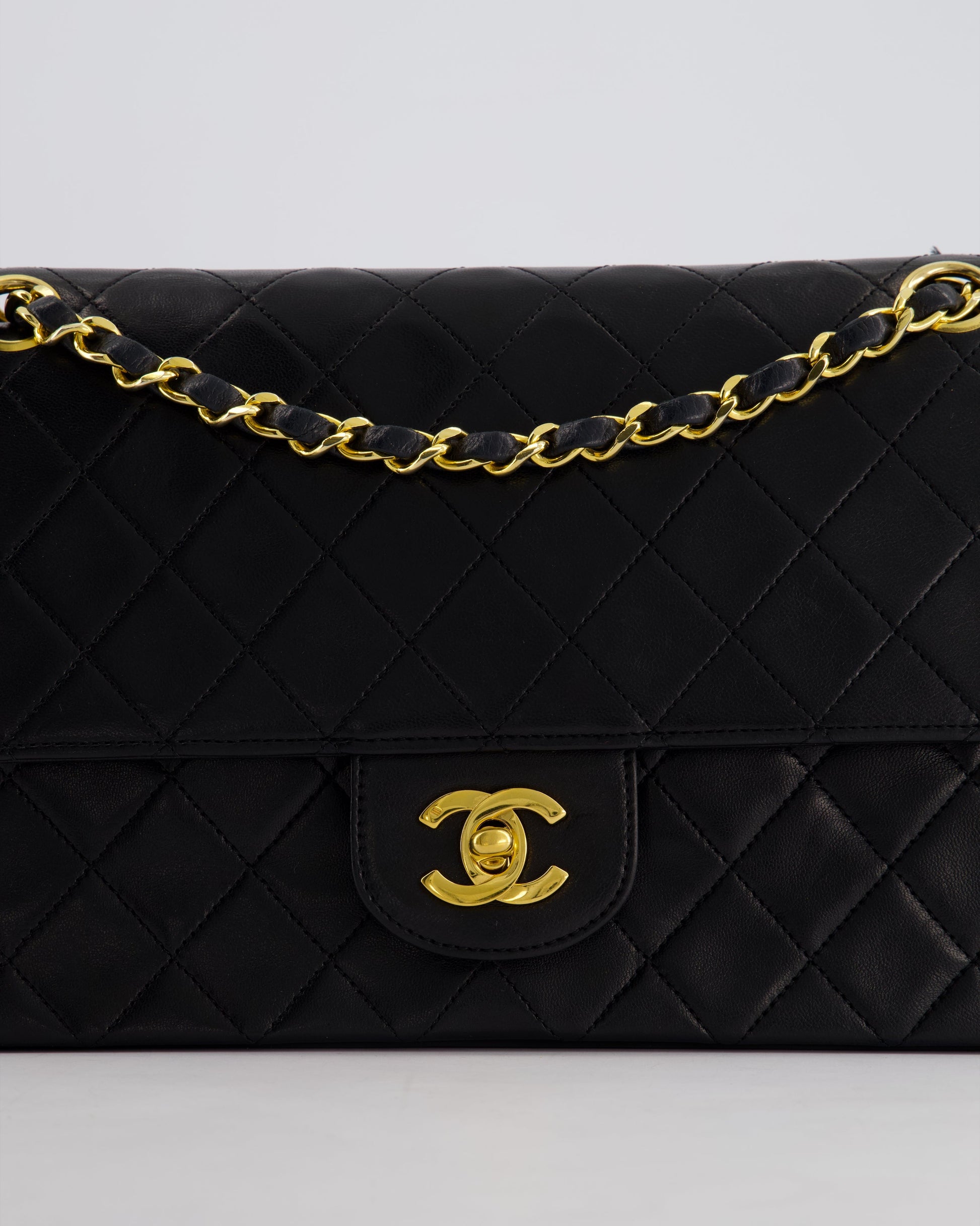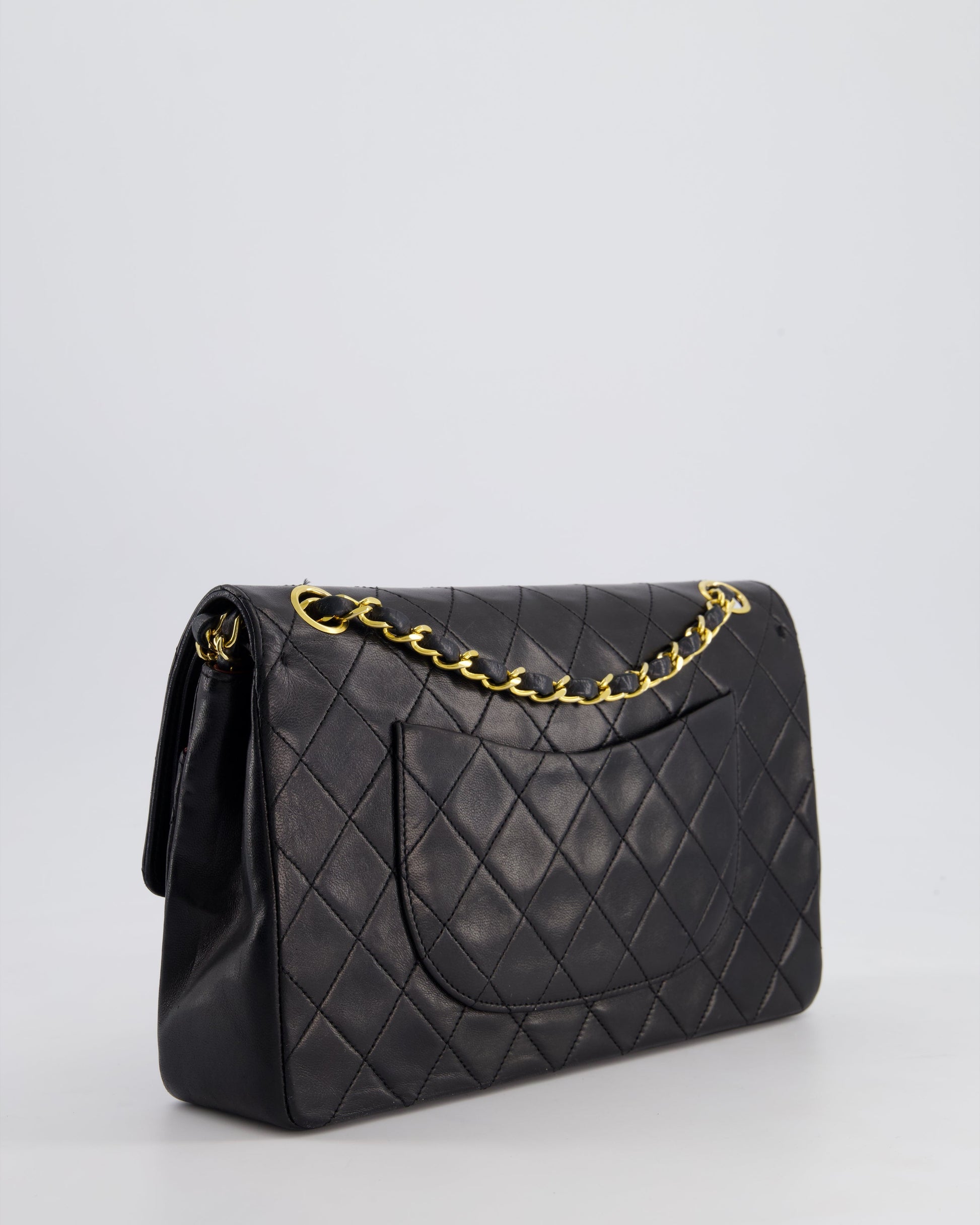 Chanel Vintage Black Medium Classic Double Flap Bag in Lambskin Leather with 24K Gold Hardware