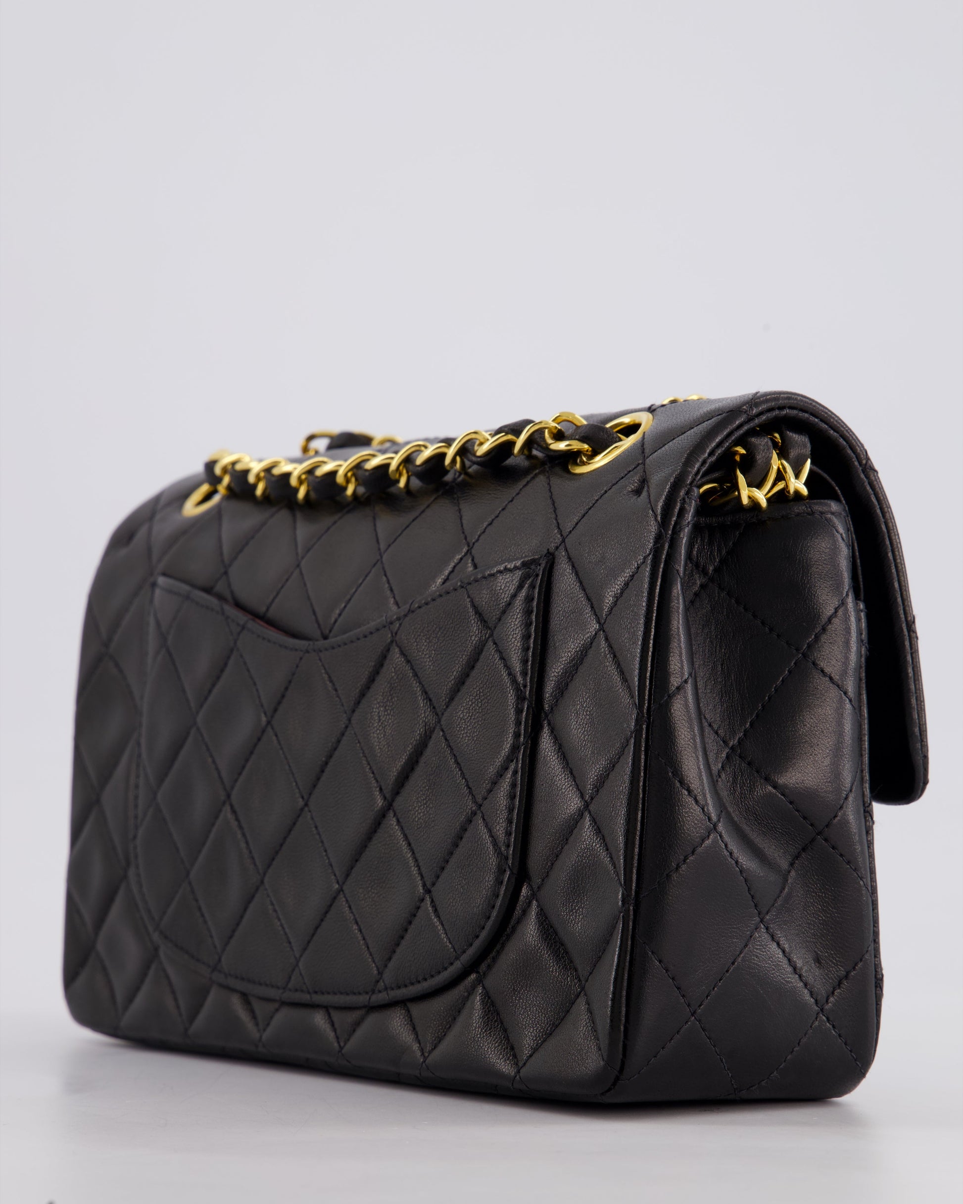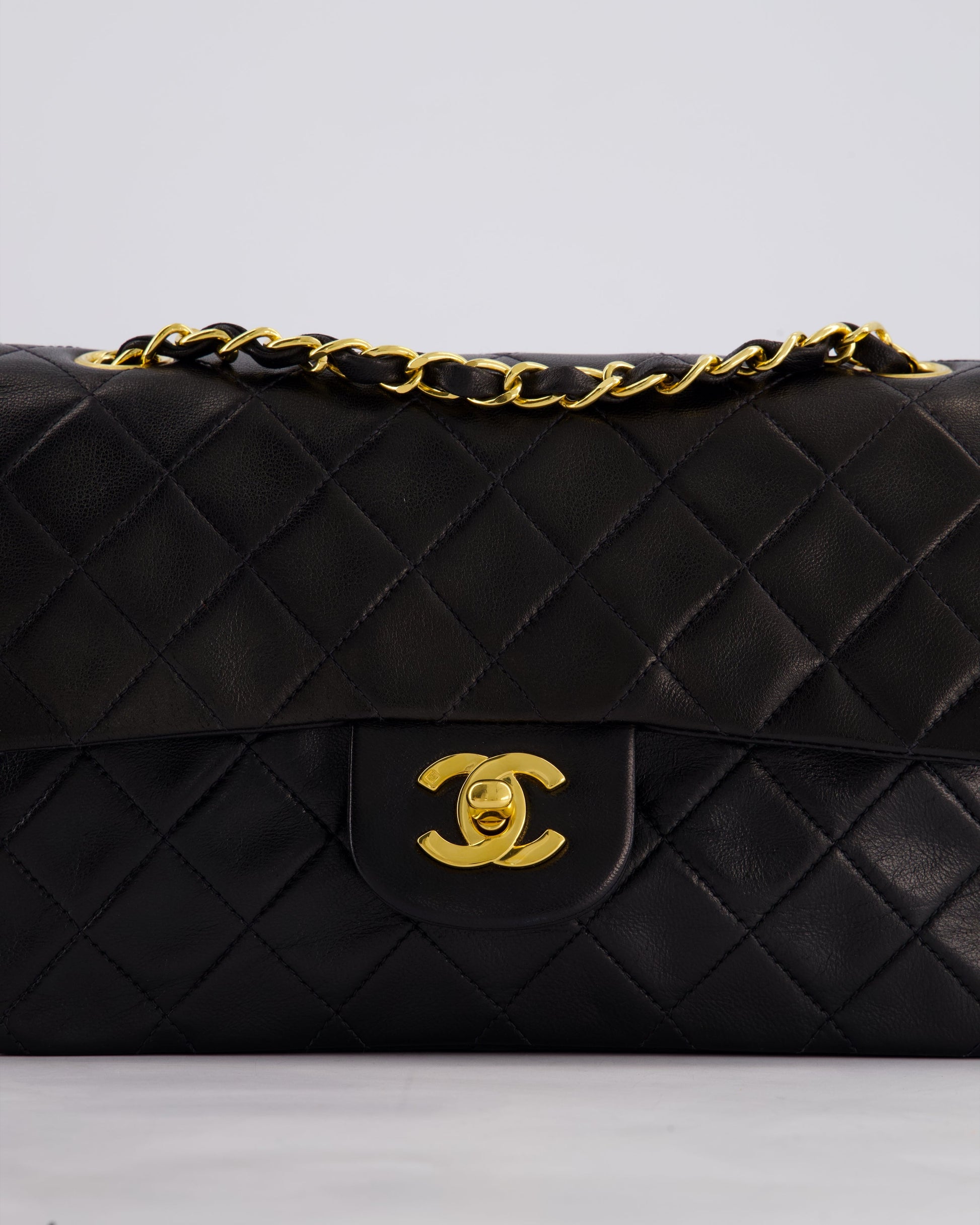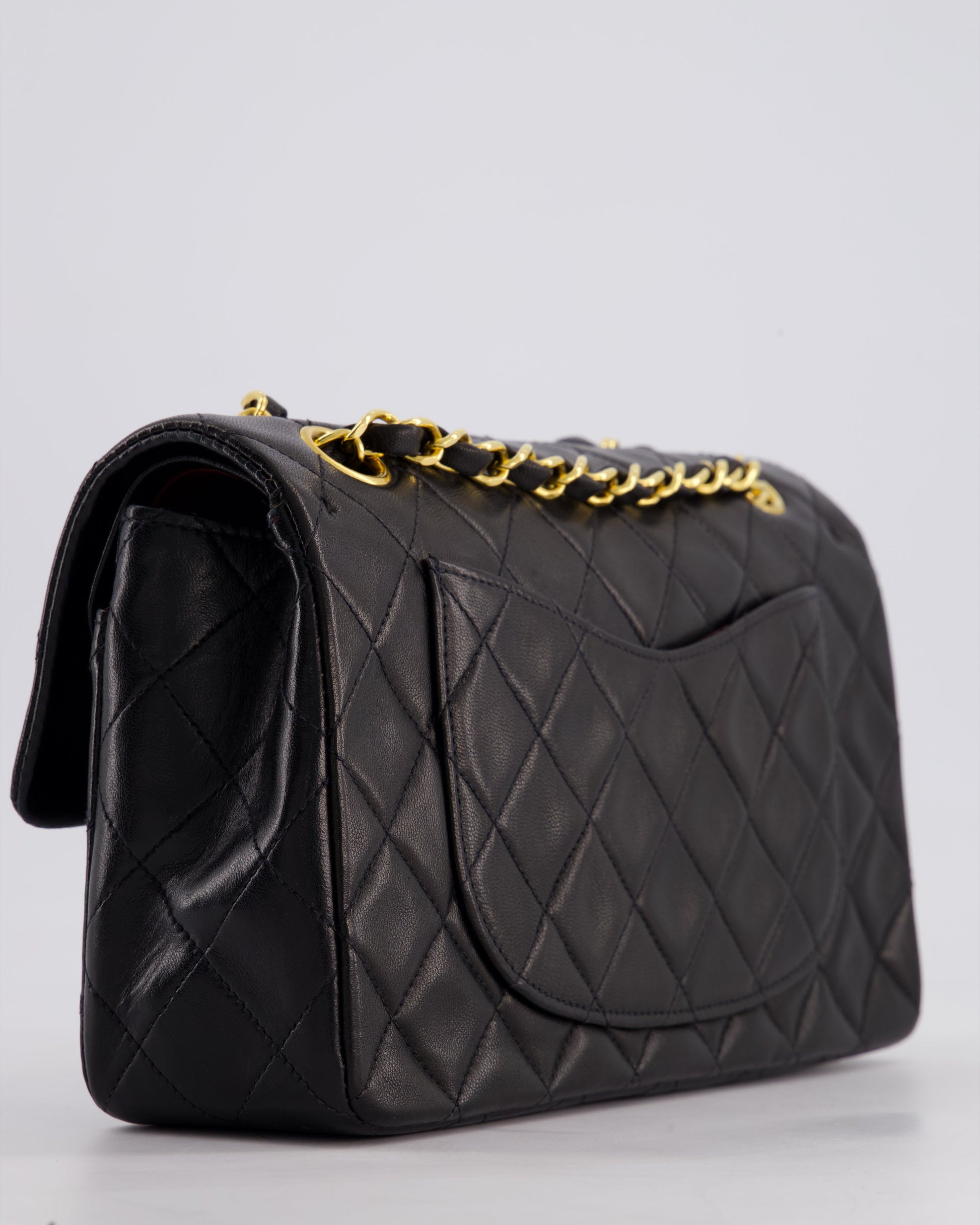 Chanel Vintage Black Medium Classic Double Flap Bag in Lambskin Leather with 24k Gold Hardware